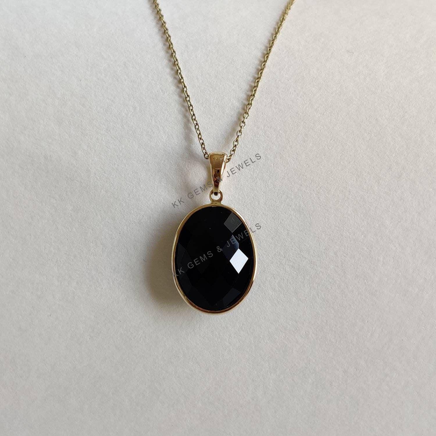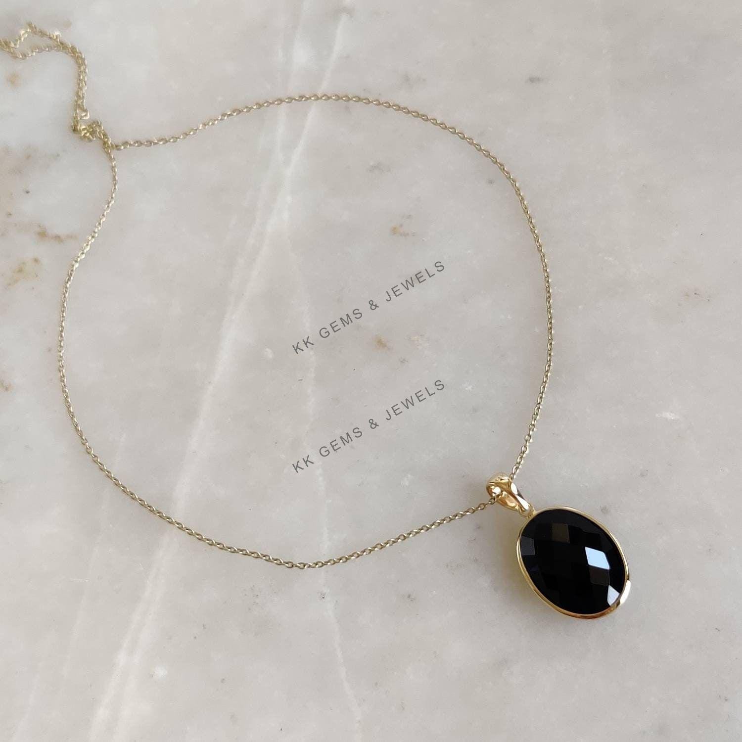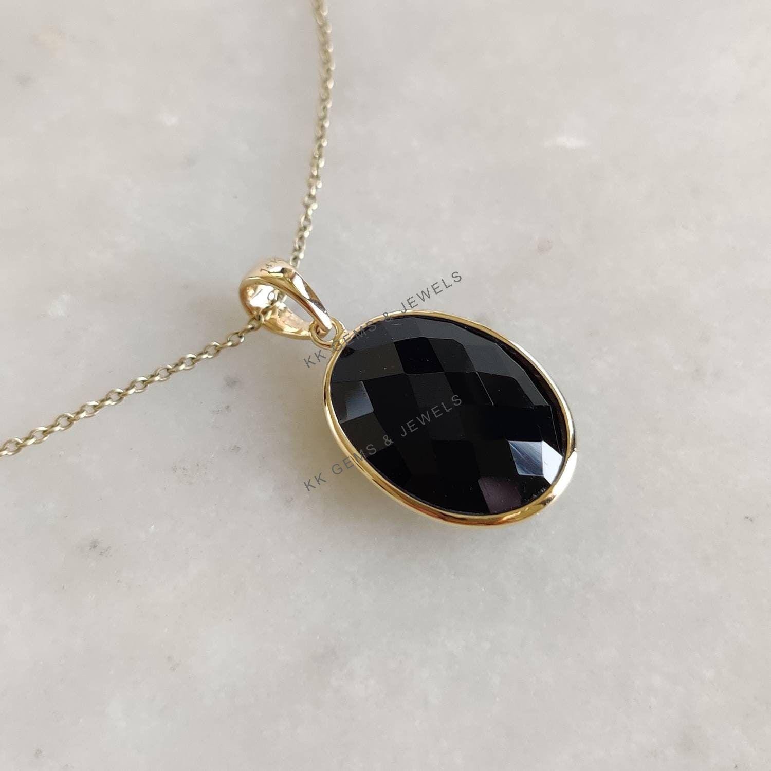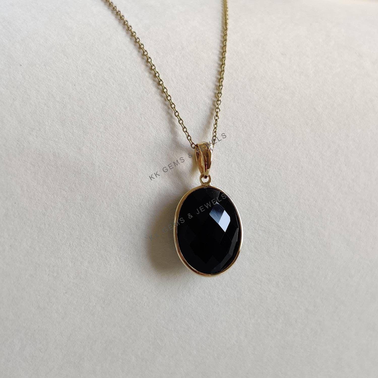 3 reviews for Oval Briolette Natural Black Onyx Birthstone Pendant Set in 14K Solid Gold