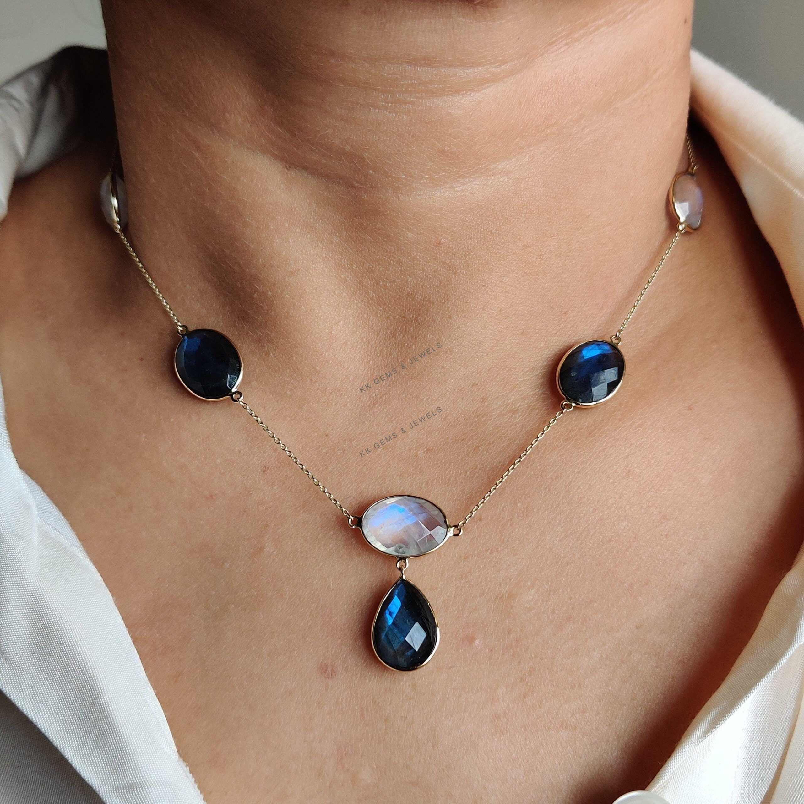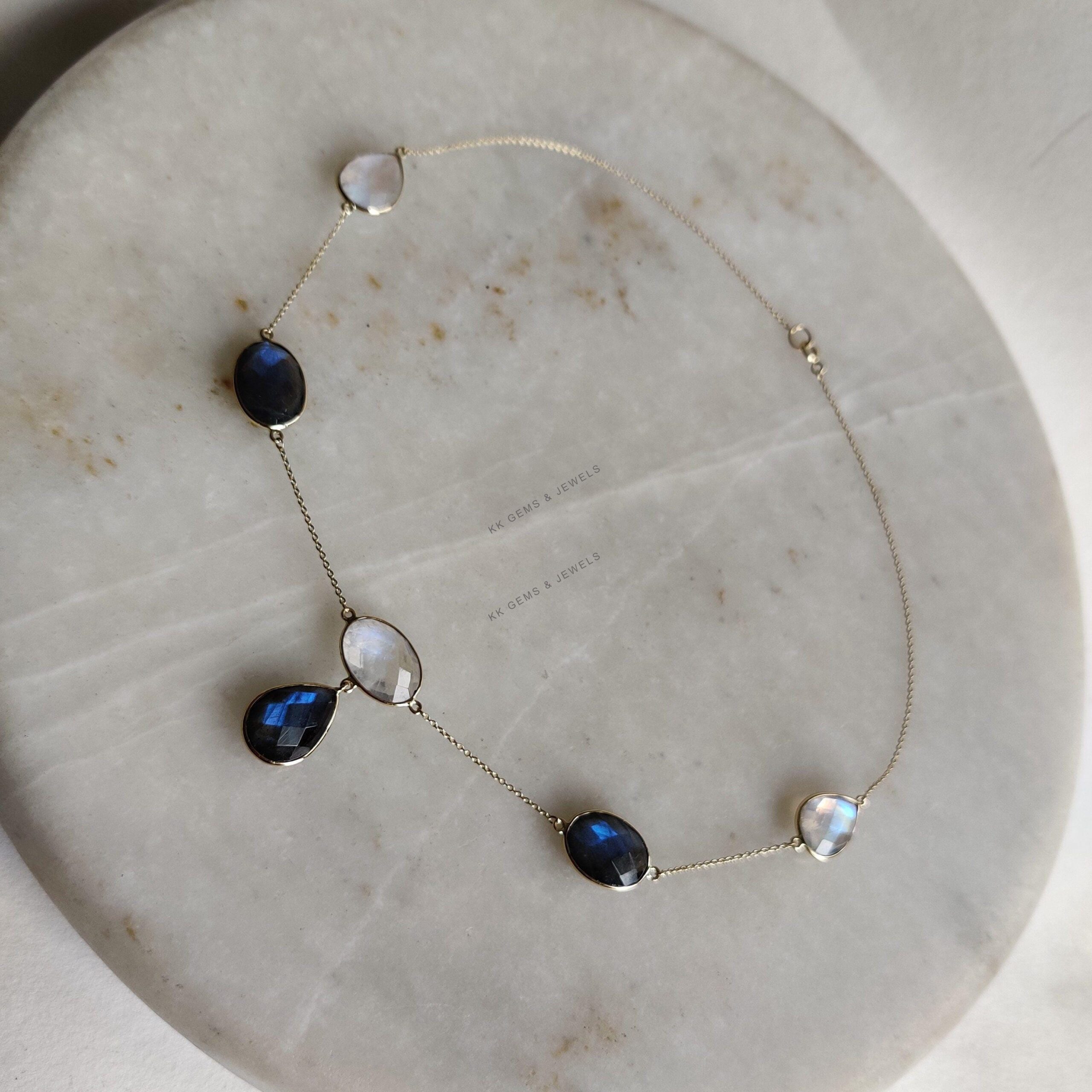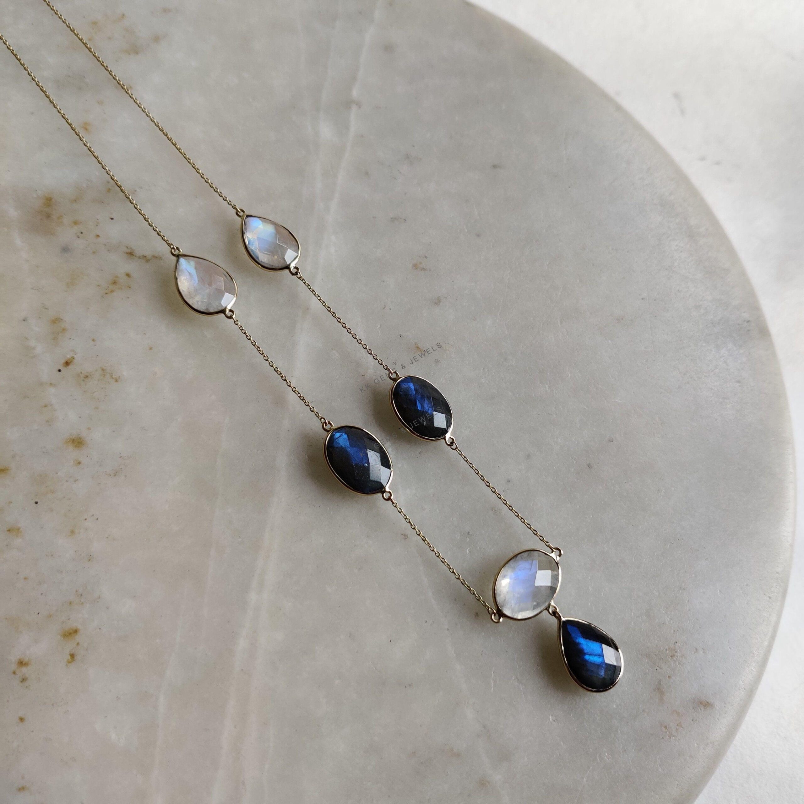 This stunning pendant is set in 14k Solid Yellow Gold Rainbow Moonstone and Labradorite with utmost precision. It is an unique gemstone Pendant for nearly every occasion and is completely hassle-free jewelry. ✓ ABOUT GEMSTONE: Rainbow Moonstone is believed to…