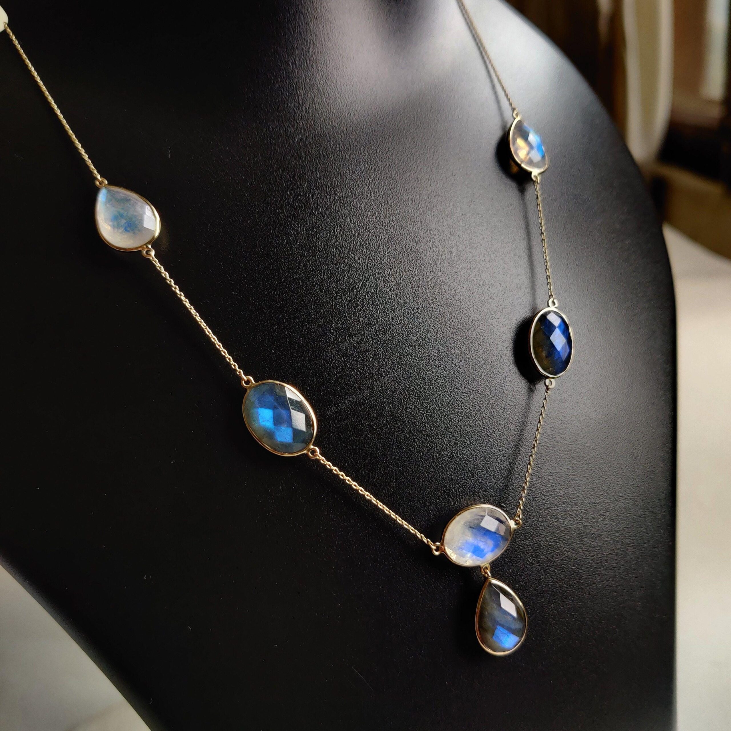 This stunning pendant is set in 14k Solid Yellow Gold Rainbow Moonstone and Labradorite with utmost precision. It is an unique gemstone Pendant for nearly every occasion and is completely hassle-free jewelry.