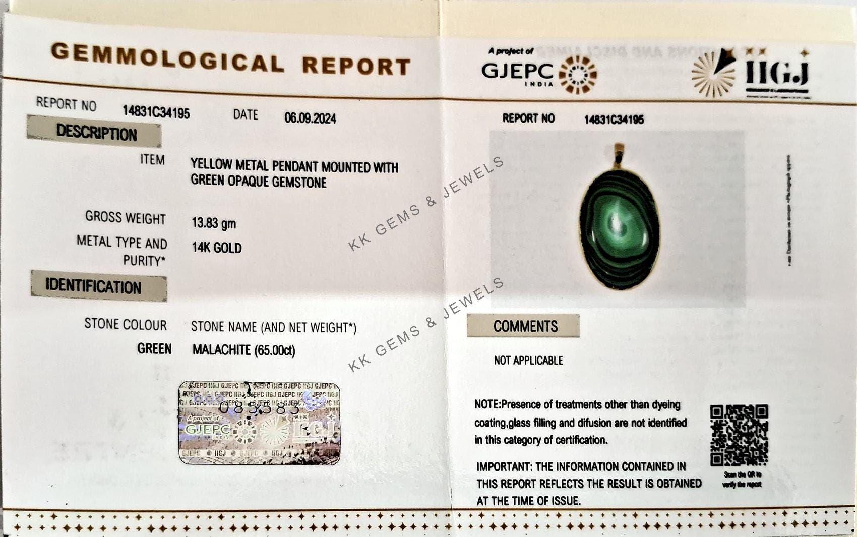 This stunning pendant is set in 14k Solid Yellow Gold with Natural Malachite with utmost precision. It is an unique gemstone pendant for nearly every occasion and is completely hassle-free jewelry.