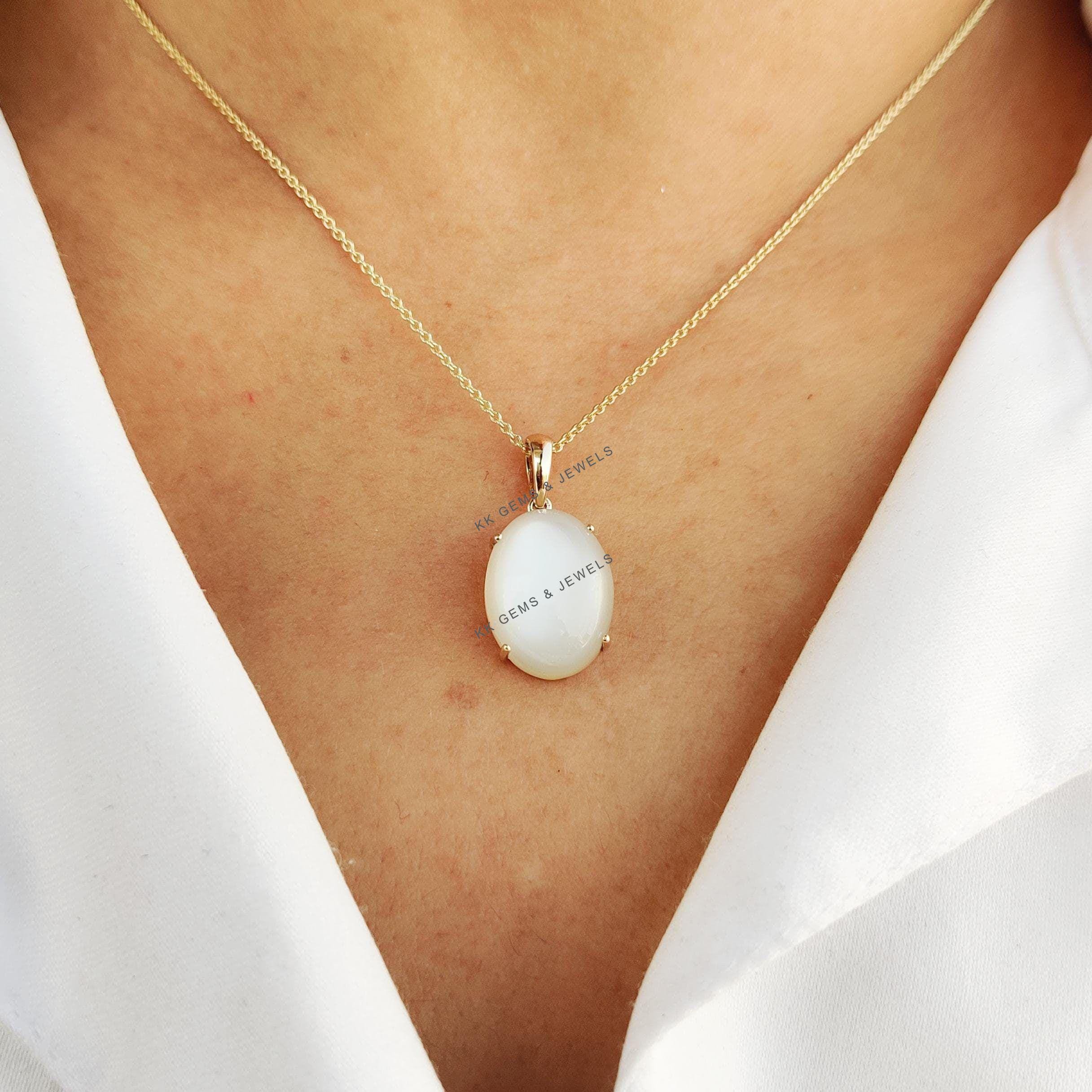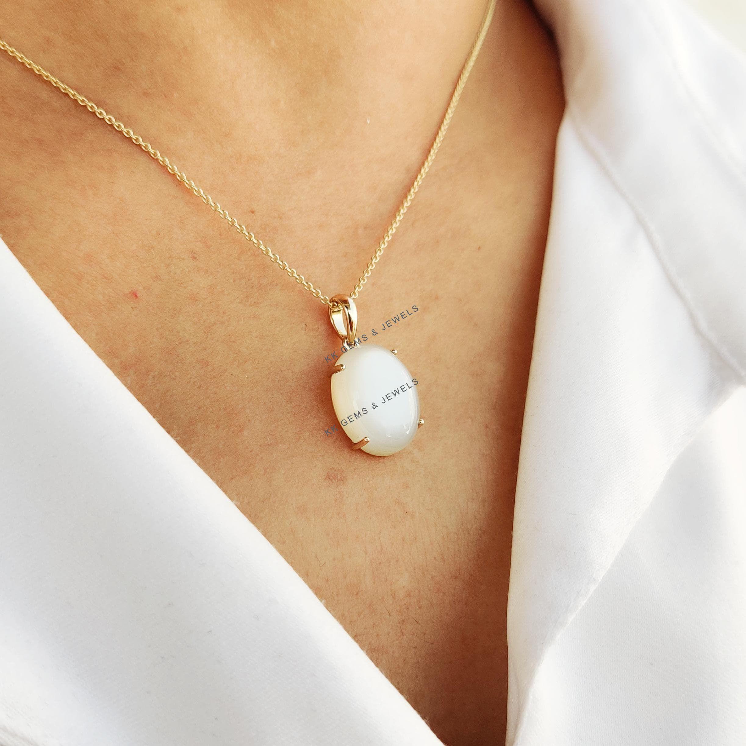 This stunning pendant is set in 14k Solid Yellow Gold with Natural White Moonstone with utmost precision. It is an unique gemstone pendant for nearly every occasion and is completely hassle-free jewelry. ABOUT GEMSTONE: White moonstone, with its milky opalescence…