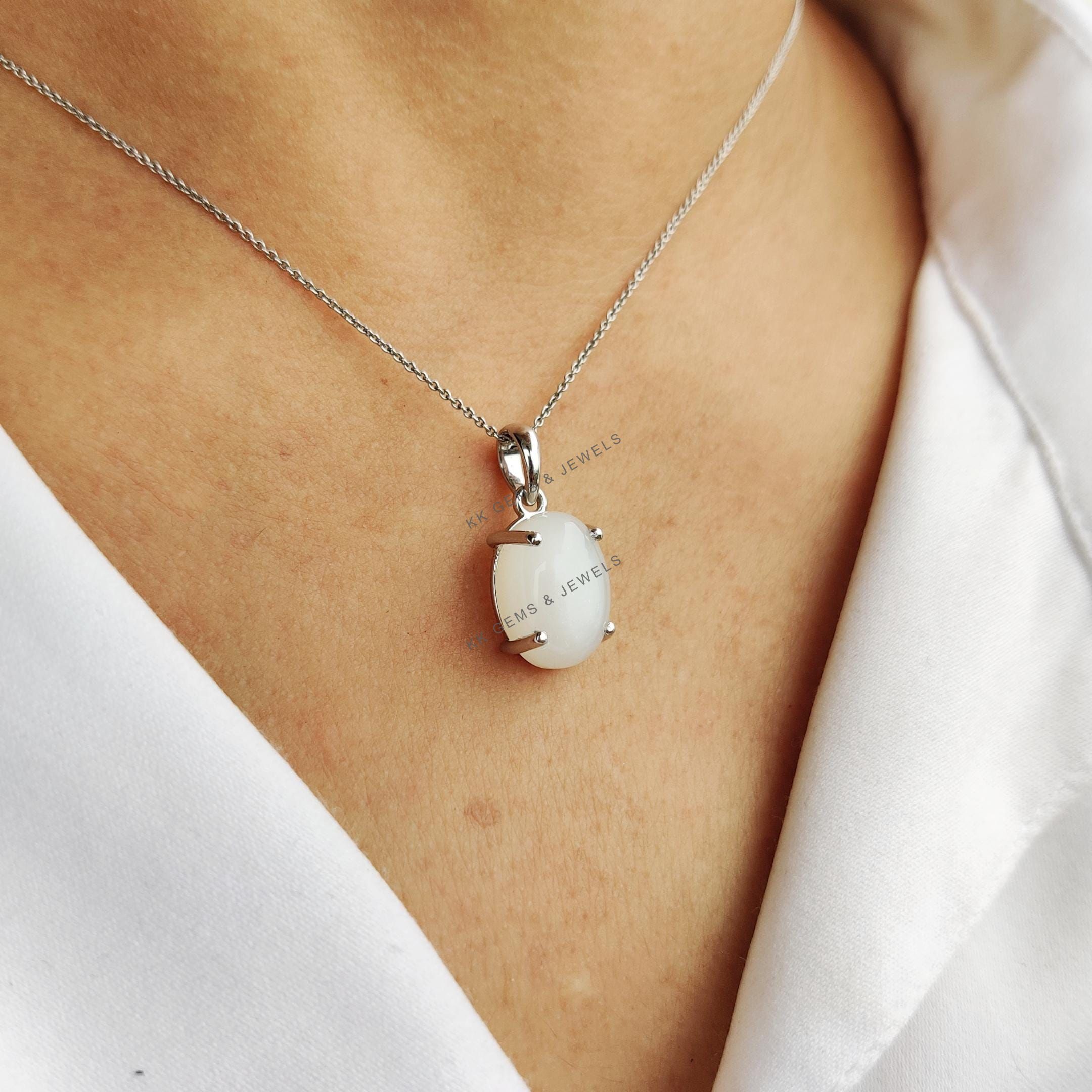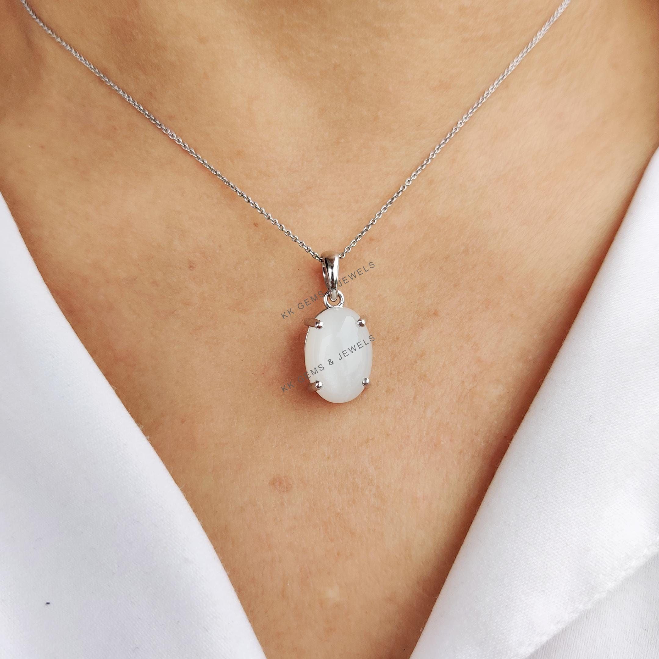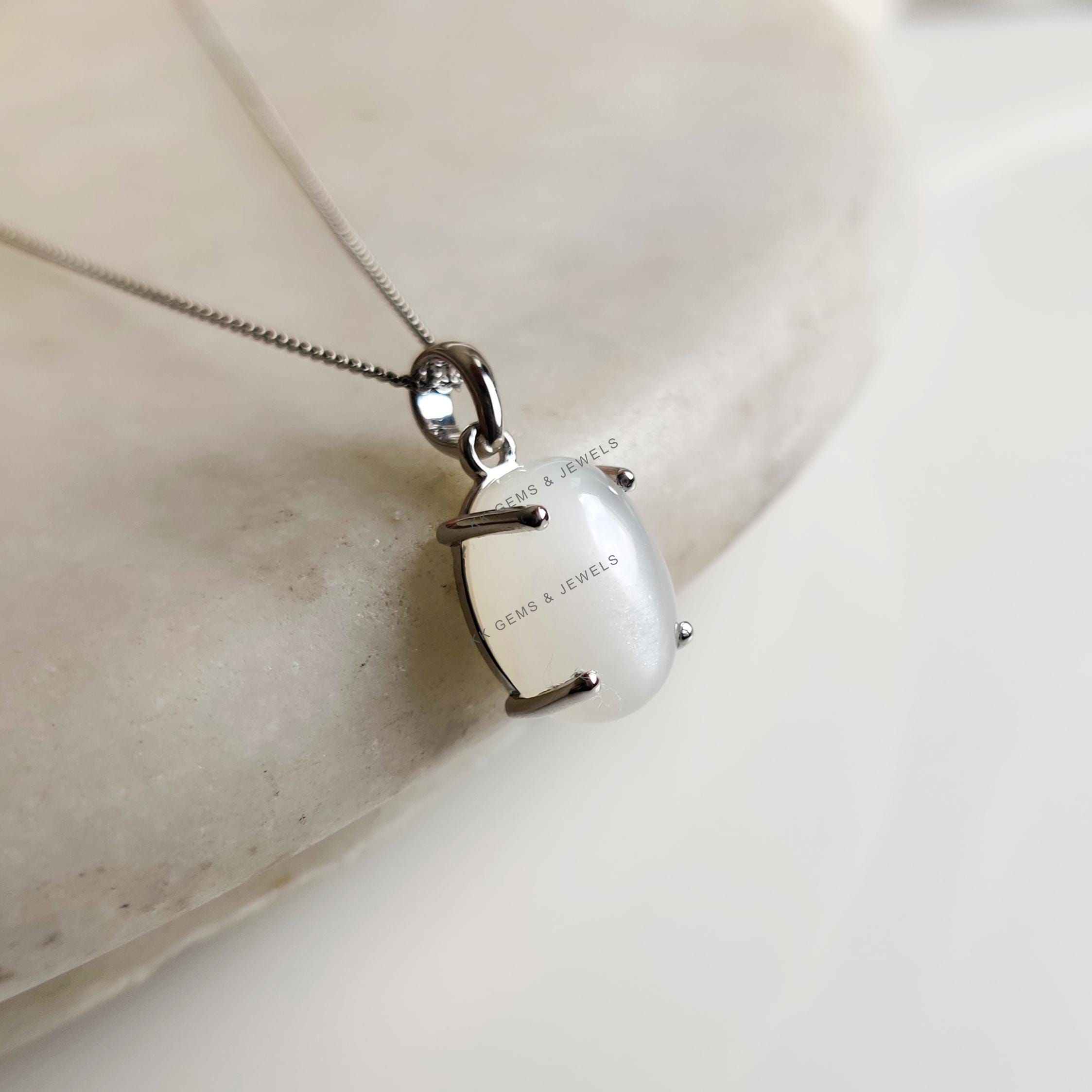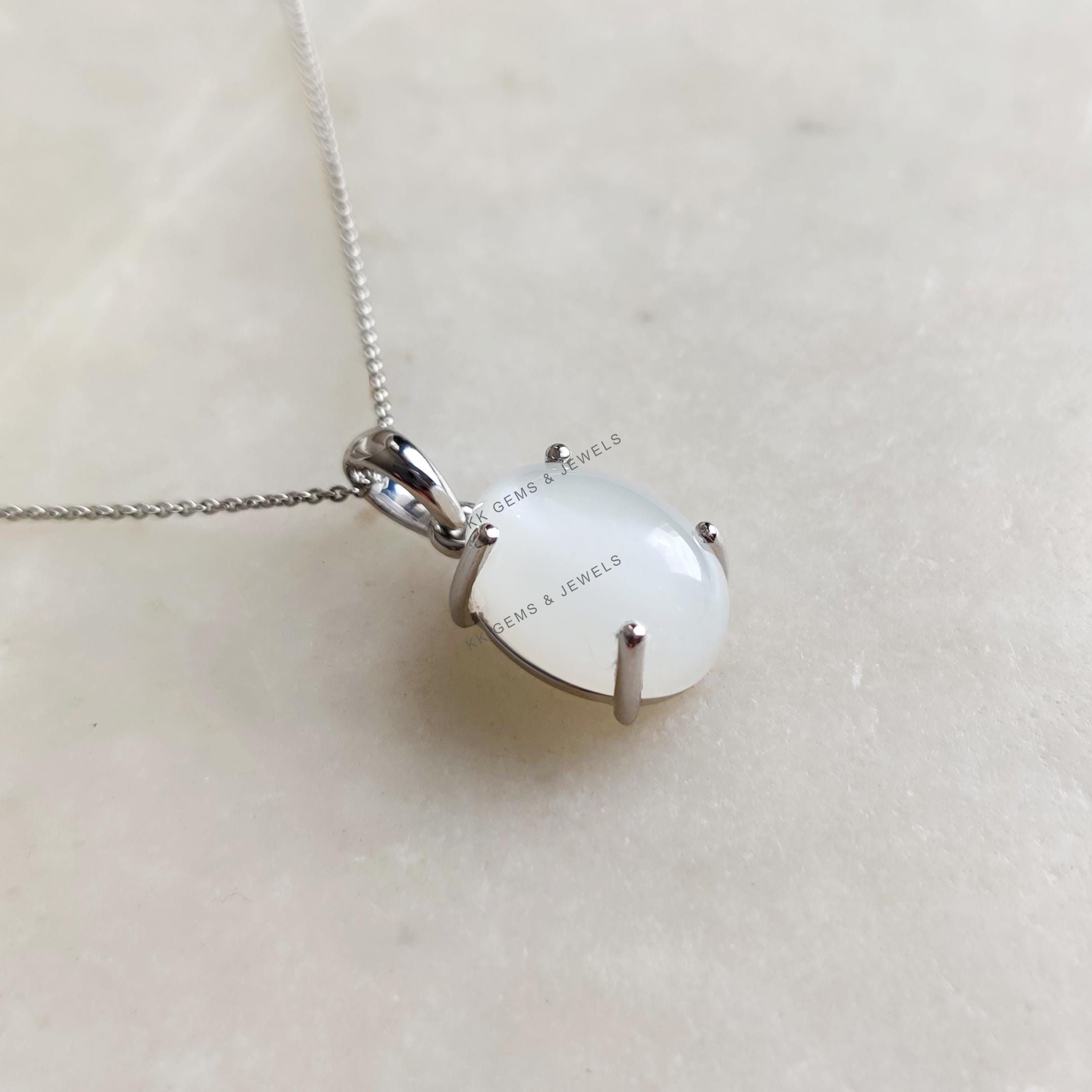 This stunning pendant is set in 14k Solid White Gold with Natural White Moonstone with utmost precision. It is an unique gemstone pendant for nearly every occasion and is completely hassle-free jewelry. ✓ ABOUT GEMSTONE: White moonstone, with its milky…