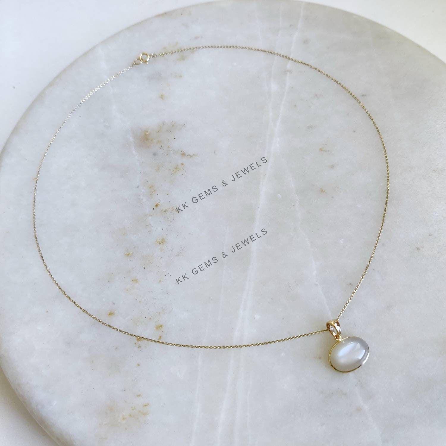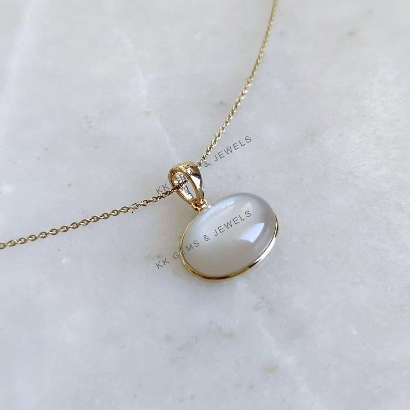 2 reviews for Oval Cabochon Natural Moonstone Pendant, Set in 14K Solid Gold, June Birthstone