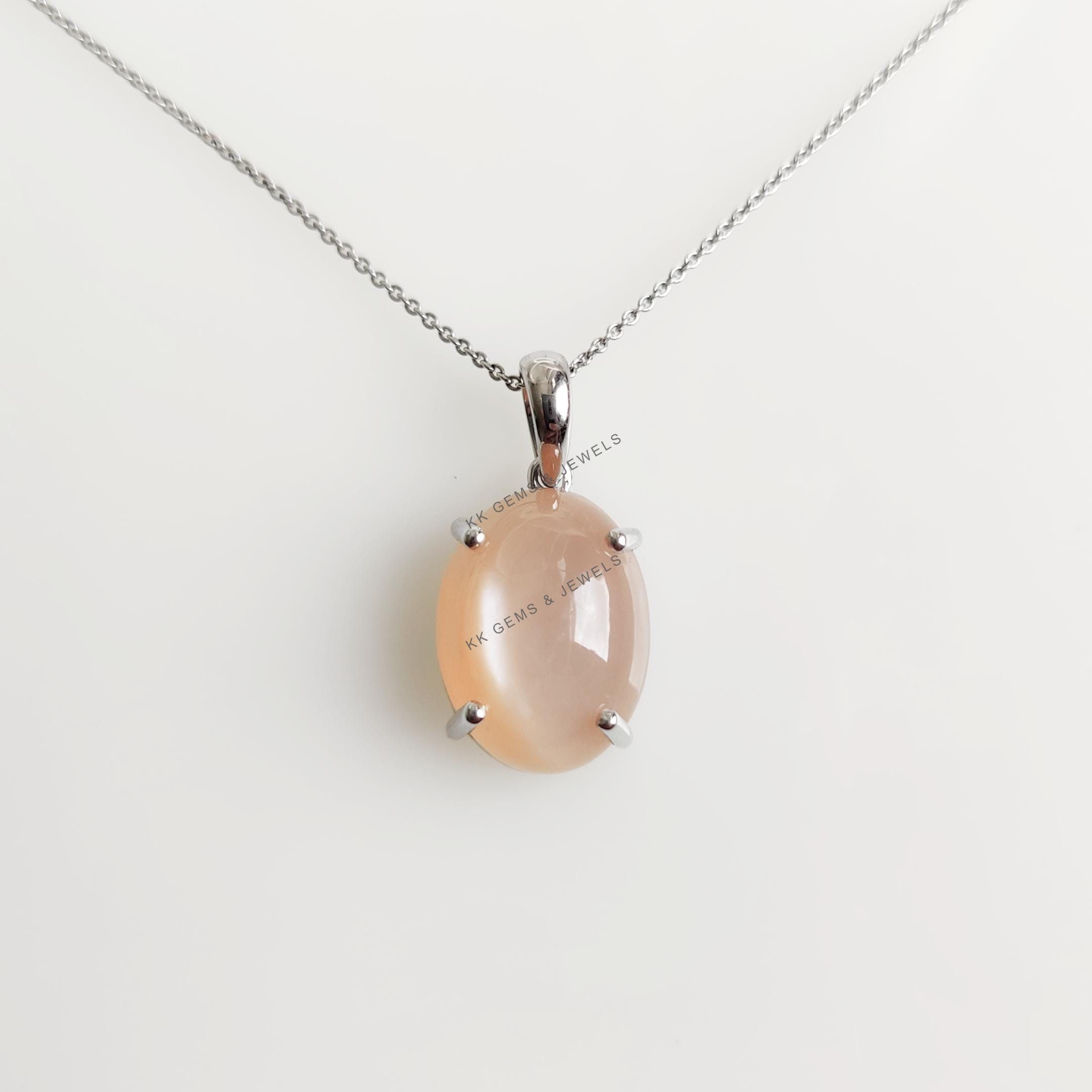 This stunning pendant is set in 14k Solid White Gold with Natural Peach Moonstone with utmost precision. It is an unique gemstone pendant for nearly every occasion and is completely hassle-free jewelry.