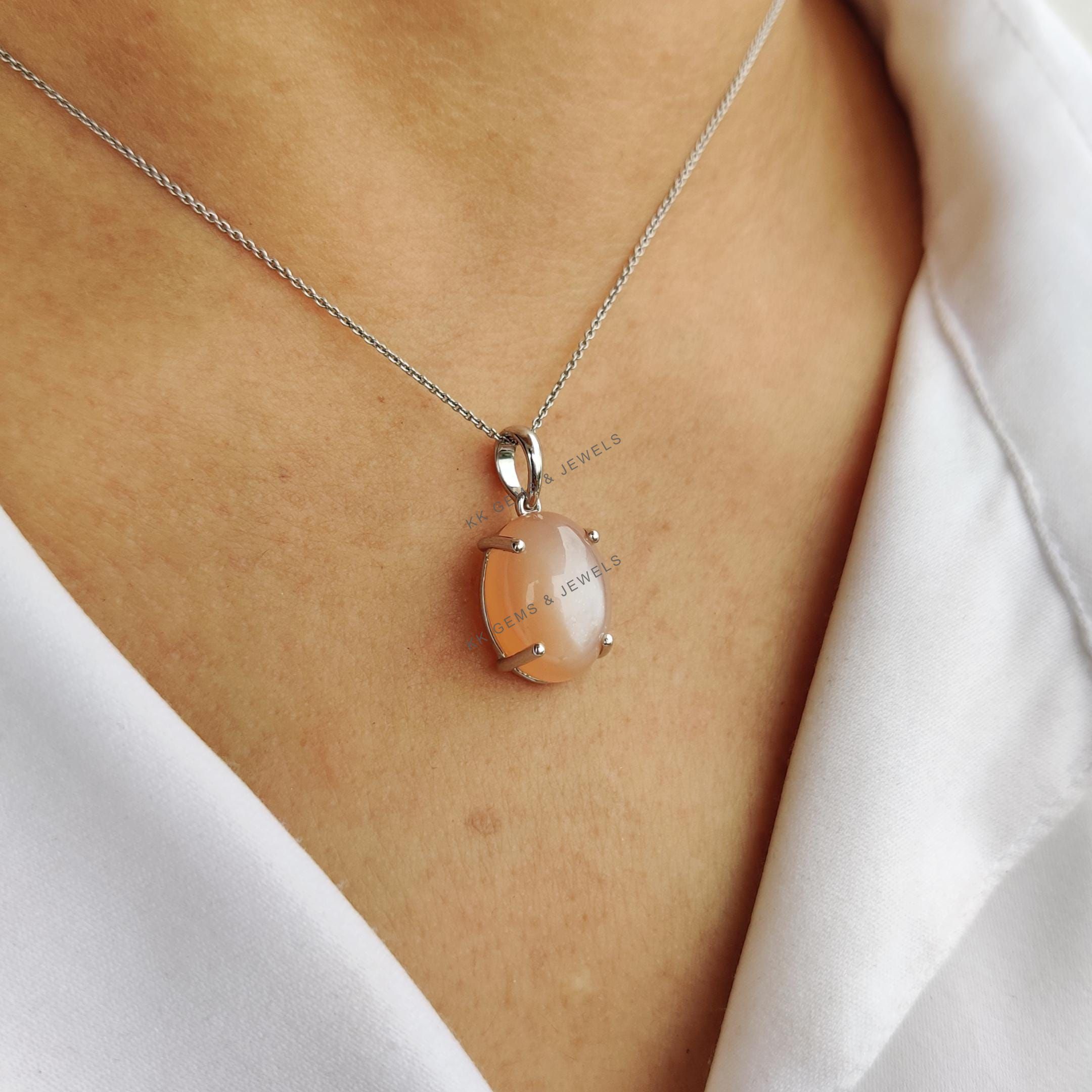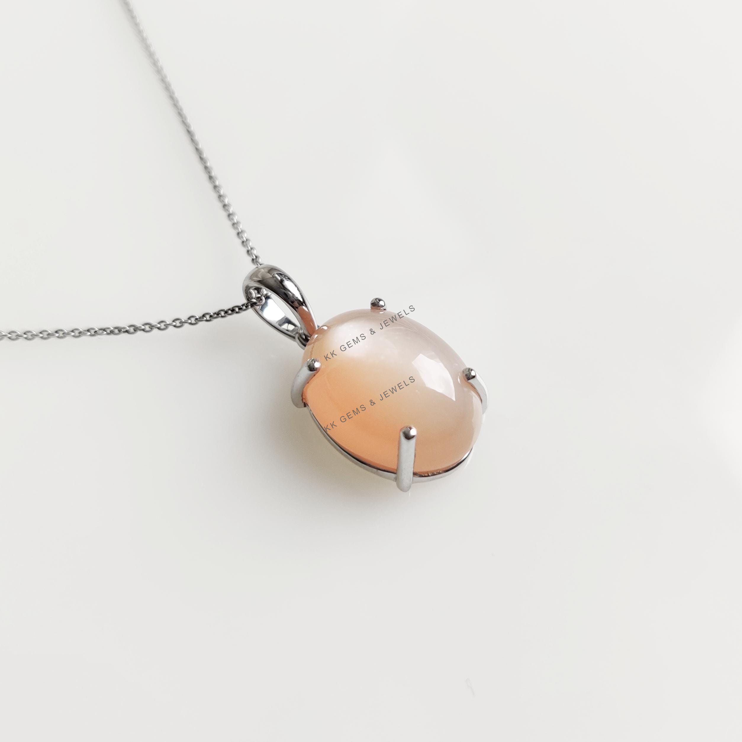 This stunning pendant is set in 14k Solid White Gold with Natural Peach Moonstone with utmost precision. It is an unique gemstone pendant for nearly every occasion and is completely hassle-free jewelry. ✓ ABOUT GEMSTONE: Peach Moonstone: is a variety…