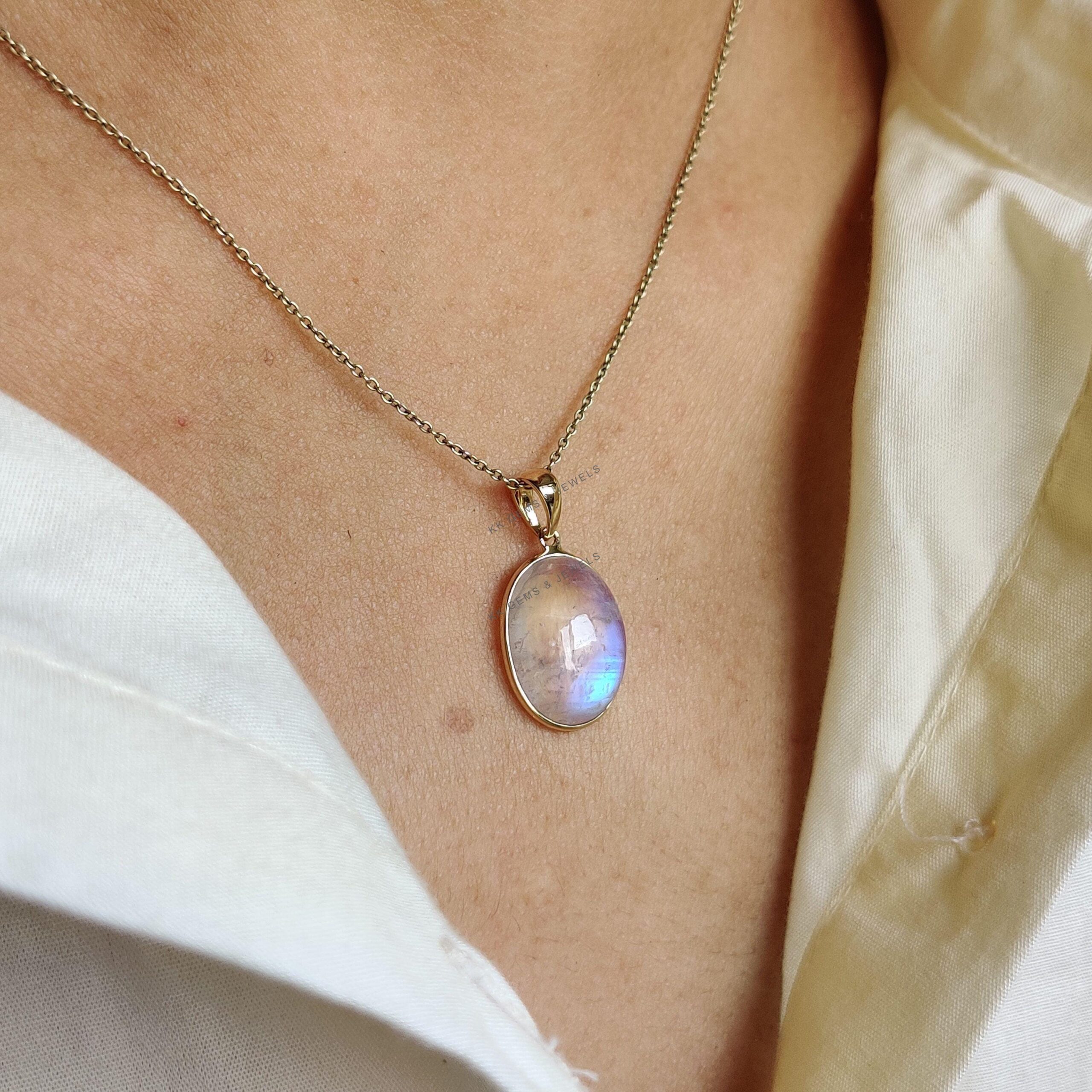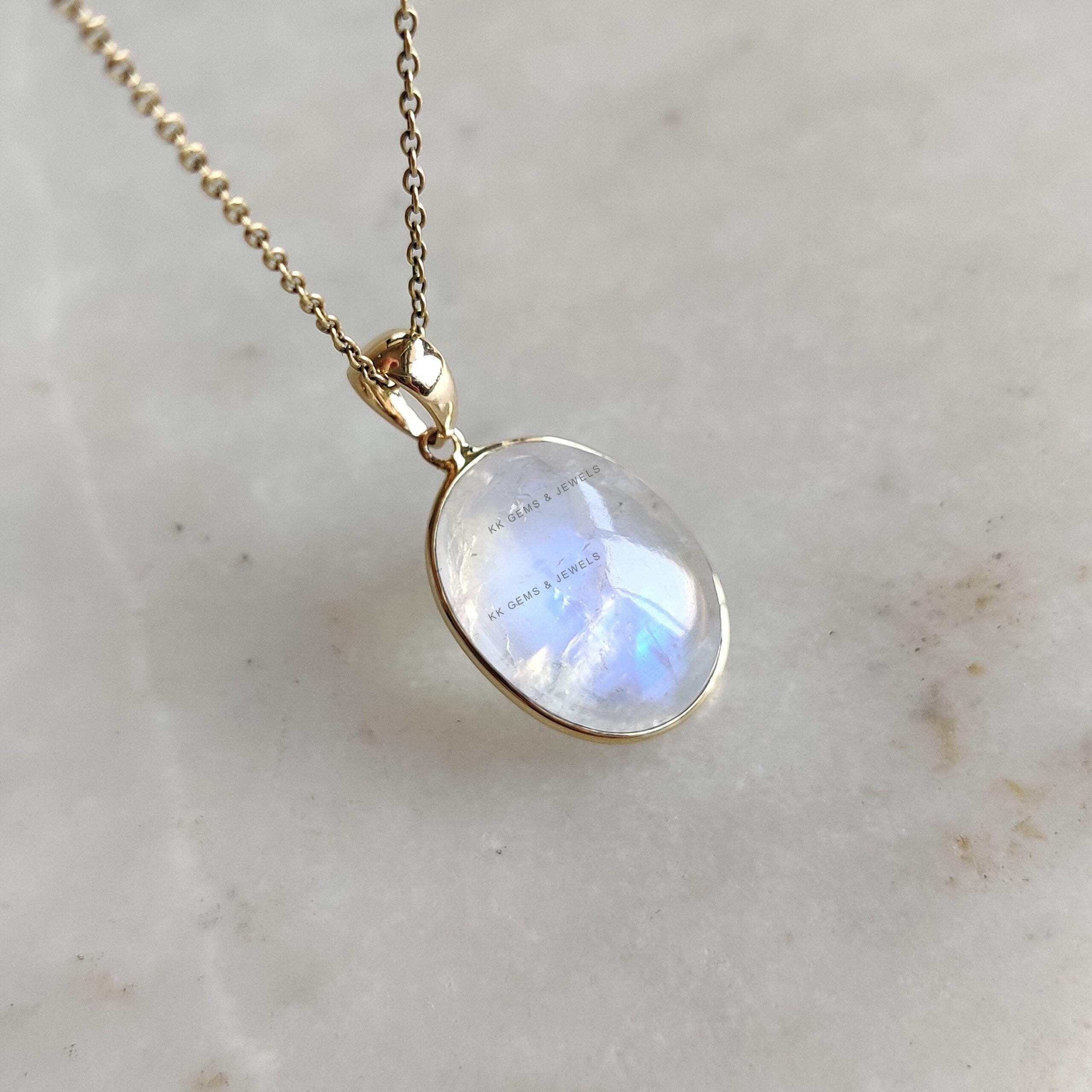 This stunning pendant is set in 14k Solid Yellow Gold with Natural Rainbow Moonstone with utmost precision. It is an unique gemstone pendant for nearly every occasion and is completely hassle-free jewelry. ✓ ABOUT GEMSTONE: Rainbow Moonstone is believed to…