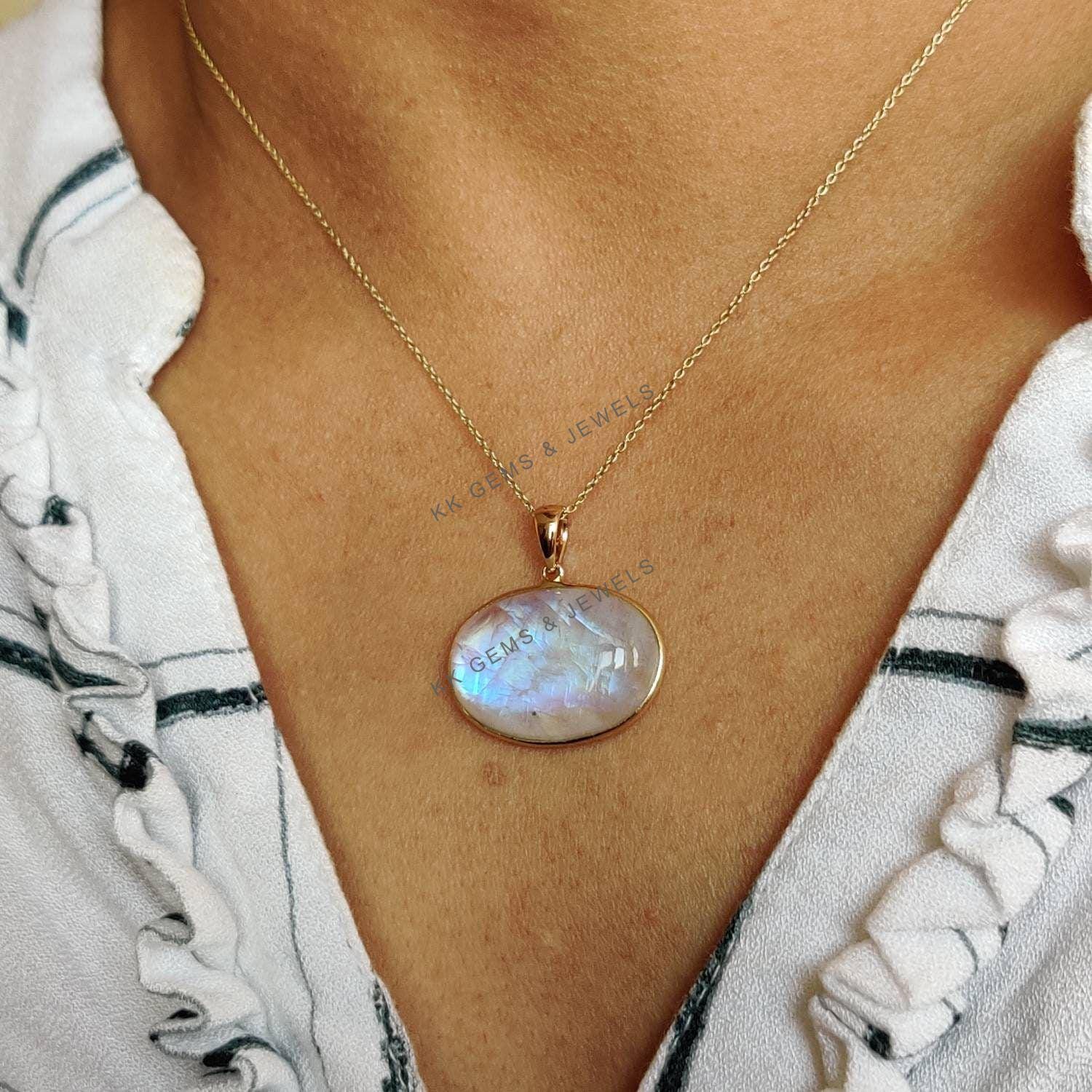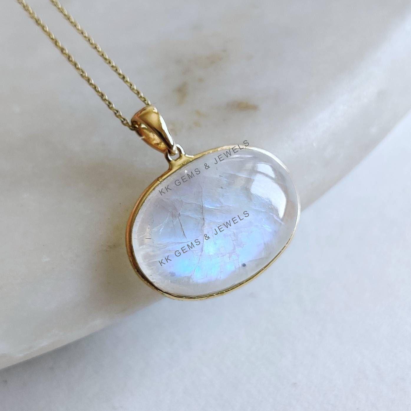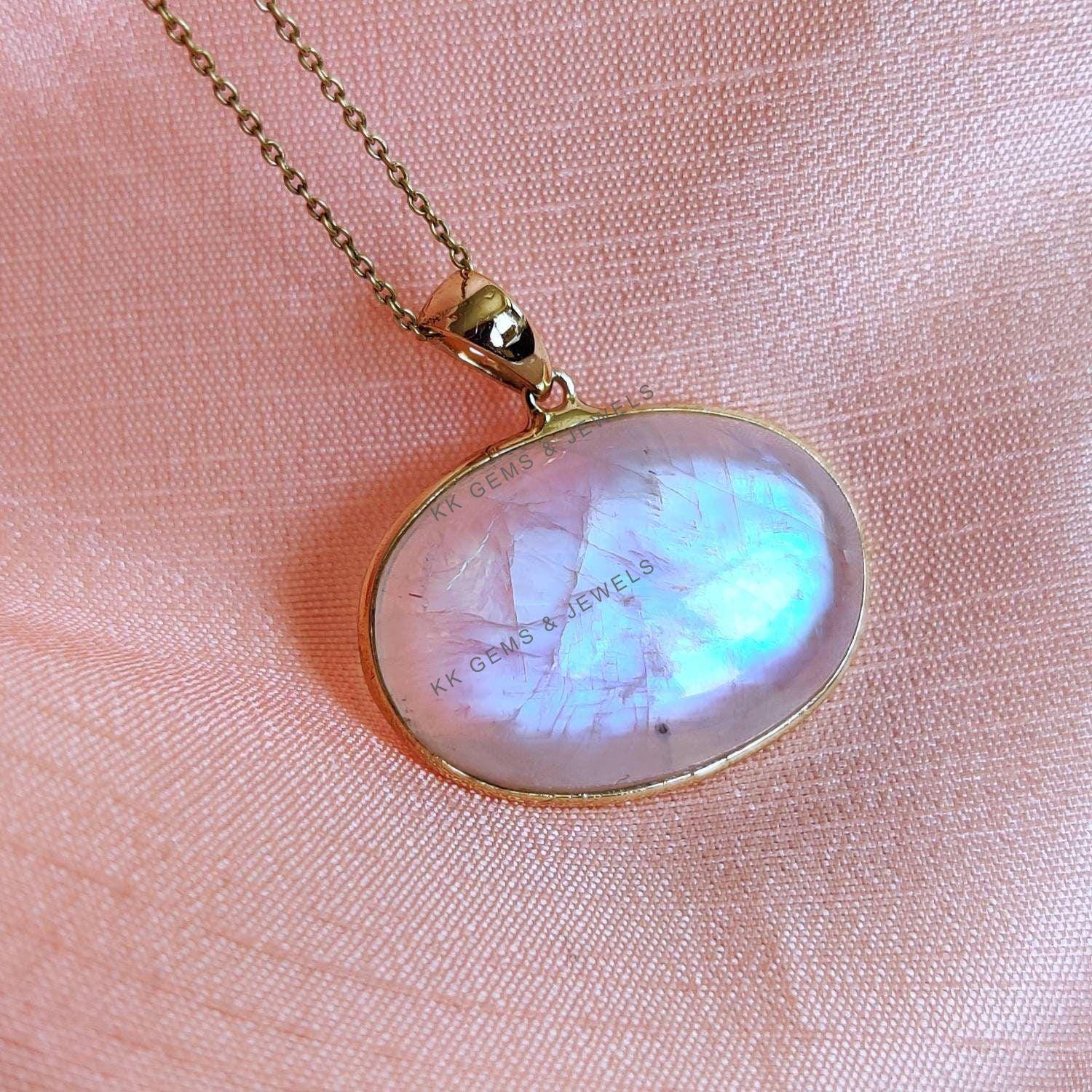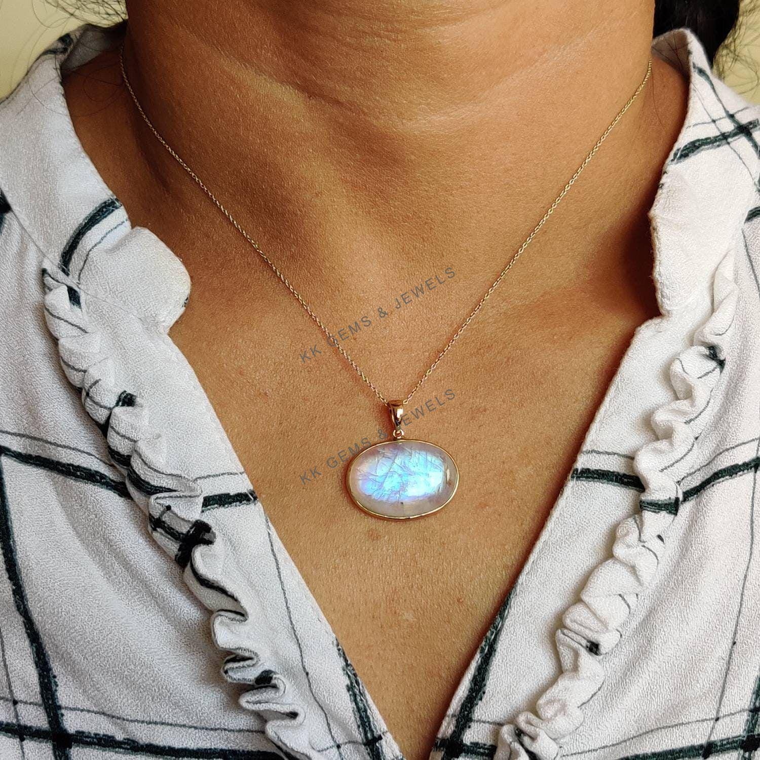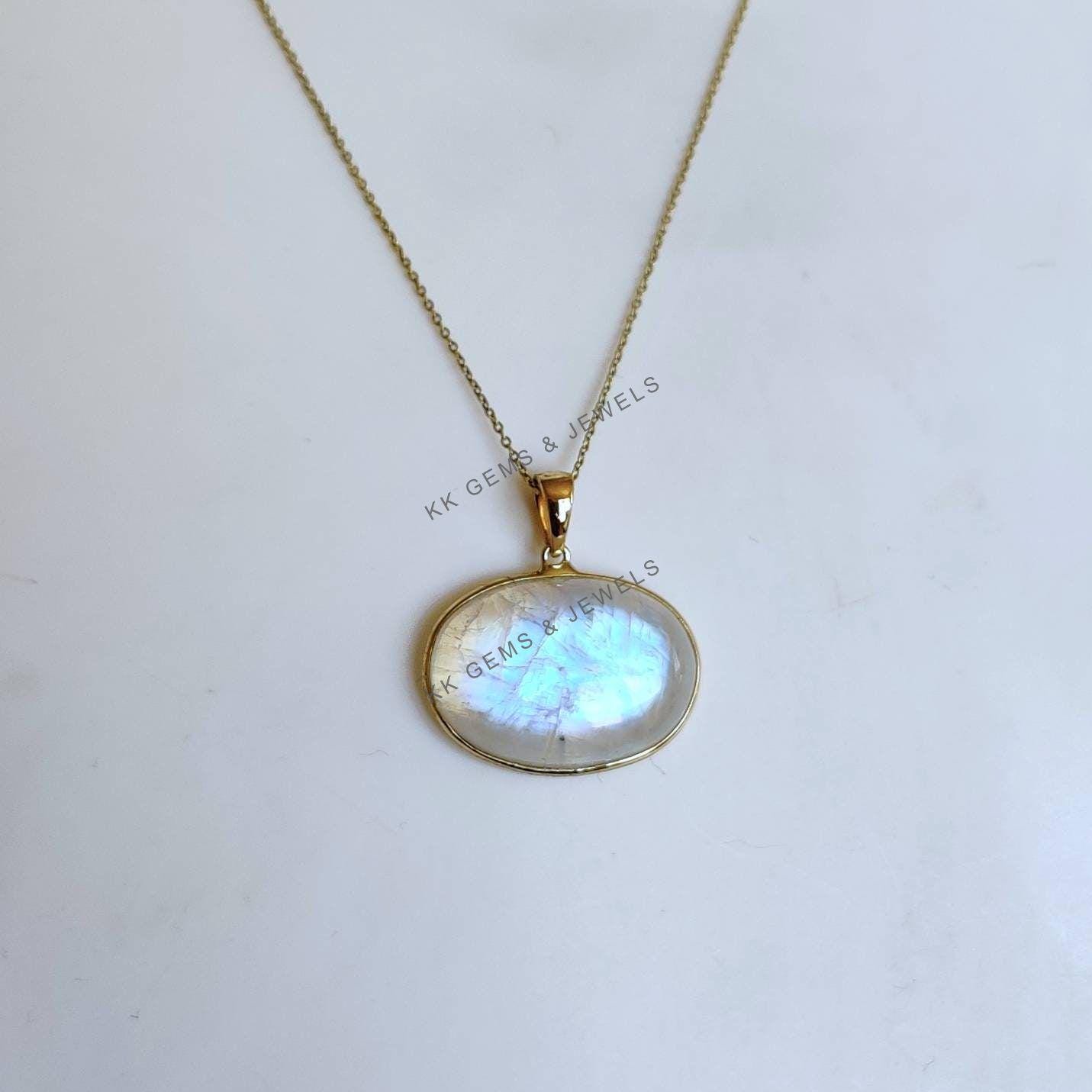 This stunning pendant is set in 14k Solid Yellow Gold with Natural Rainbow Moonstone with utmost precision. It is an unique gemstone pendant for nearly every occasion and is completely hassle-free jewelry. ✓ ABOUT GEMSTONE: Rainbow Moonstone is believed to…