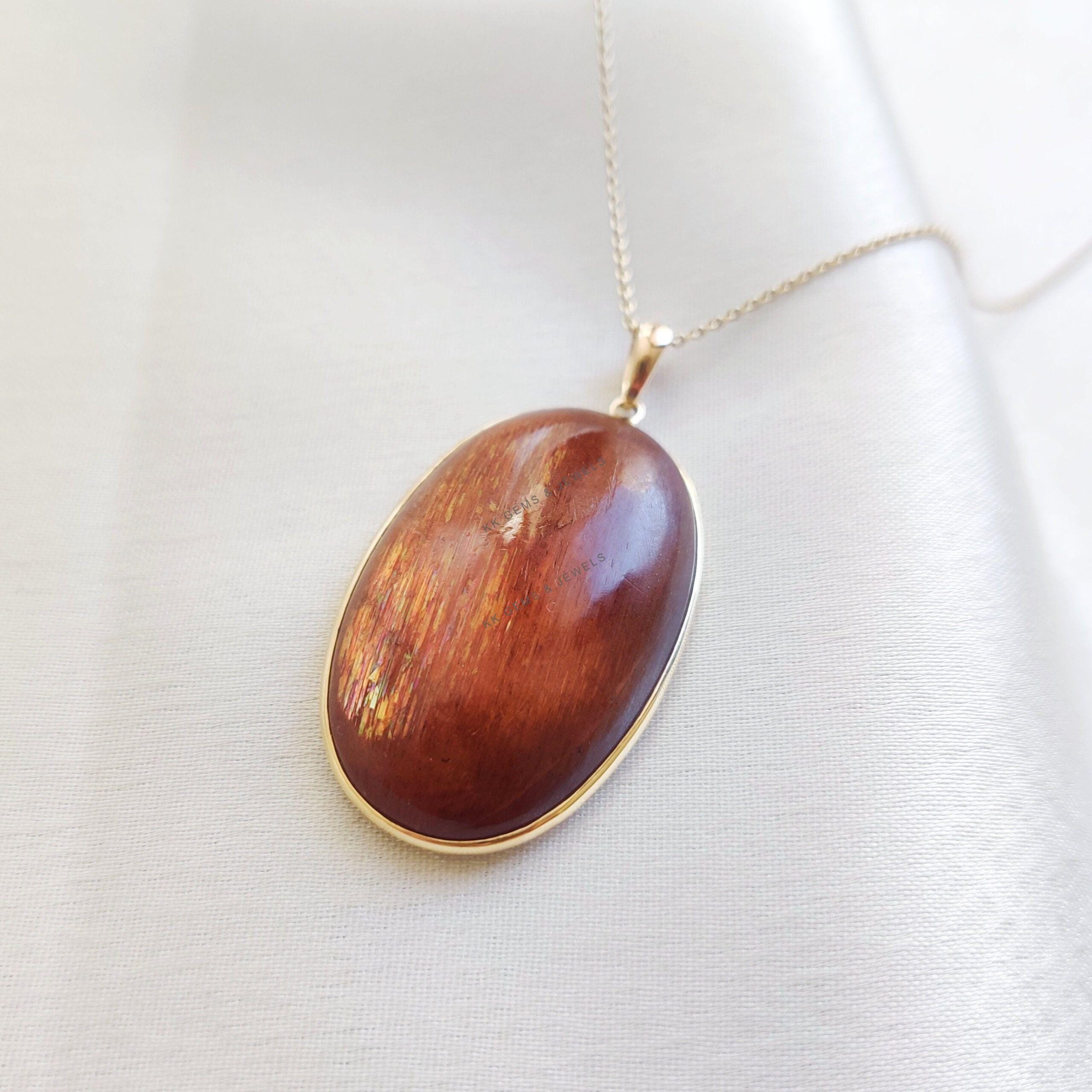 Be the first to review “Oval Cabochon Natural Sunstone Pendant, Bezel Set in 14K Solid Gold, Birthstone”