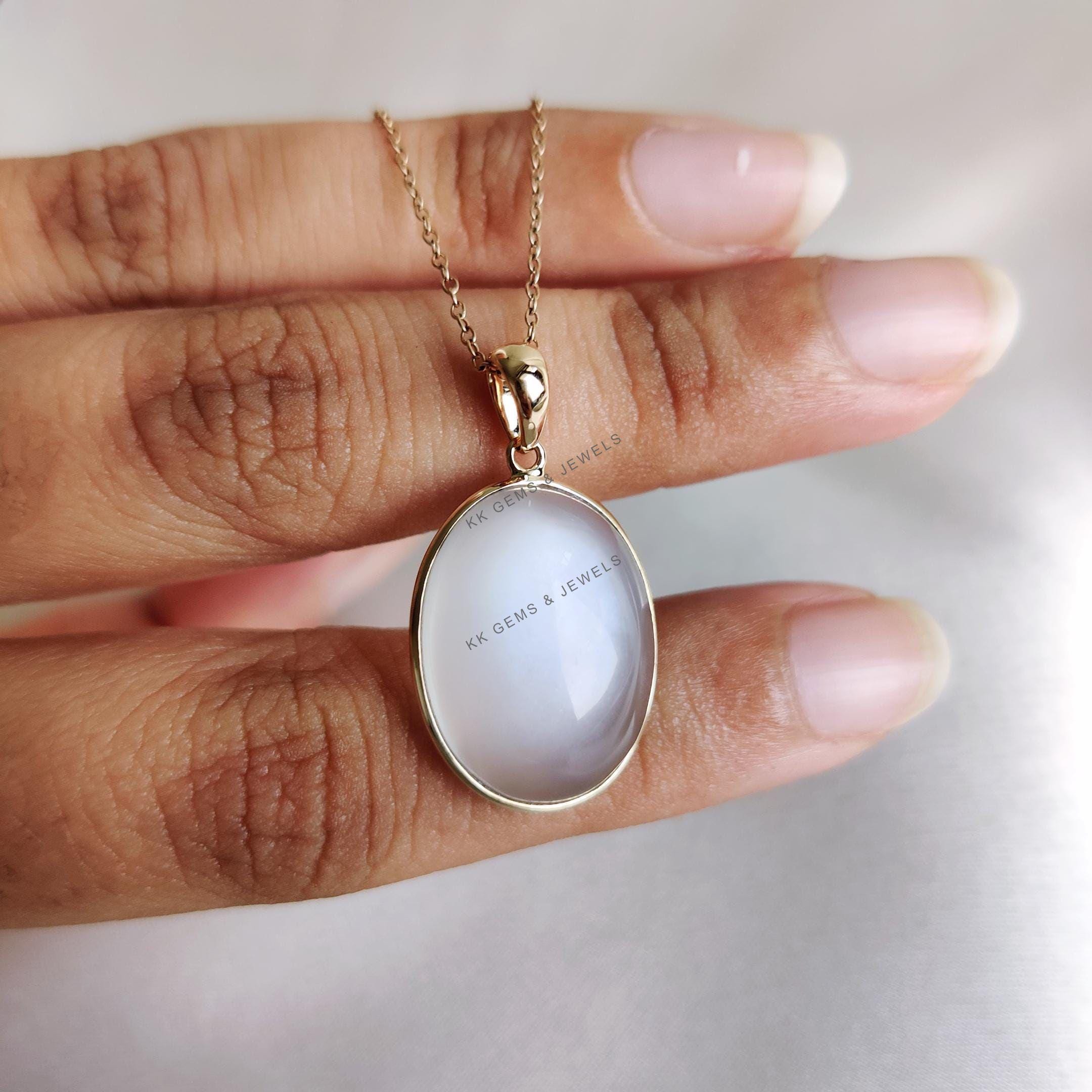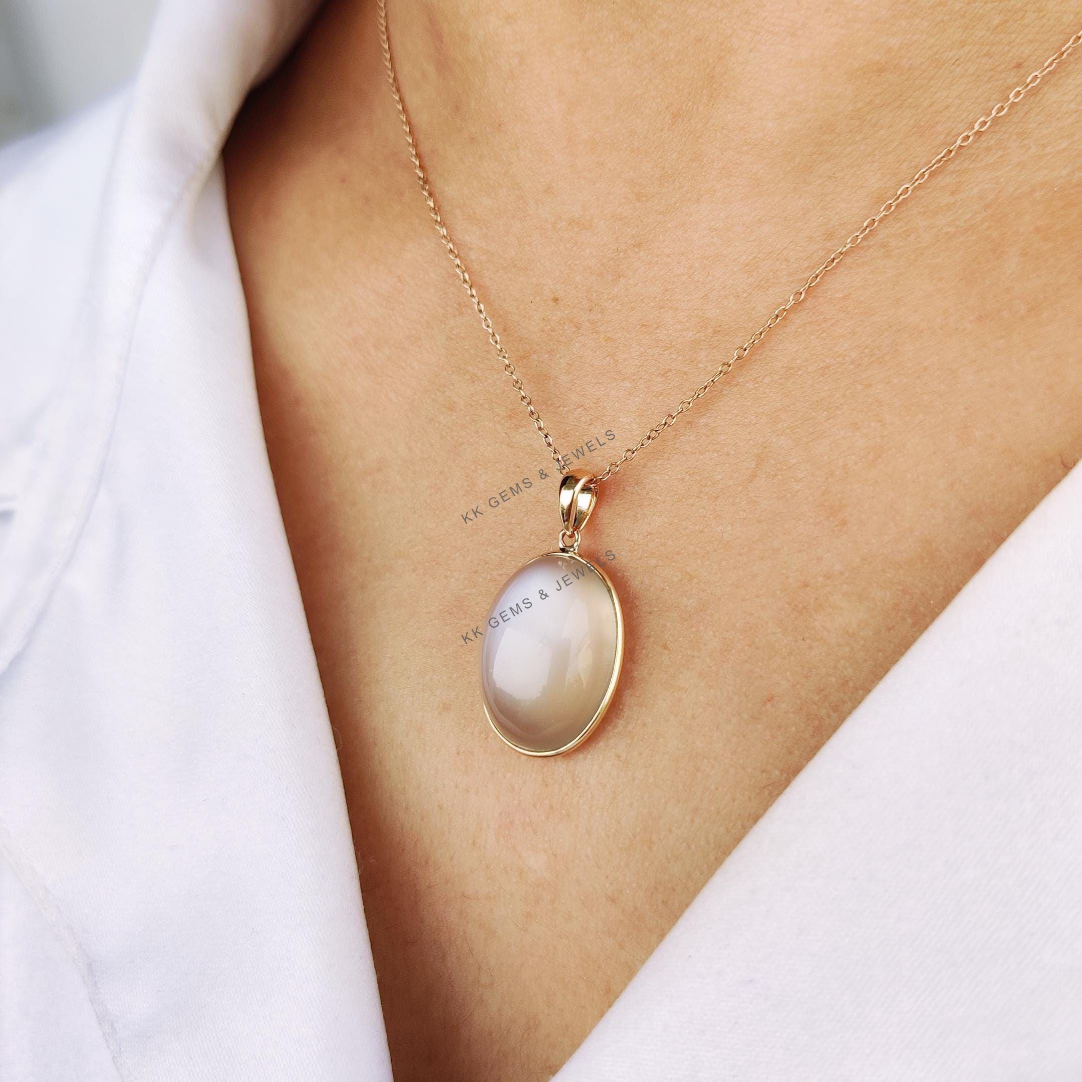 This stunning pendant is set in 14k Solid Yellow Gold with Natural White Moonstone with utmost precision. It is an unique gemstone pendant for nearly every occasion and is completely hassle-free jewelry. ✓ ABOUT GEMSTONE: White moonstone, with its milky…