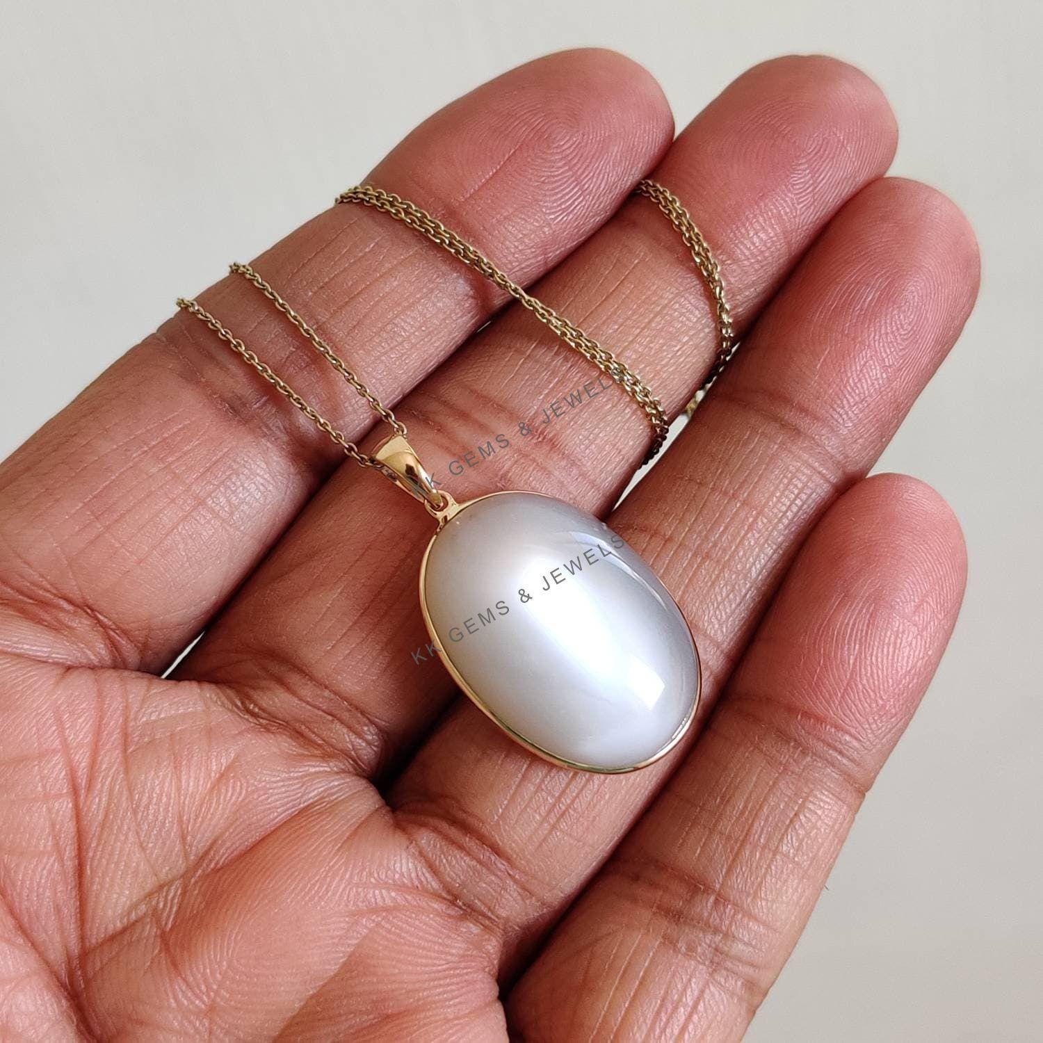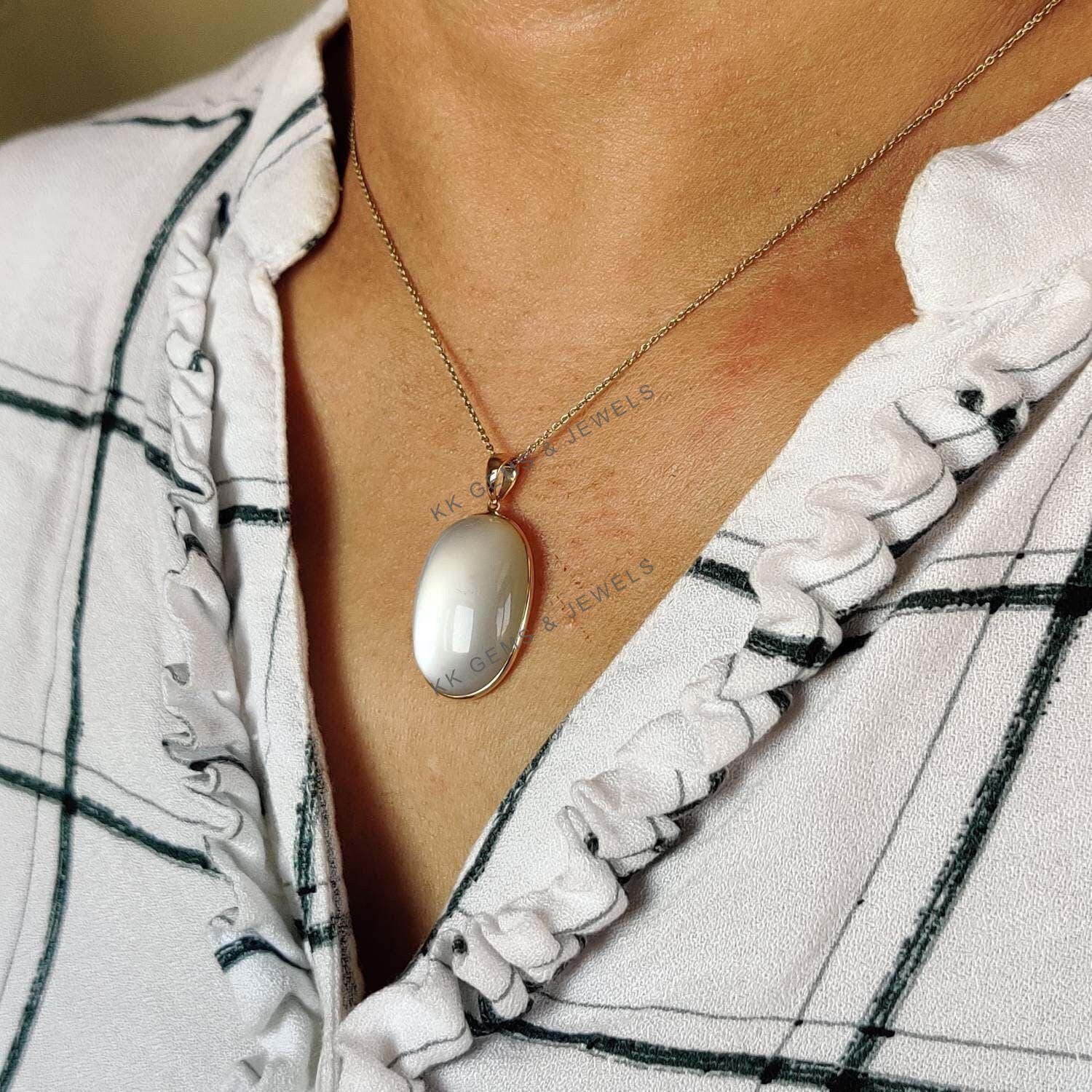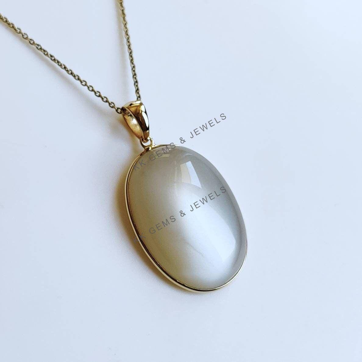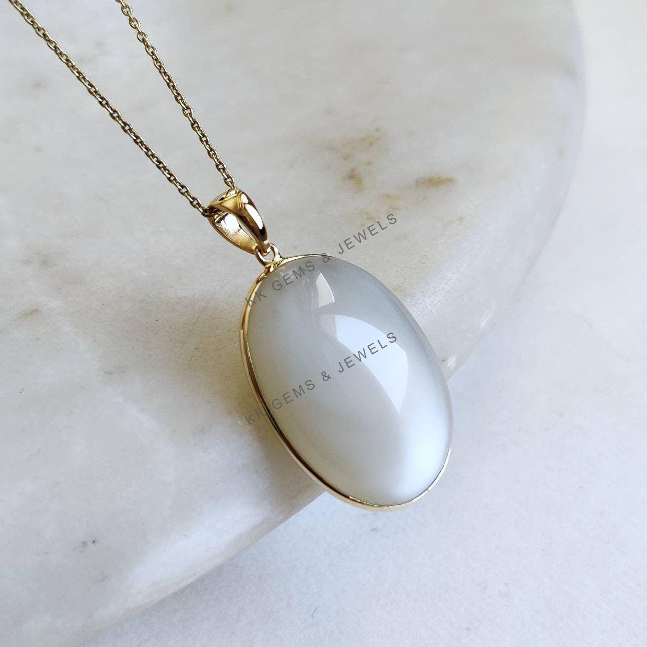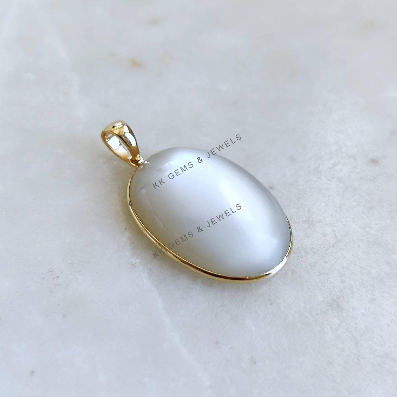This stunning pendant is set in 14k Solid Yellow Gold with Natural White Moonstone with utmost precision. It is an unique gemstone pendant for nearly every occasion and is completely hassle-free jewelry. ✓ ABOUT GEMSTONE: White moonstone, with its milky…