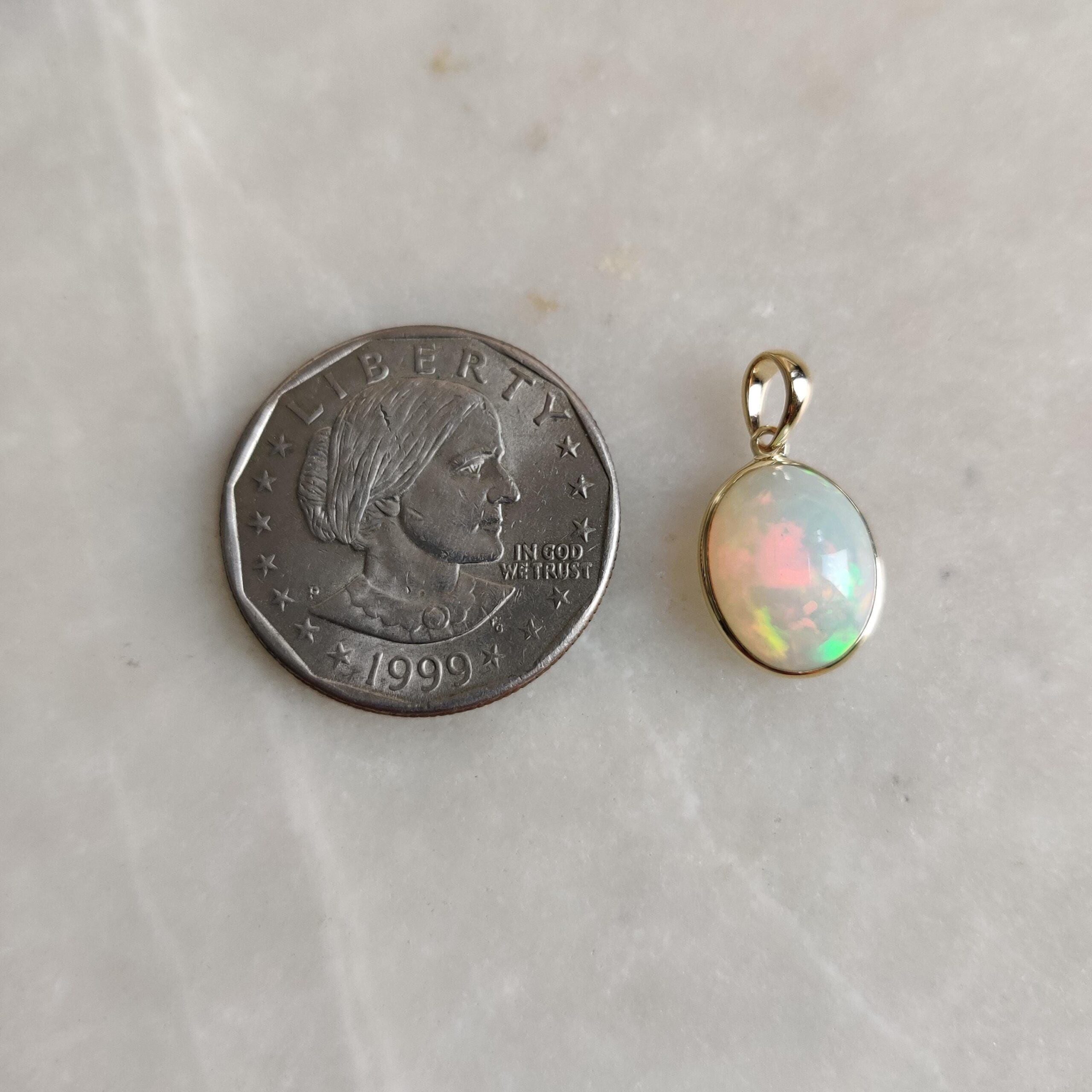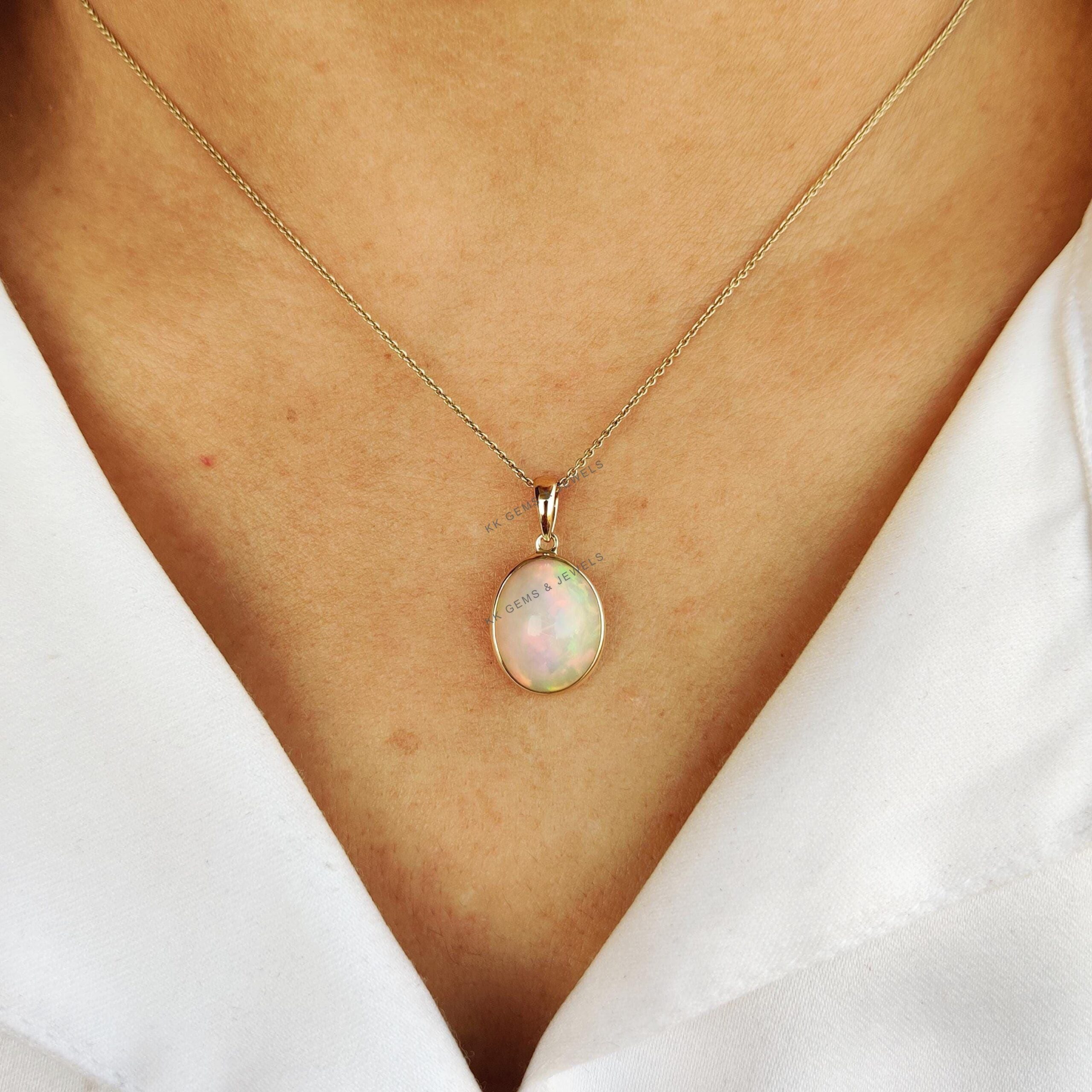 This stunning pendant is set in 14K Solid Yellow Gold with Natural Ethiopion White Opal with utmost precision. It is an unique gemstone pendant for nearly every occasion and is completely hassle-free jewelry.