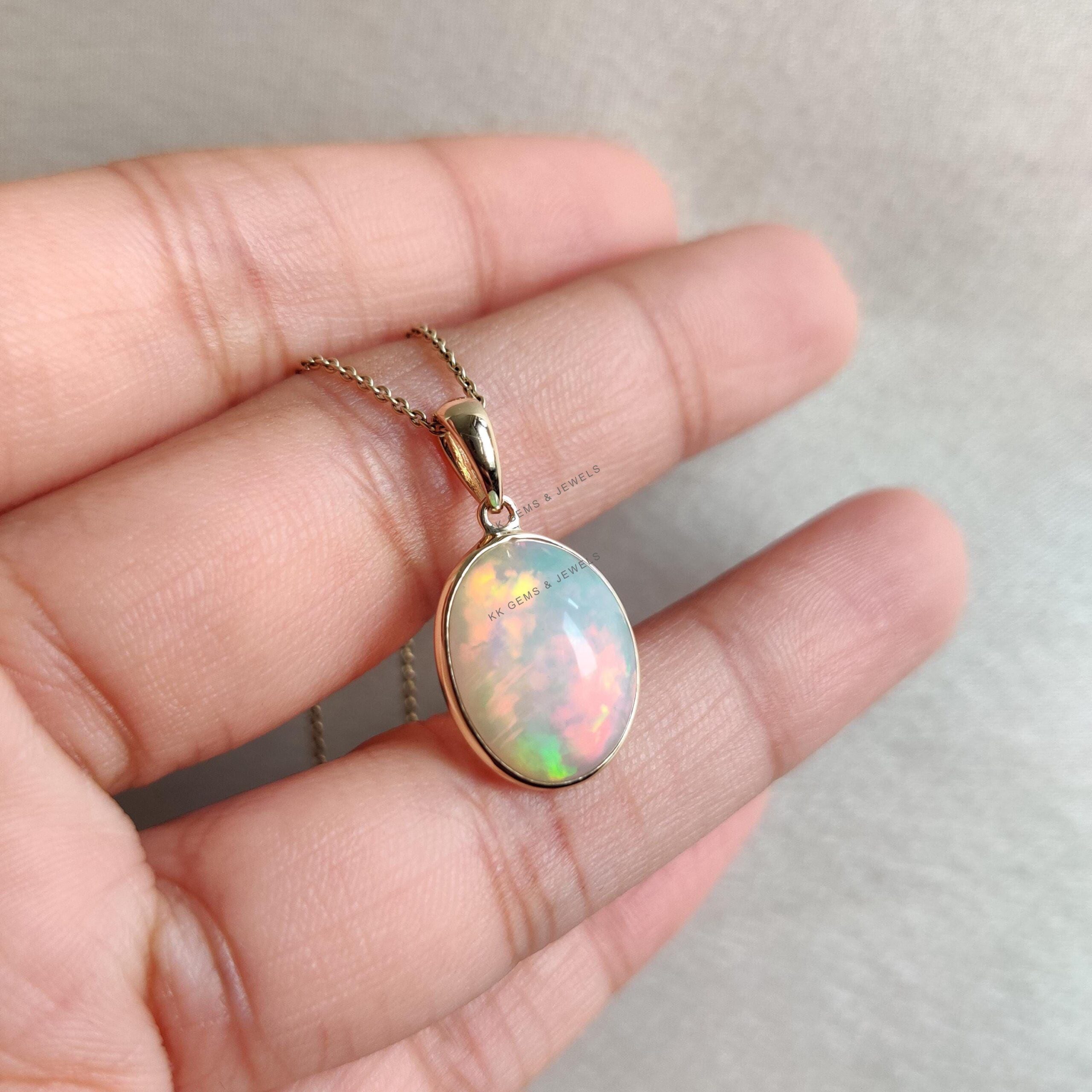 This stunning pendant is set in 14K Solid Yellow Gold with Natural Ethiopion White Opal with utmost precision. It is an unique gemstone pendant for nearly every occasion and is completely hassle-free jewelry. ✓ ABOUT GEMSTONE White Opal is a…