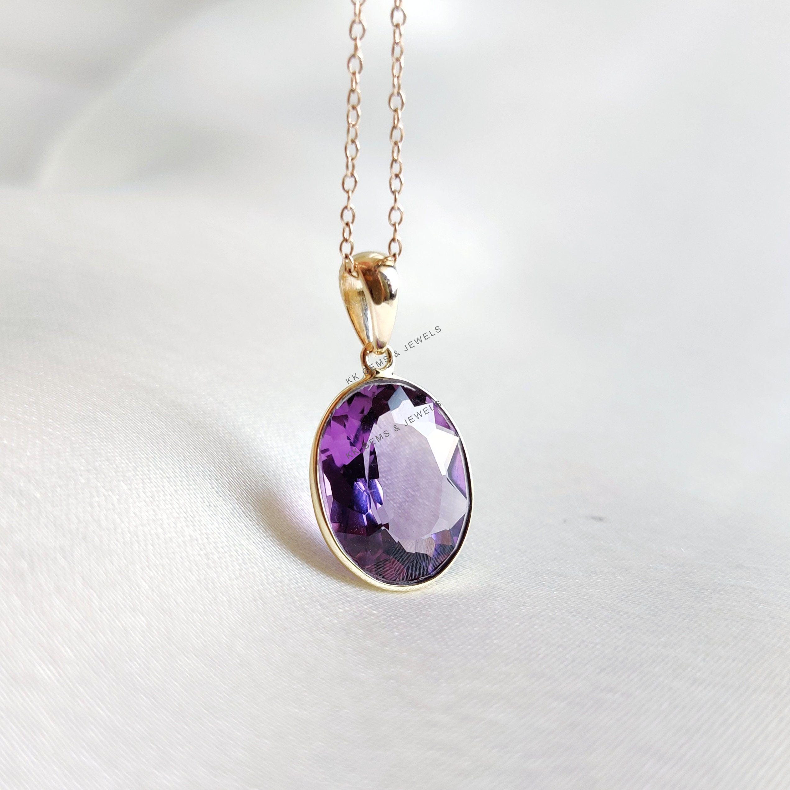 This stunning pendant is set in 14K Solid Yellow Gold with Natural Purple Amethyst with utmost precision. It is an unique gemstone pendant for nearly every occasion and is completely hassle-free jewelry.