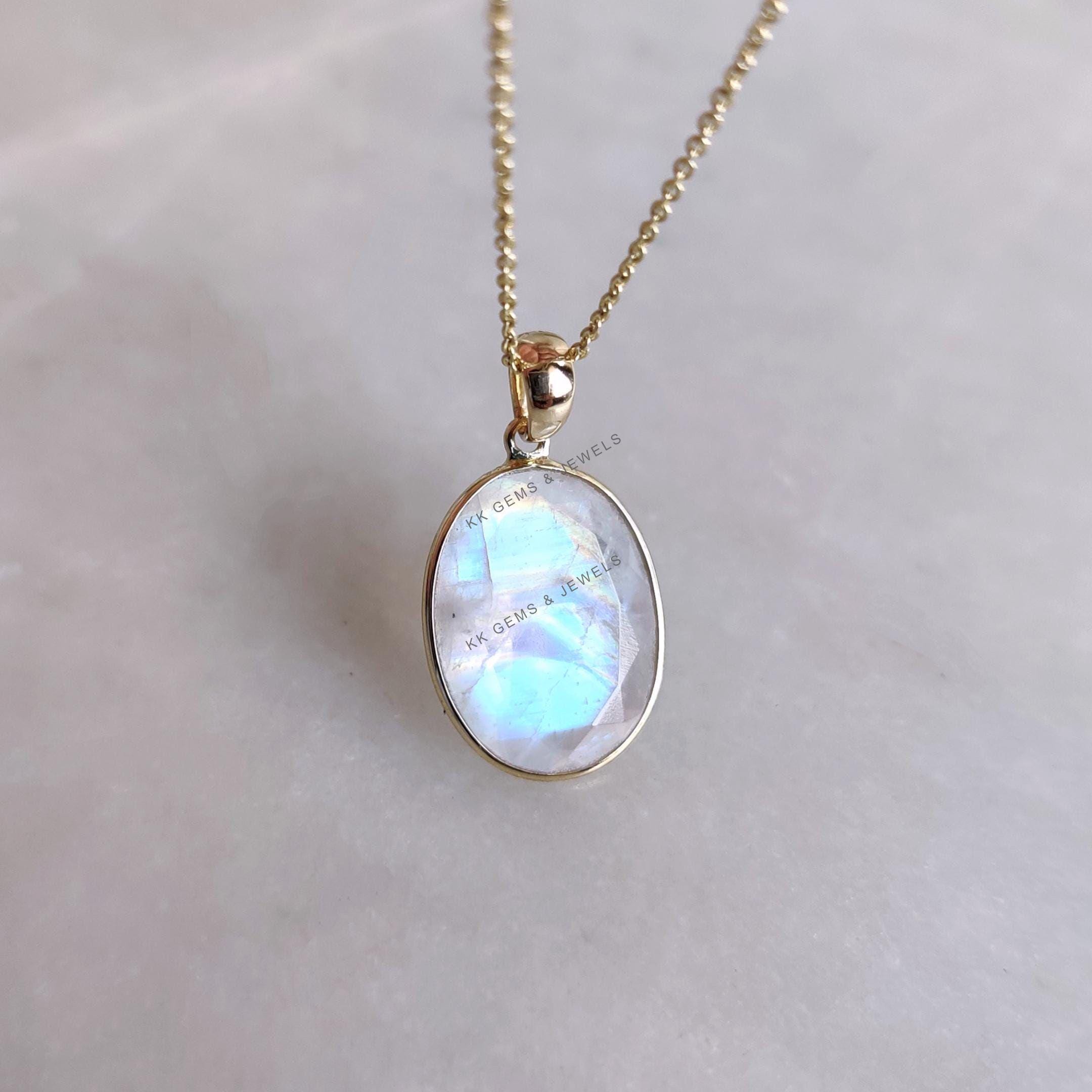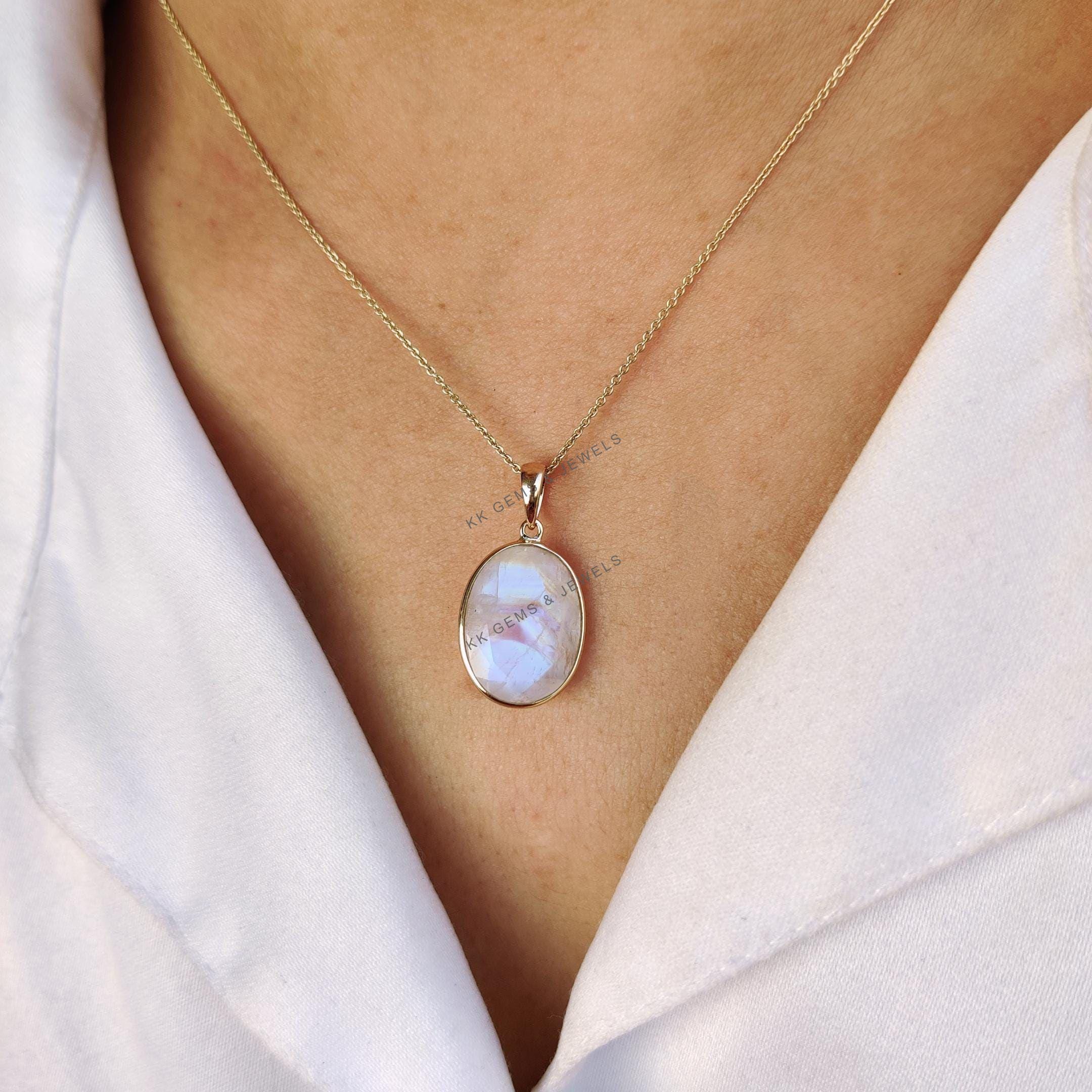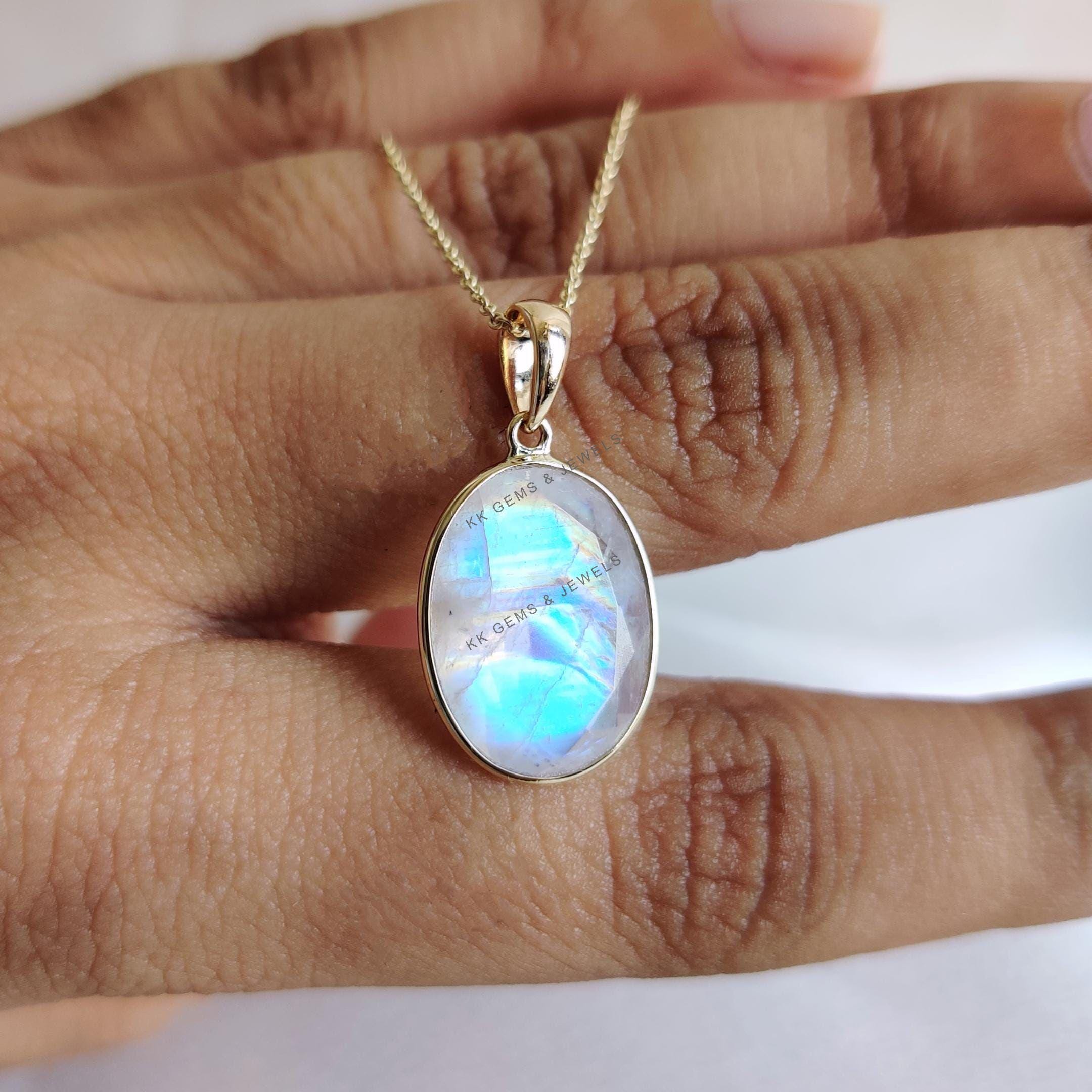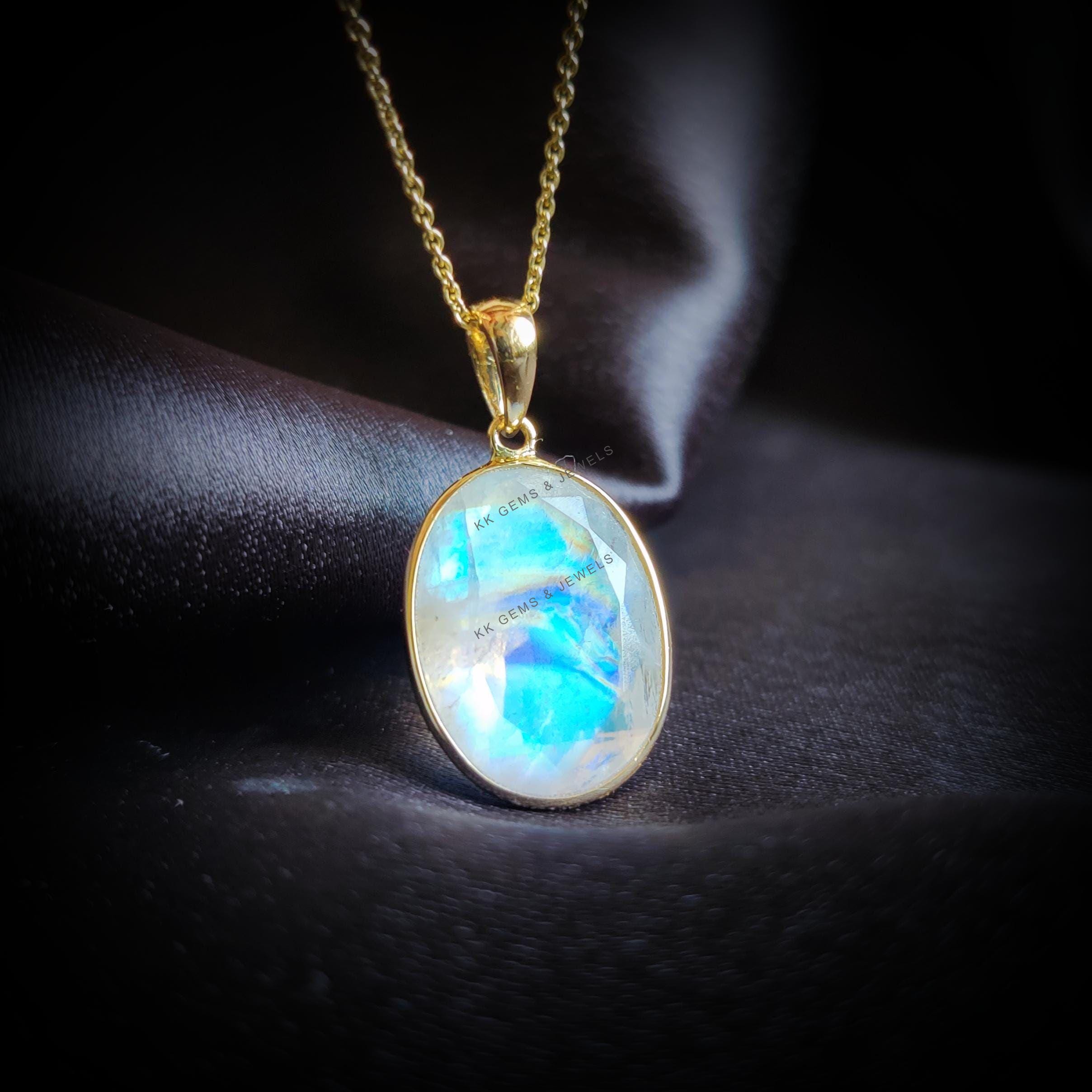 This stunning pendant is set in 14k Solid Yellow Gold with Natural Rainbow Moonstone with utmost precision. It is an unique gemstone pendant for nearly every occasion and is completely hassle-free jewelry. ✓ ABOUT GEMSTONE: Rainbow Moonstone is believed to…