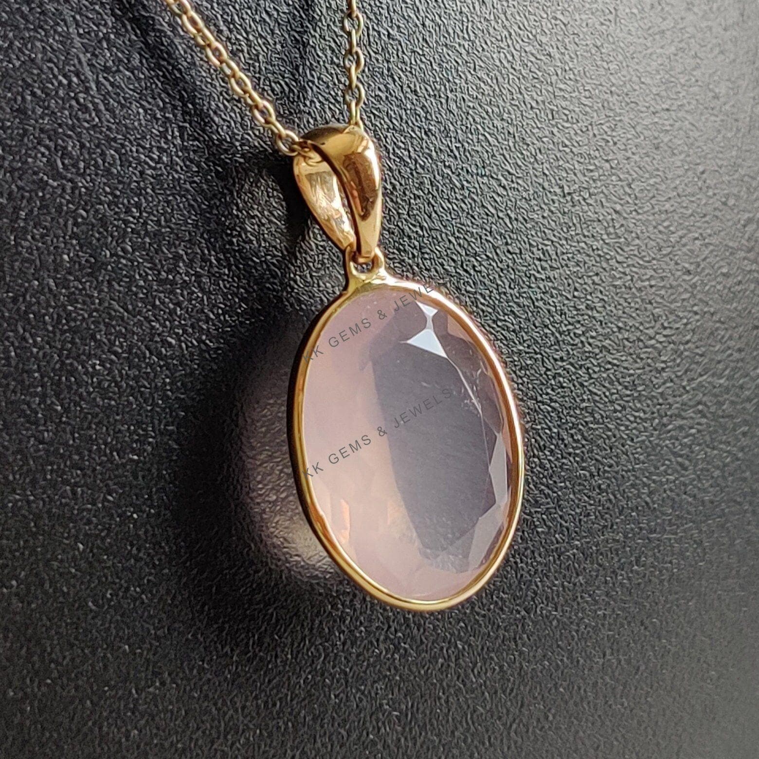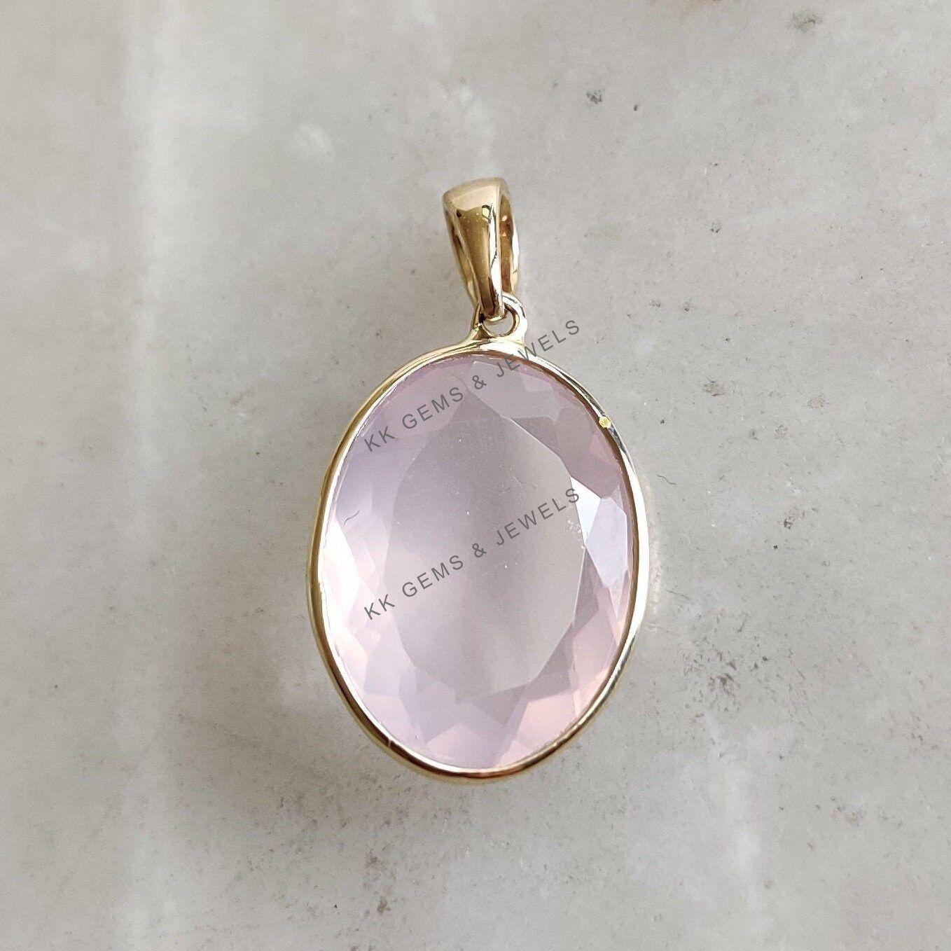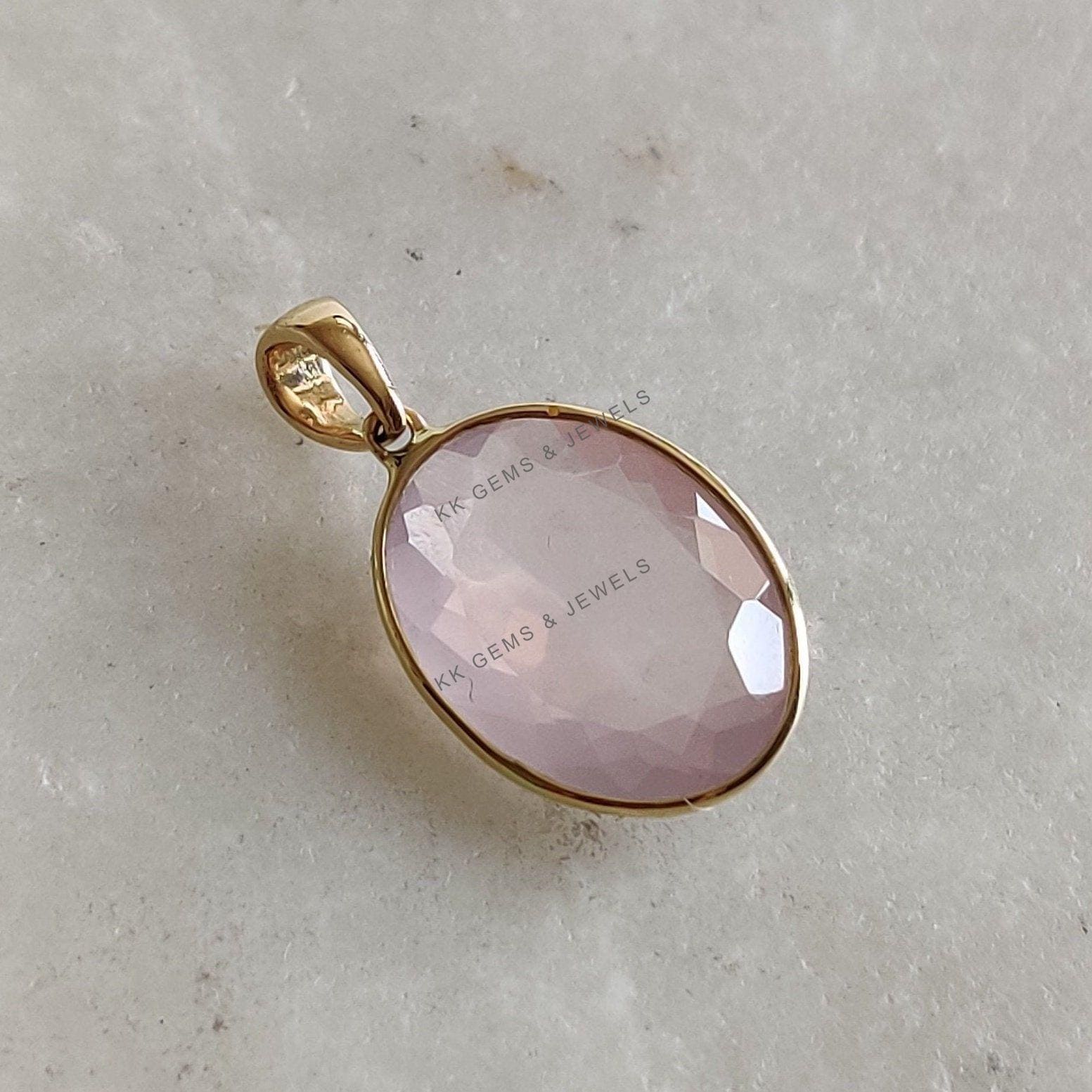 1 review for Oval Cut Natural Rose Quartz Bezel Pendant Set in 14K Solid Yellow Gold, January Birthstone