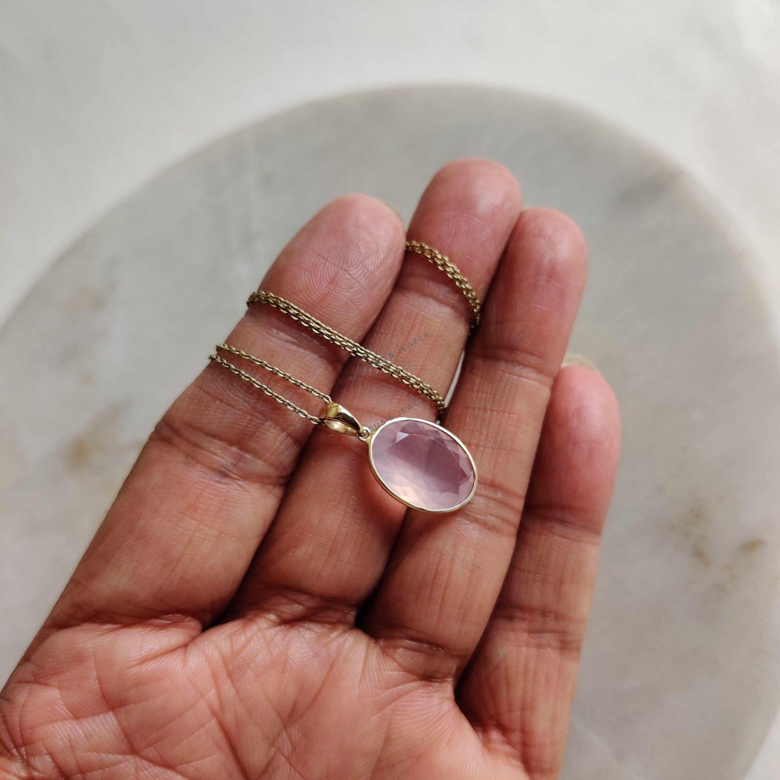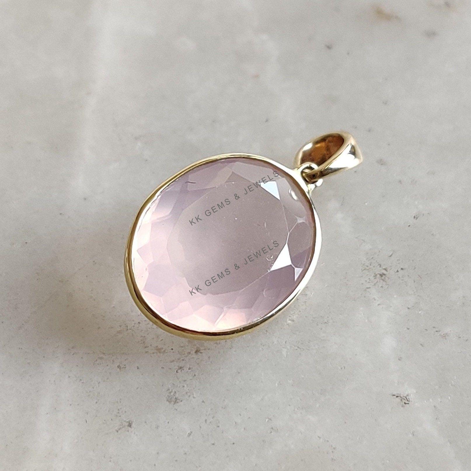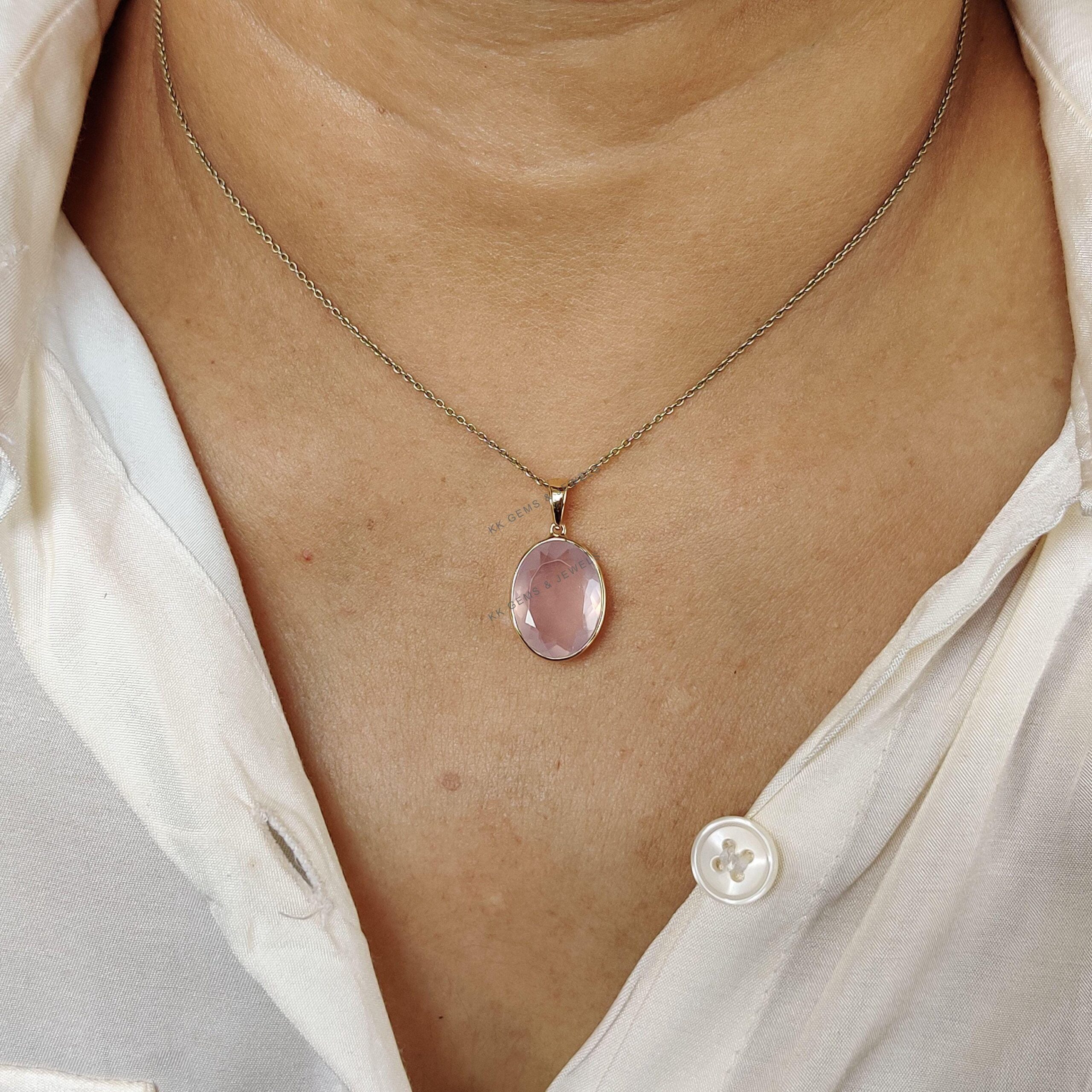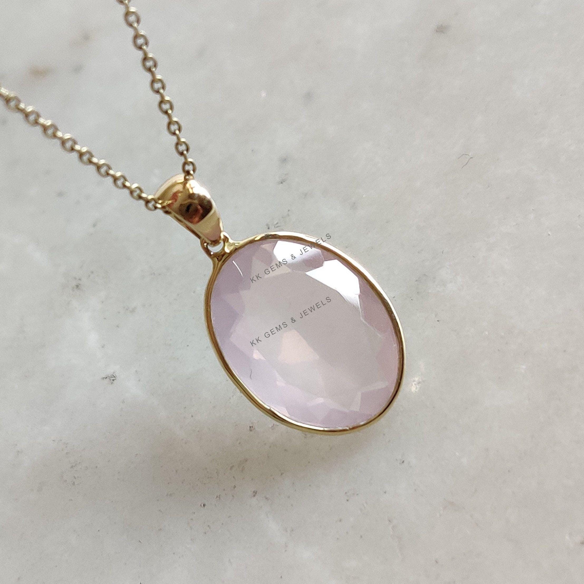 1 review for Oval Cut Natural Rose Quartz Bezel Pendant Set in 14K Solid Yellow Gold, January Birthstone