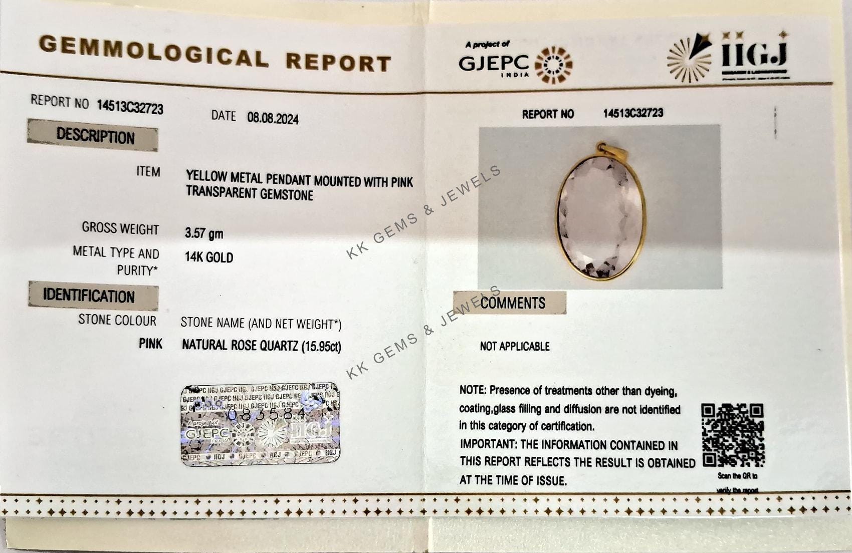 This stunning pendant is set in 14K Solid Yellow Gold with Natural Rose Quartz with utmost precision. It is an unique gemstone pendant for nearly every occasion and is completely hassle-free jewelry.