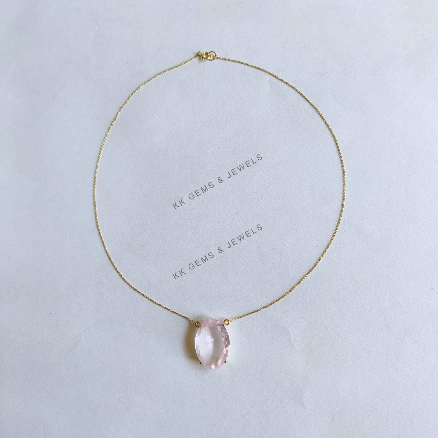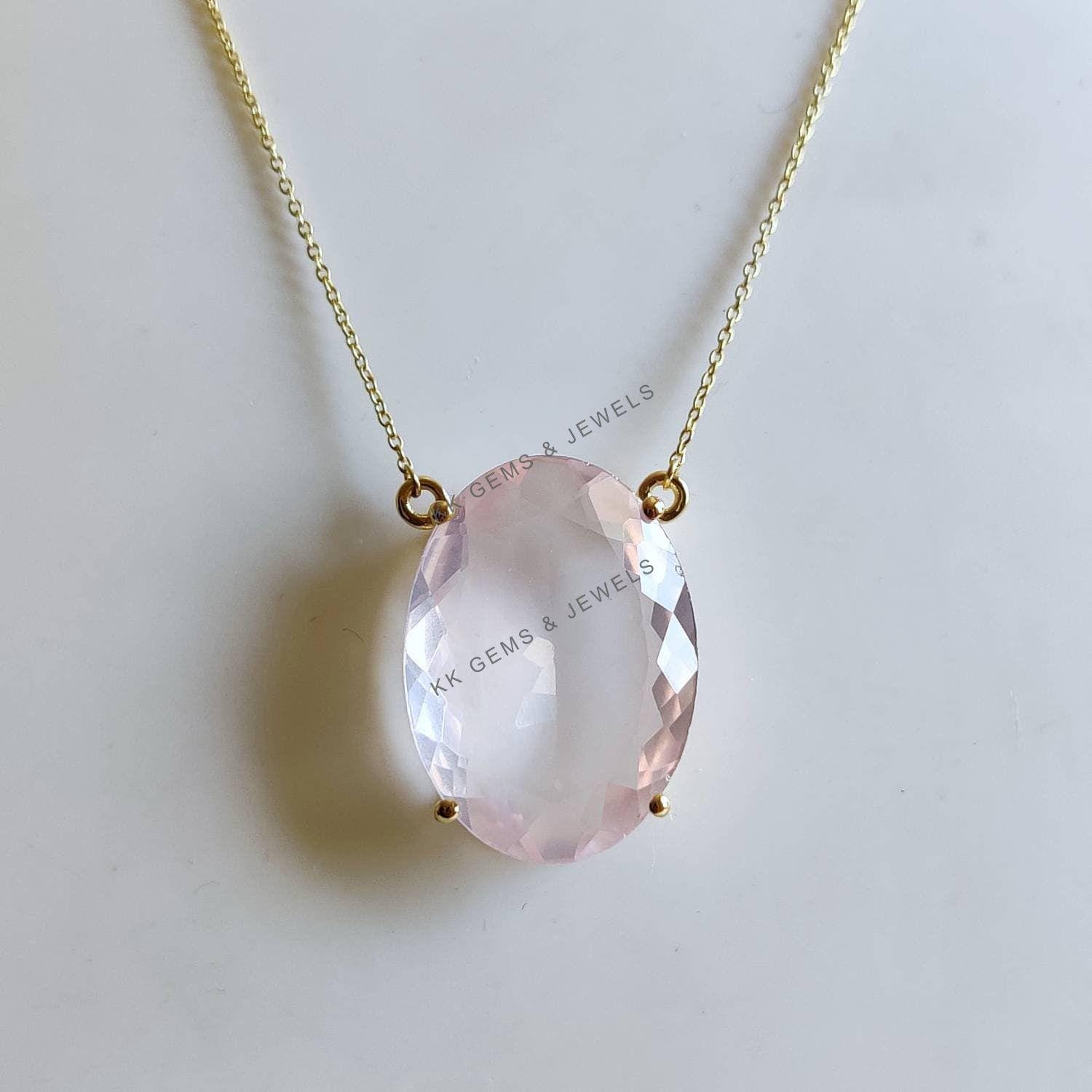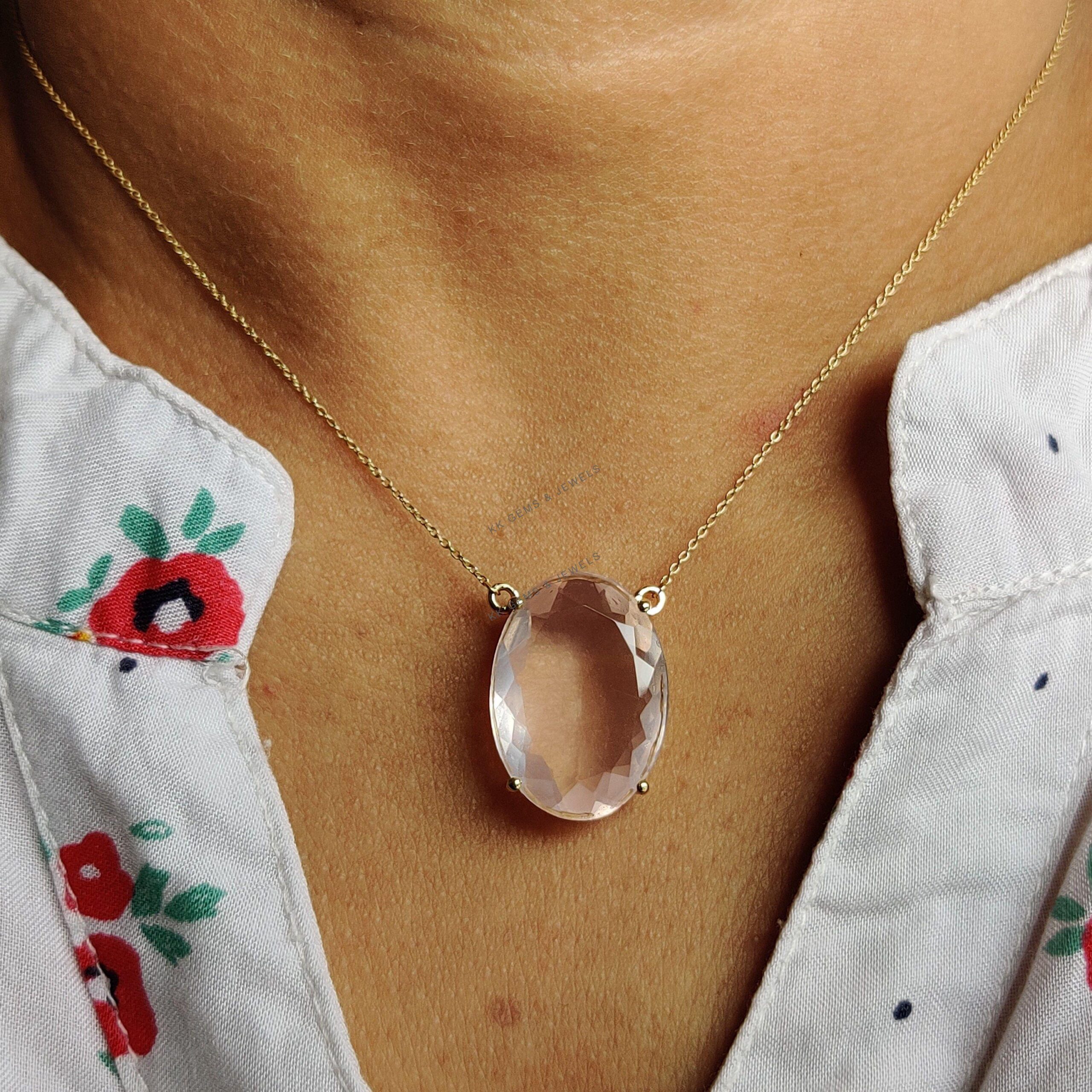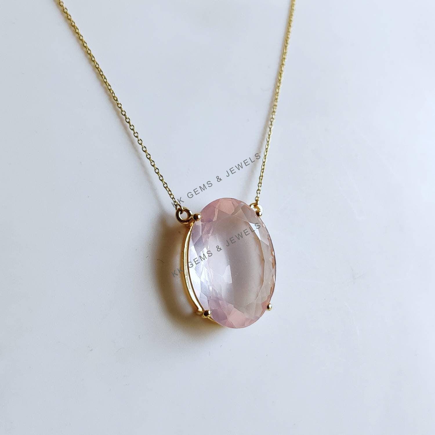 Be the first to review “Oval Cut Natural Rose Quartz Pendant Set in 14K Solid Gold Prong Setting”