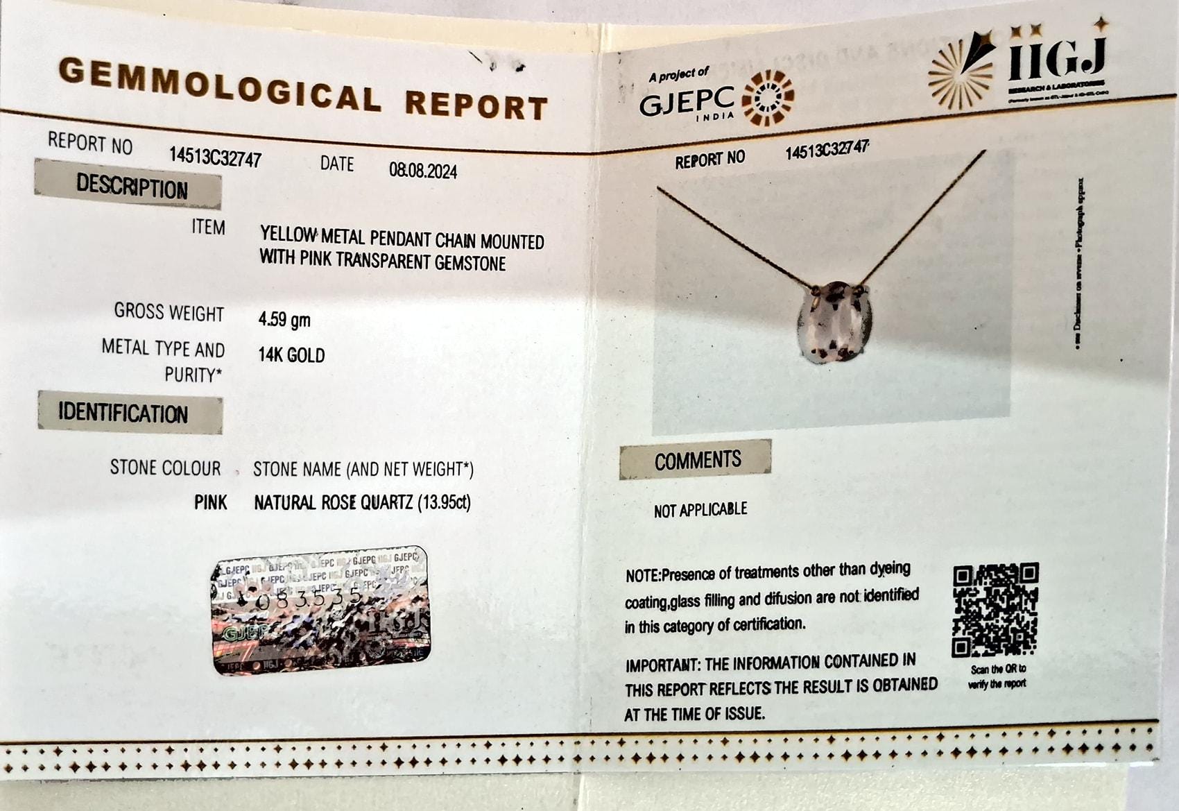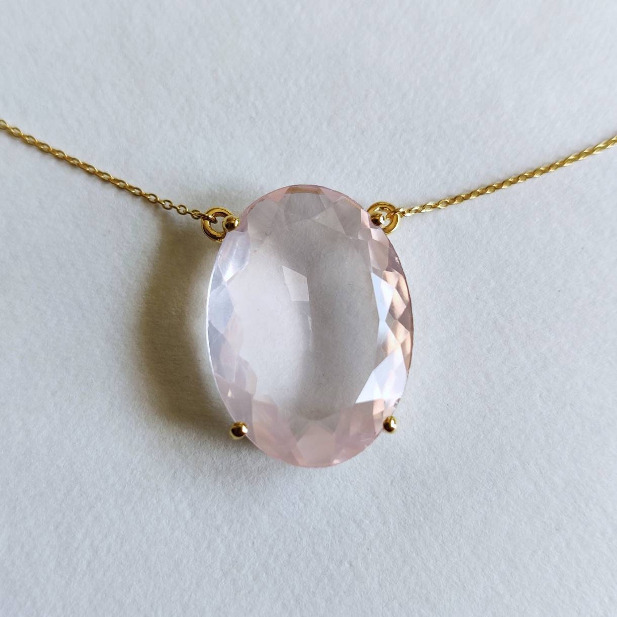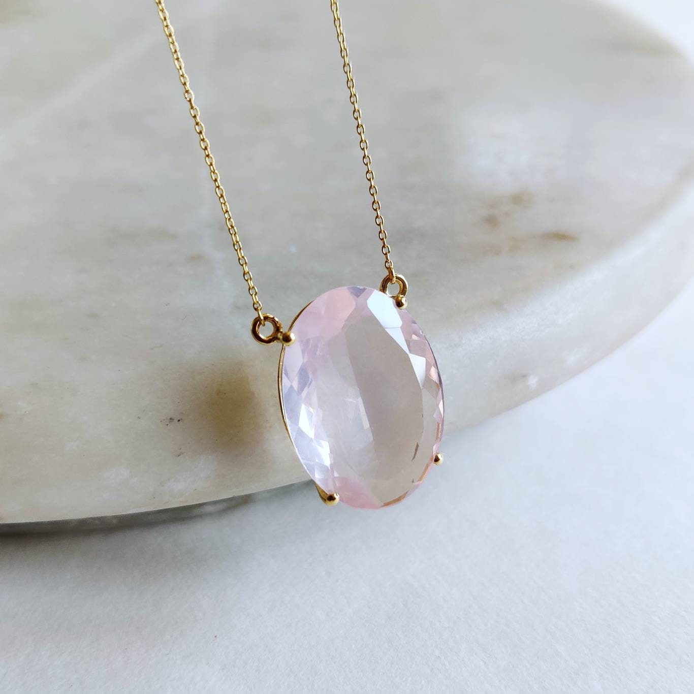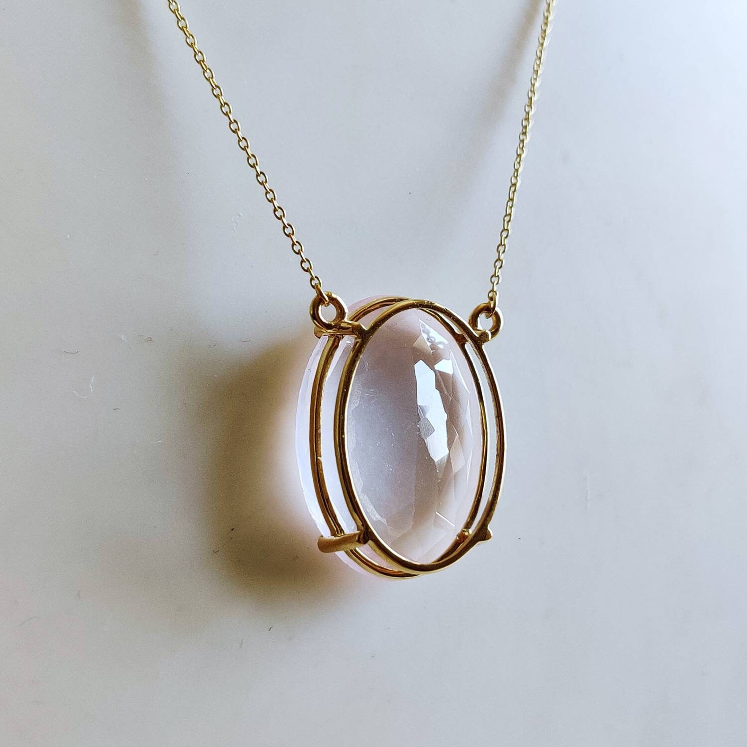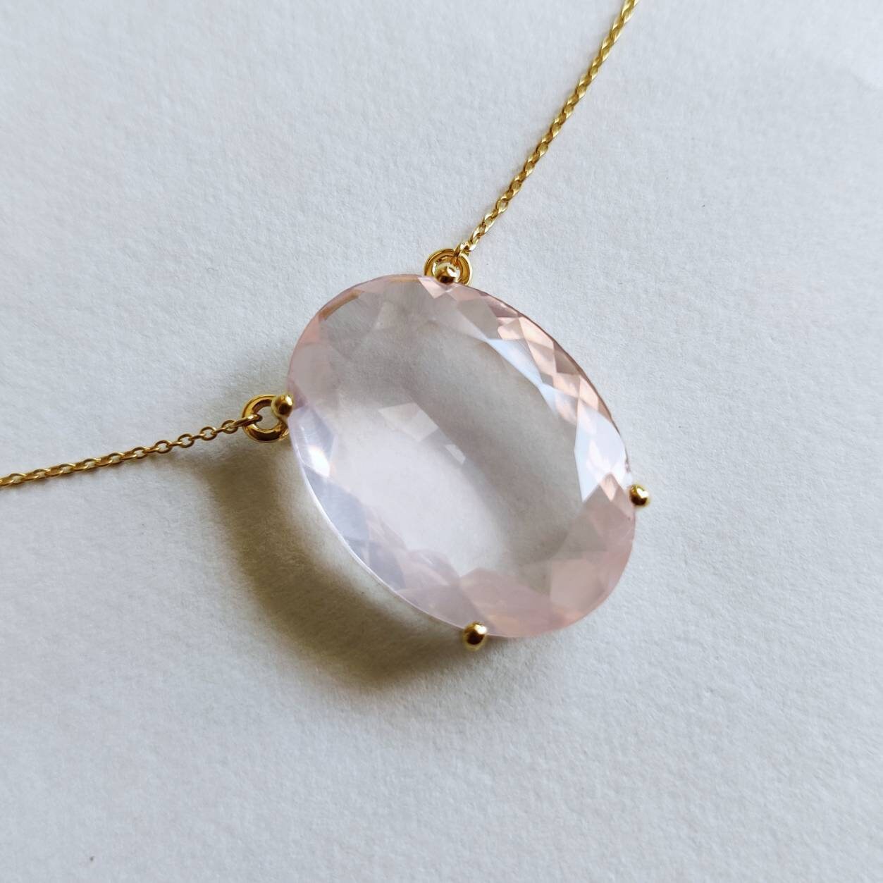 Be the first to review “Oval Cut Natural Rose Quartz Pendant Set in 14K Solid Gold Prong Setting”