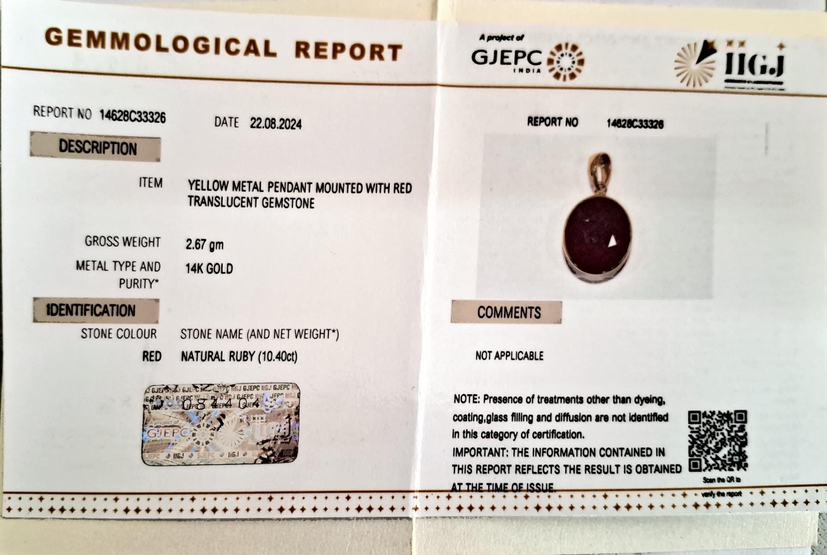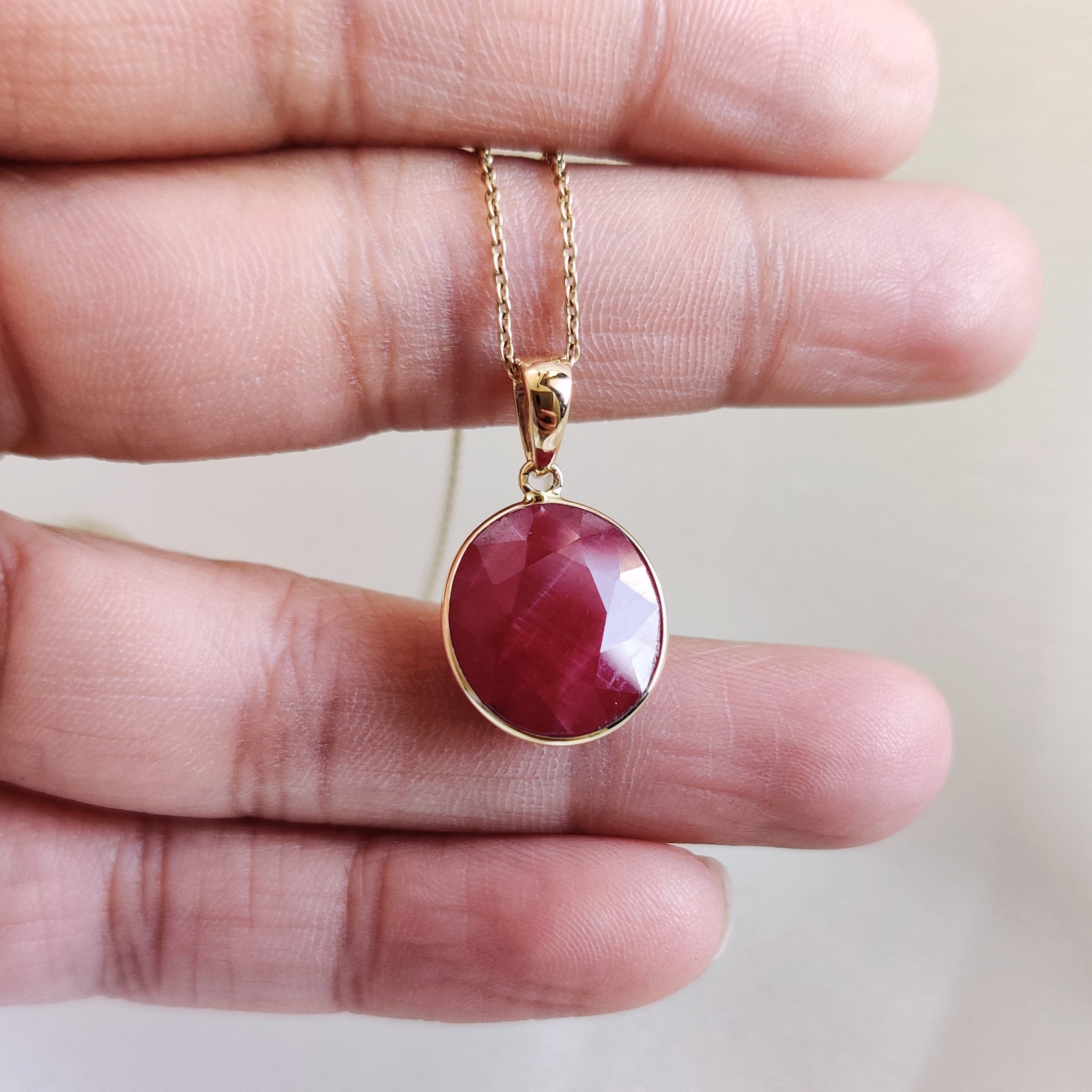 This stunning pendant is set in 14K Solid Yellow Gold with Natural Ruby with utmost precision. It is an unique gemstone pendant for nearly every occasion and is completely hassle-free jewelry.