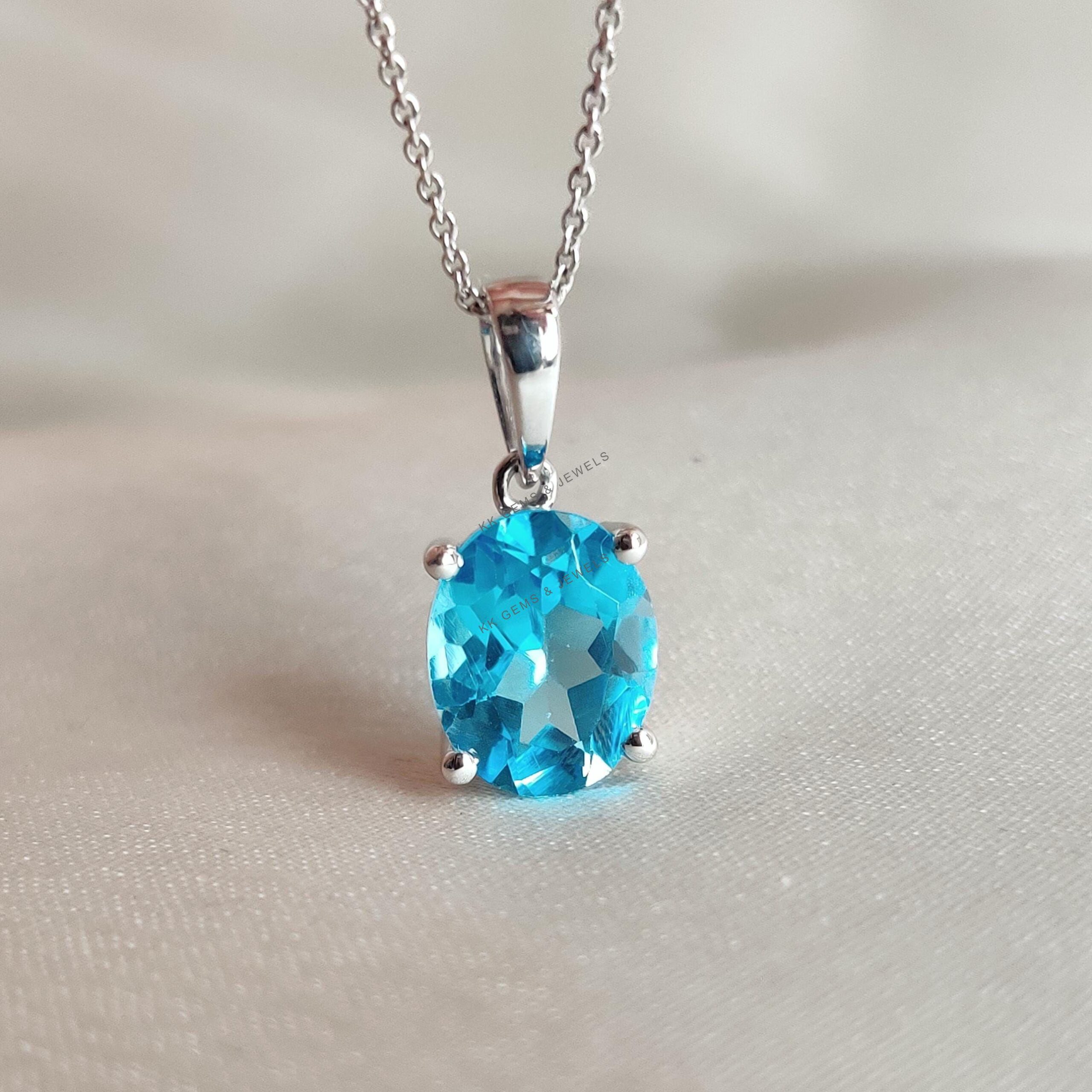 Be the first to review “Oval Cut Natural Swiss Blue Topaz Birthstone Pendant Set in 14K Solid White Gold”
