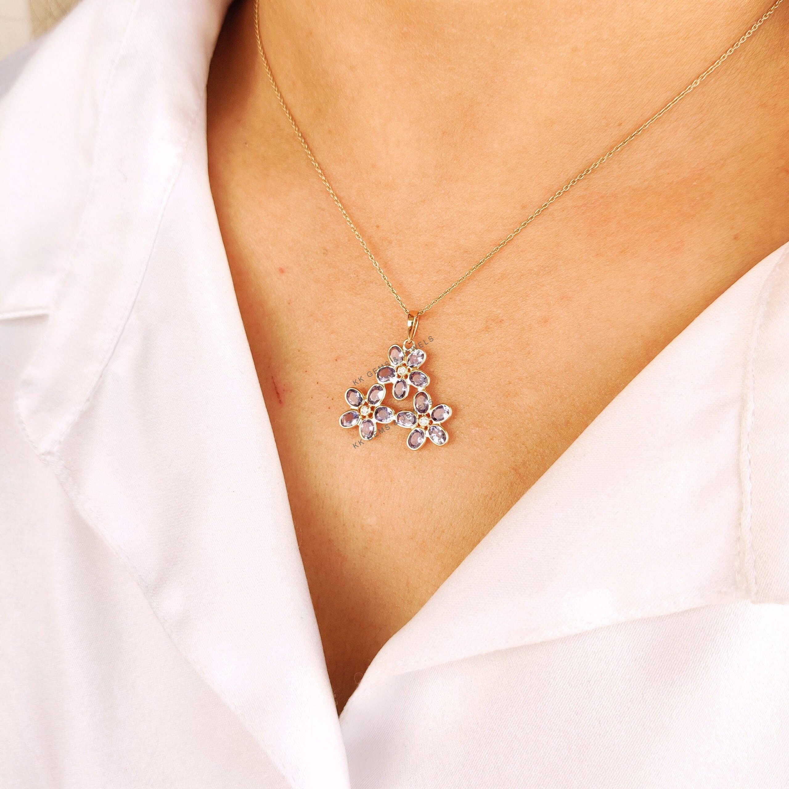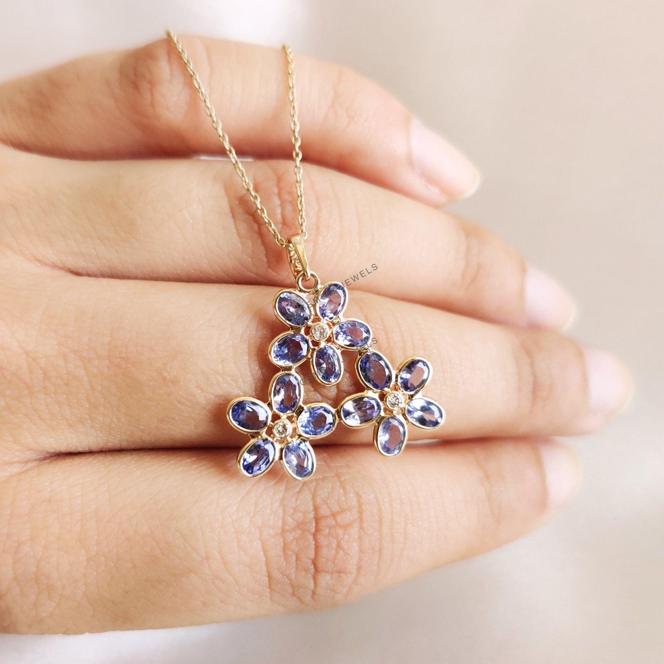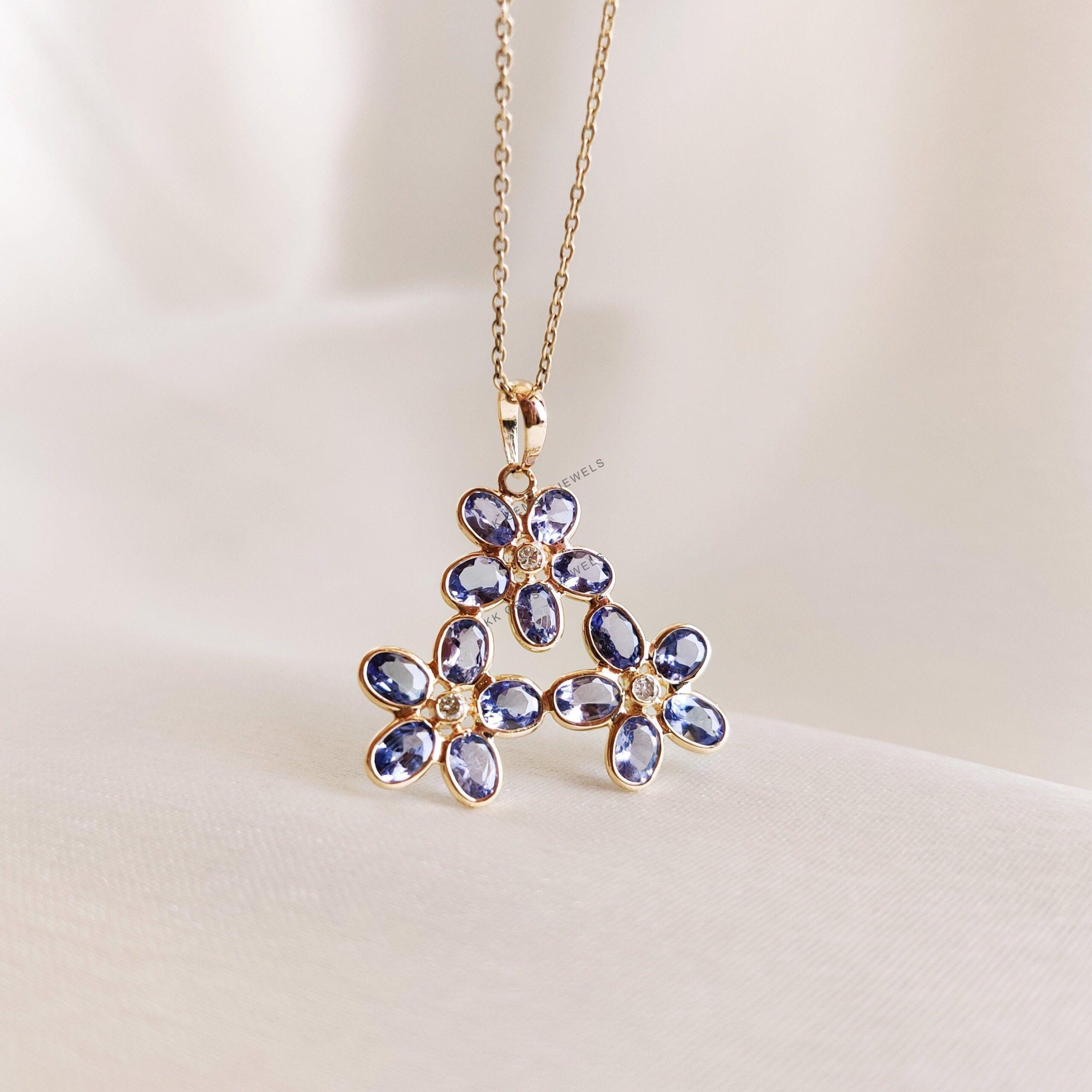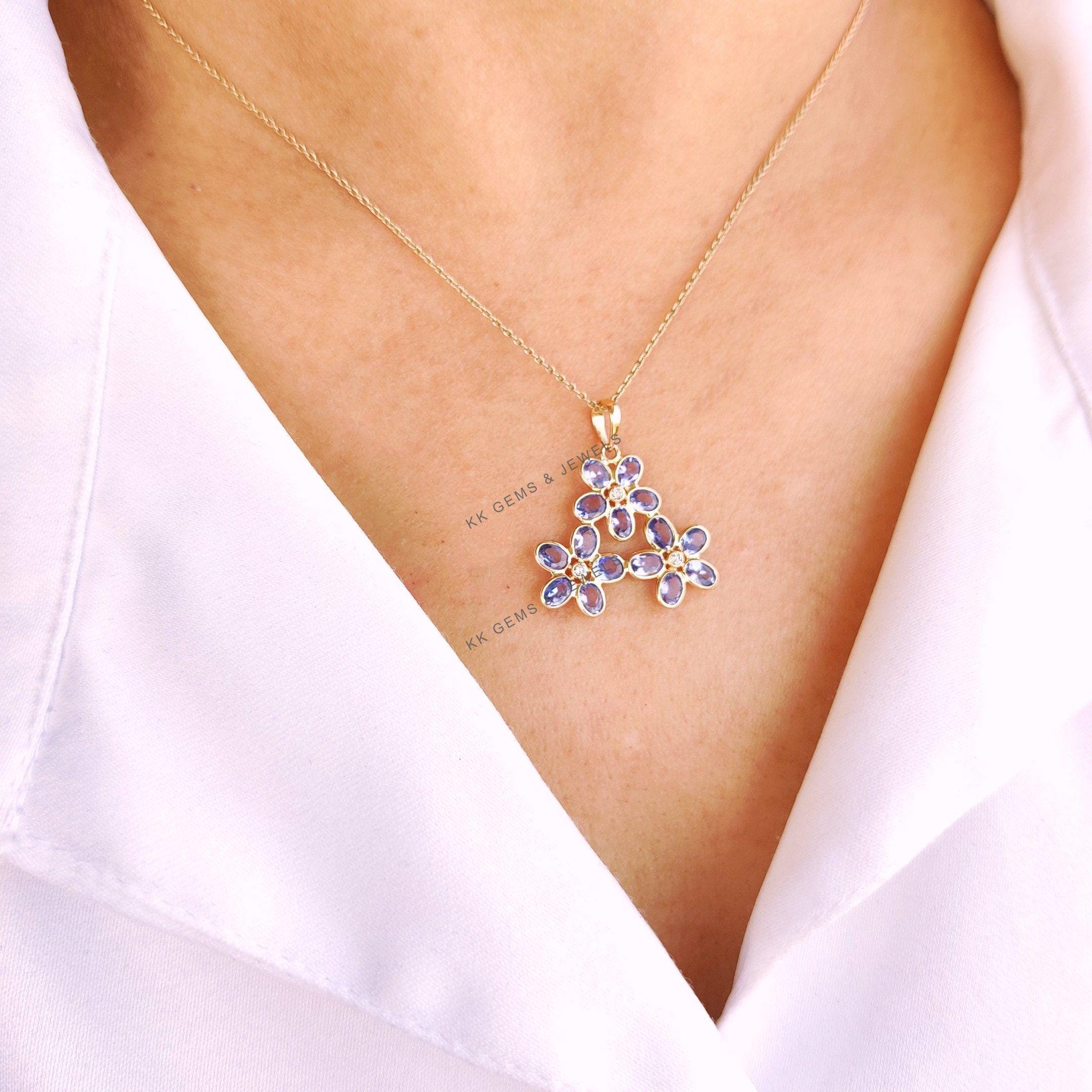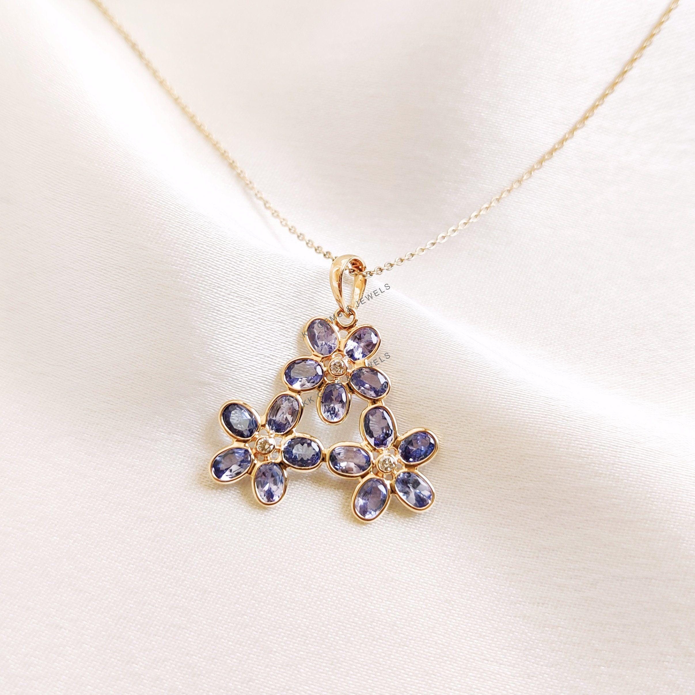 This stunning necklace is set in 14K Solid Yellow Gold with Natural Tanzanite and Diamond in utmost precision. It is an unique gemstone necklace for nearly every occasion and is completely hassle-free jewelry. ✓ ABOUT GEMSTONE Tanzanite is a mesmerizing…