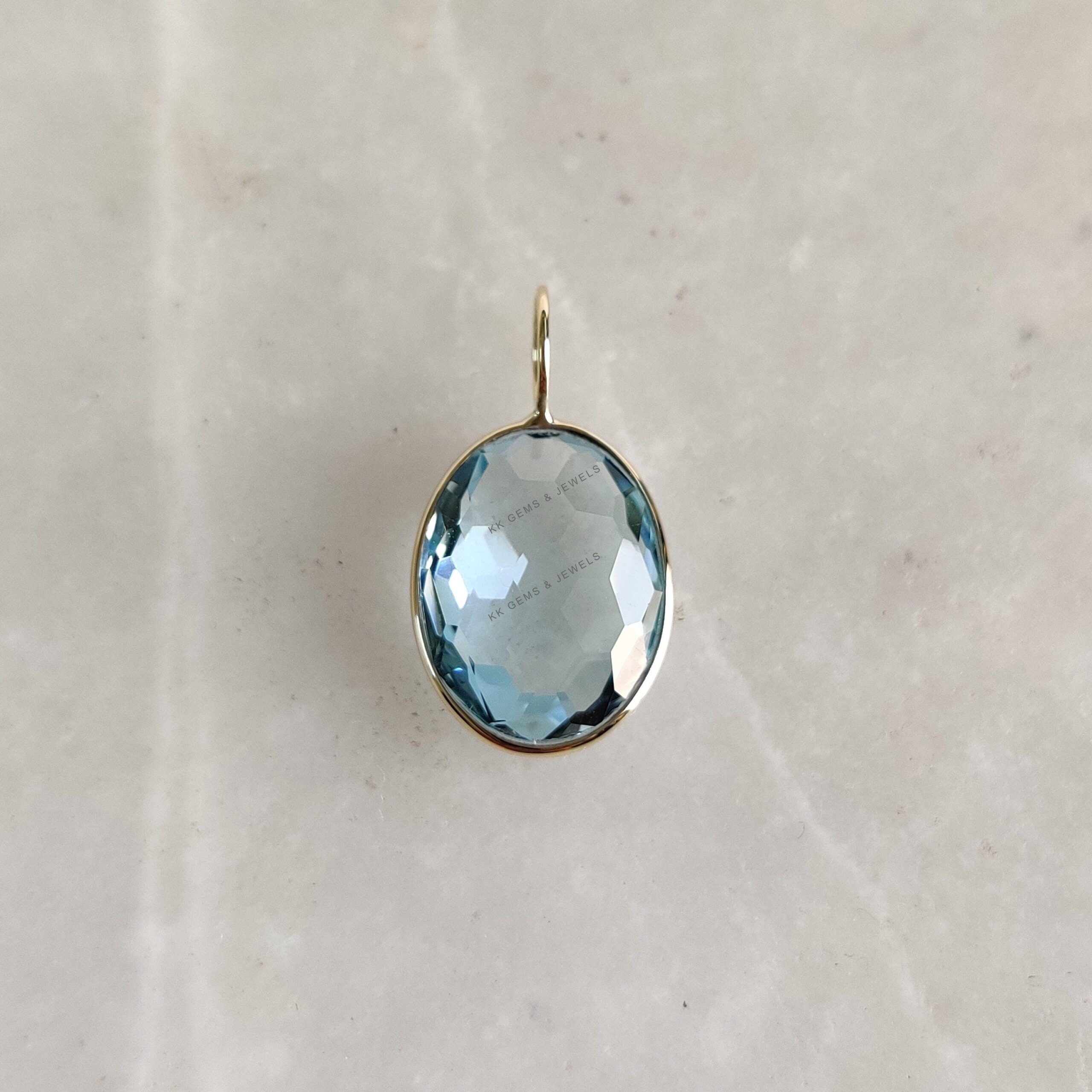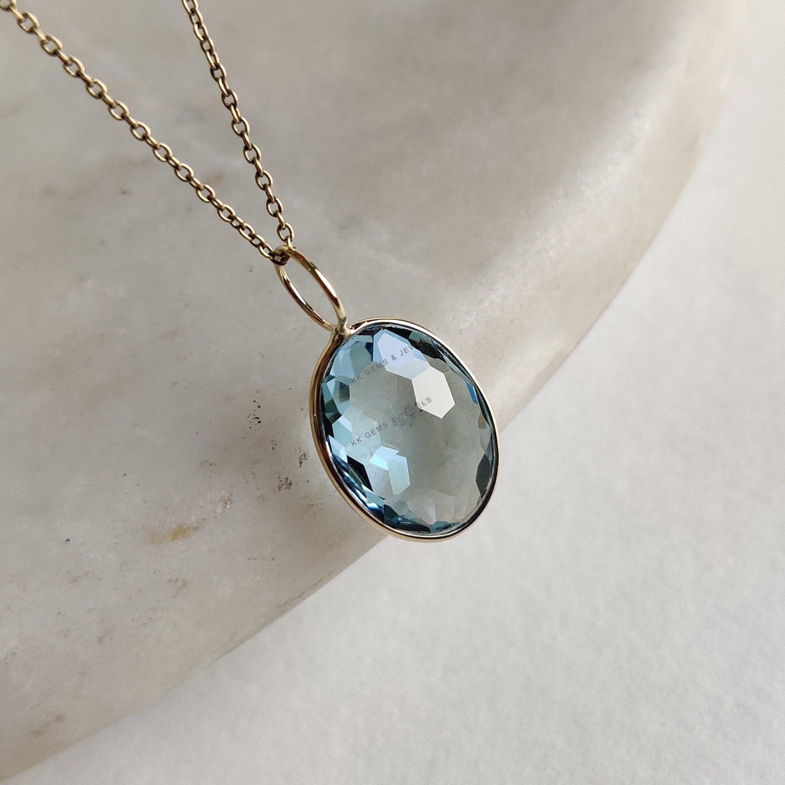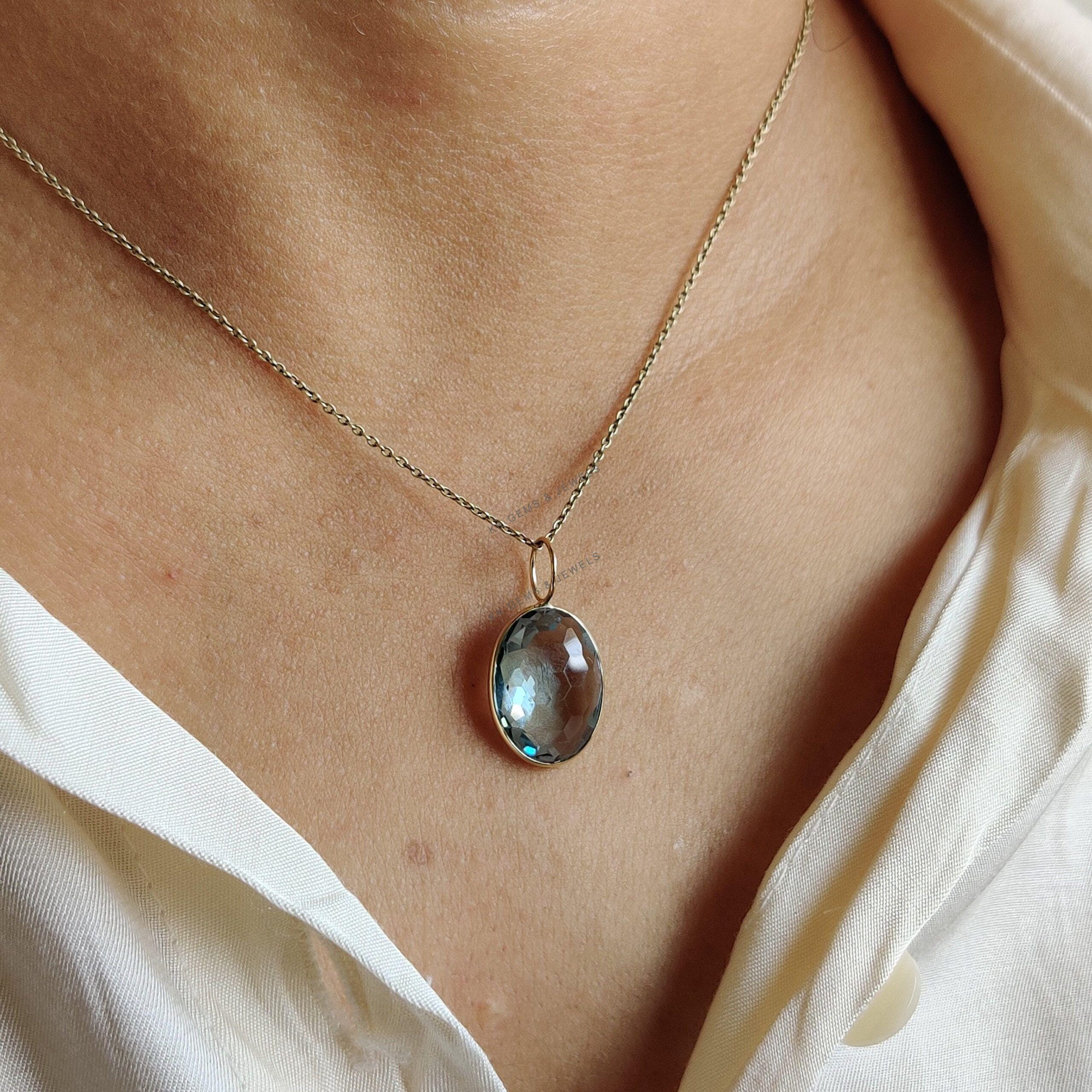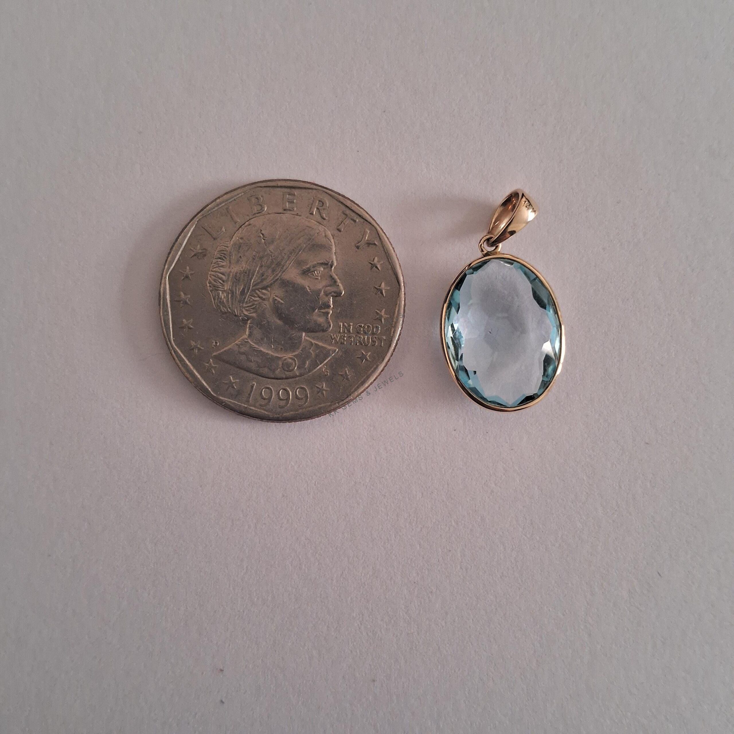 1 review for Oval Shape Natural Sky Blue Topaz Pendant set in 14K Solid Yellow Gold Bezel