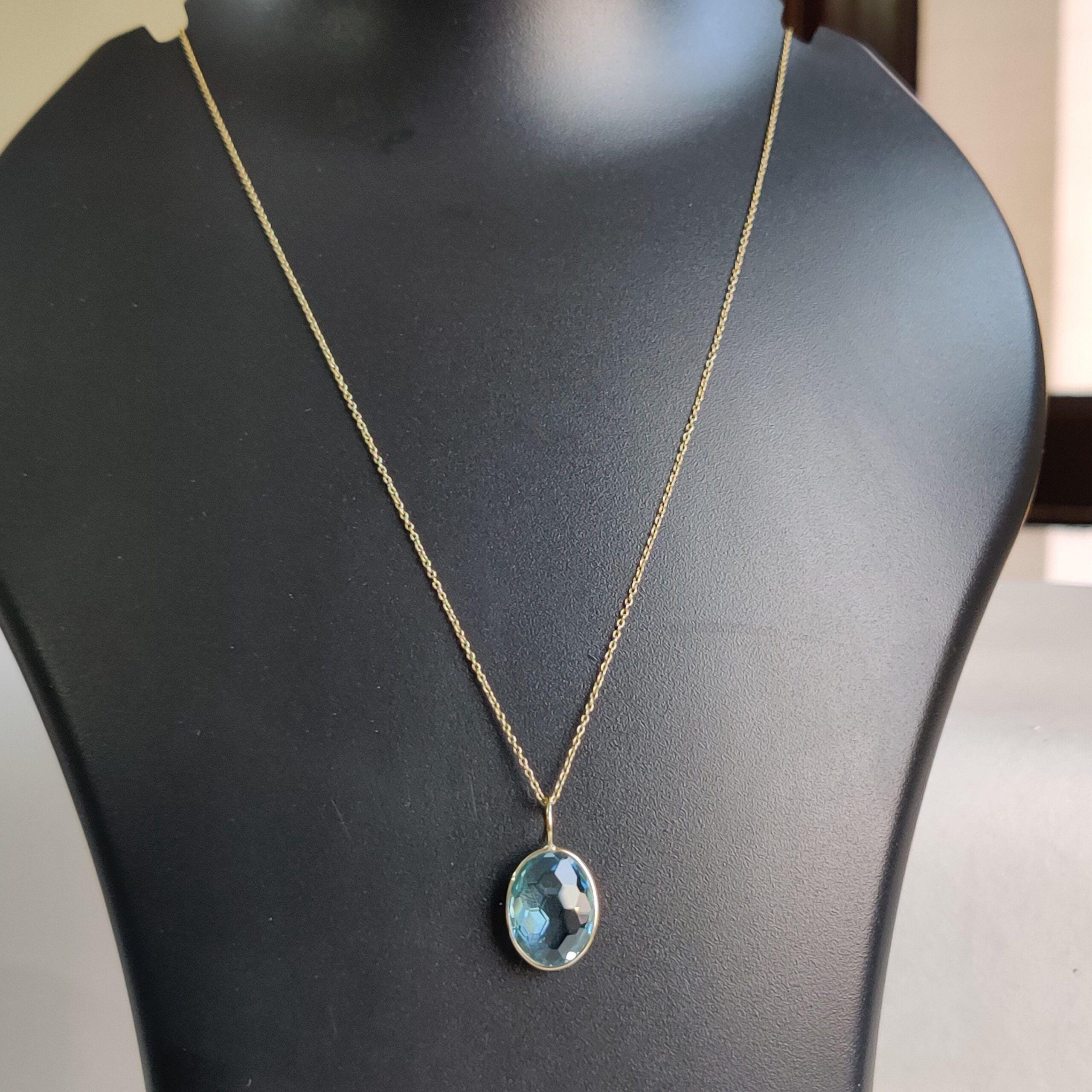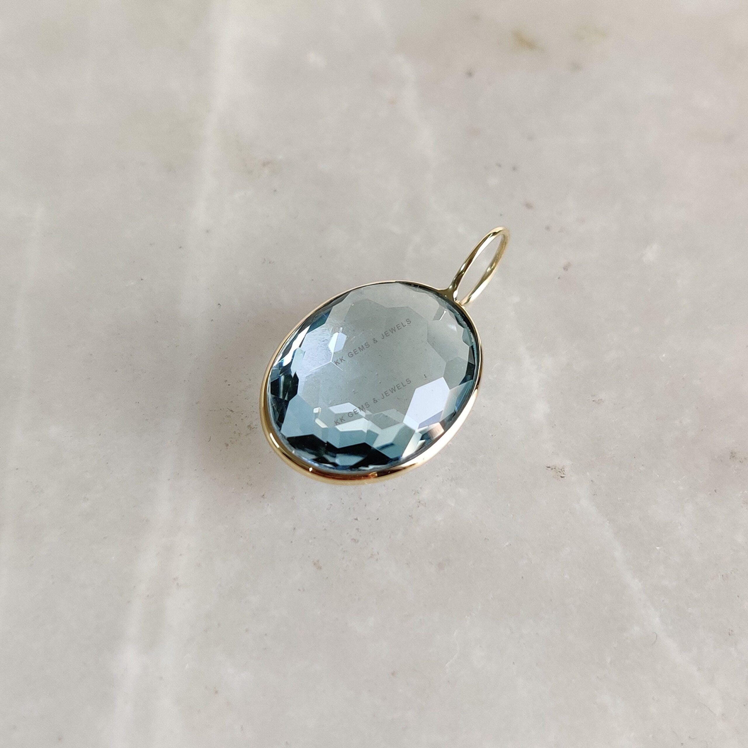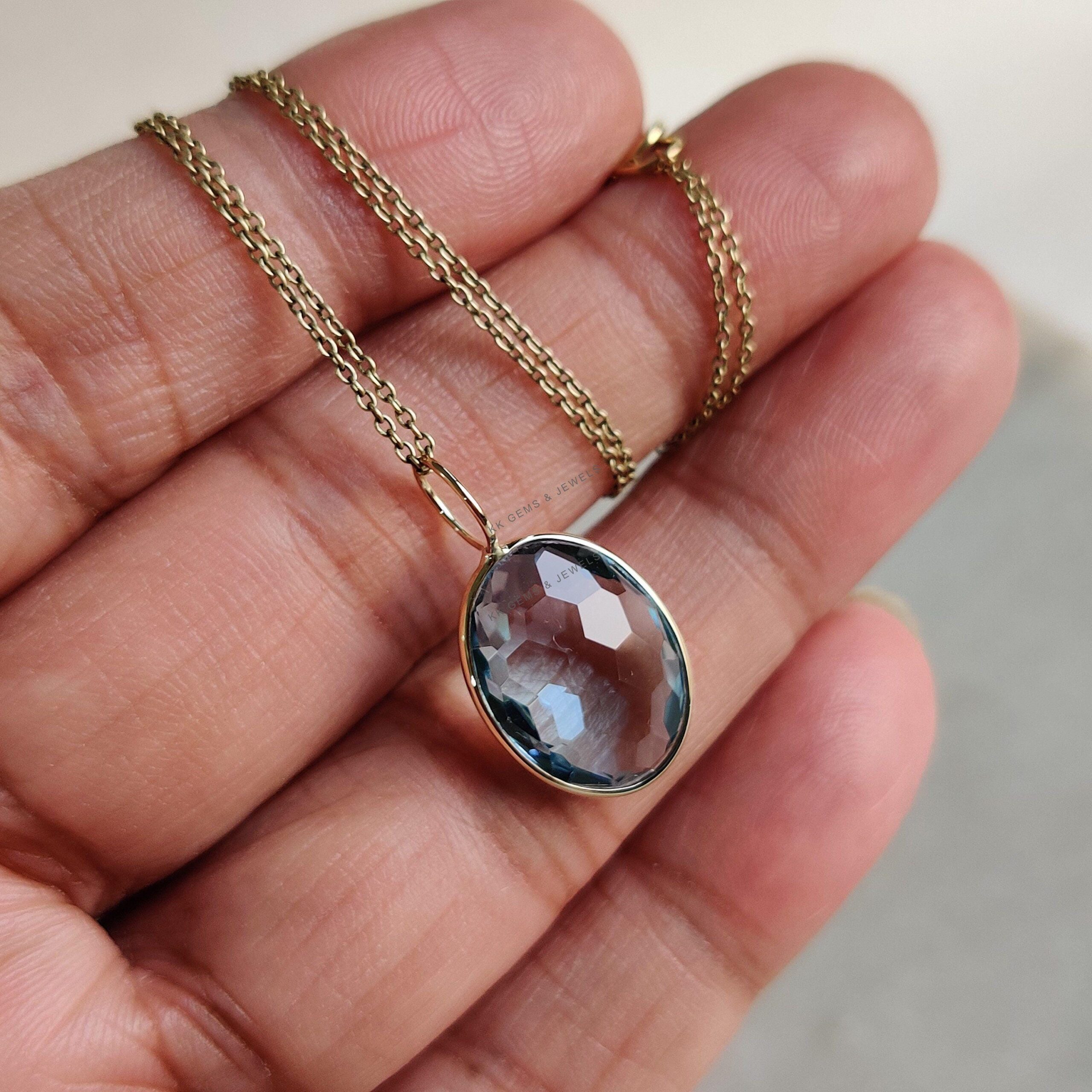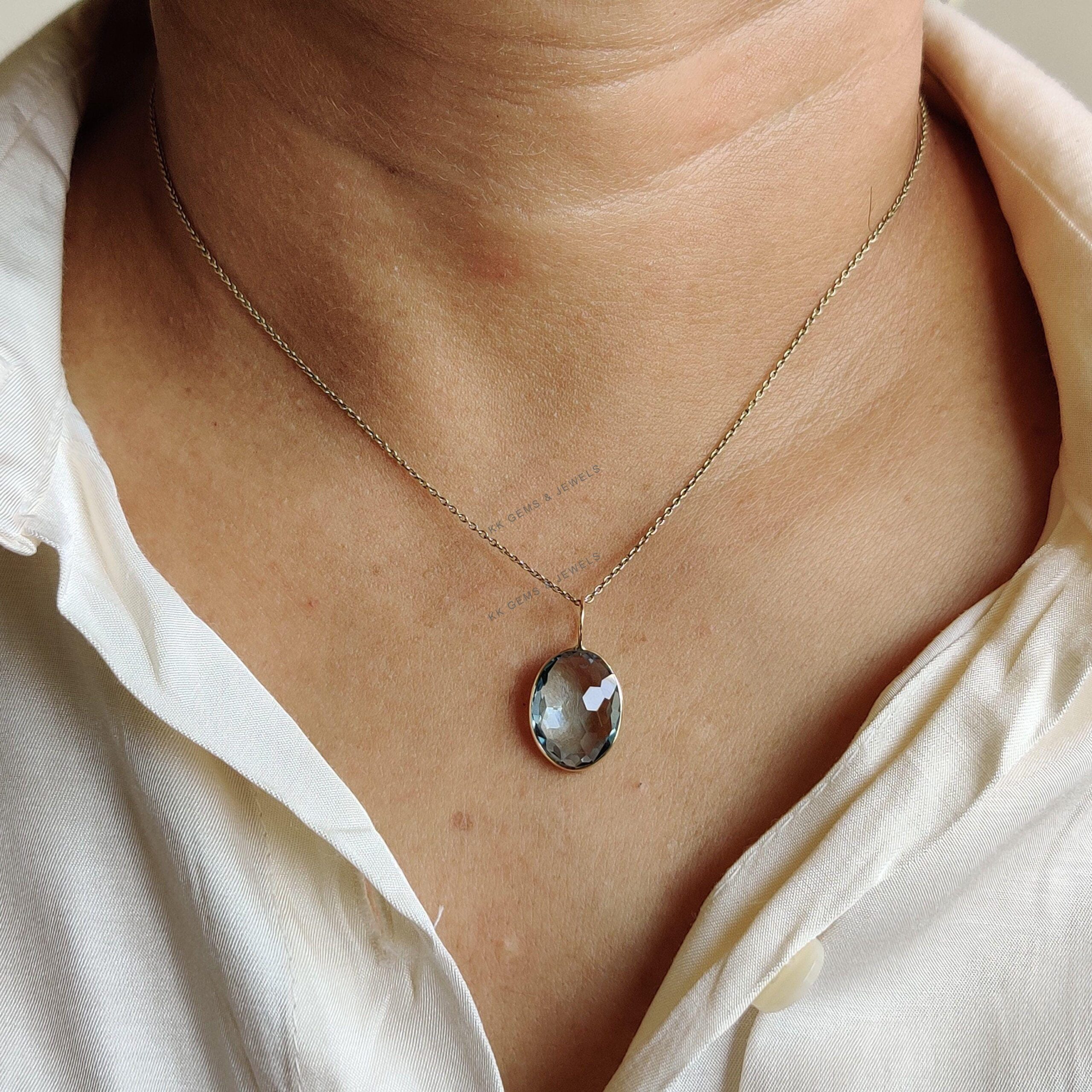 1 review for Oval Shape Natural Sky Blue Topaz Pendant set in 14K Solid Yellow Gold Bezel