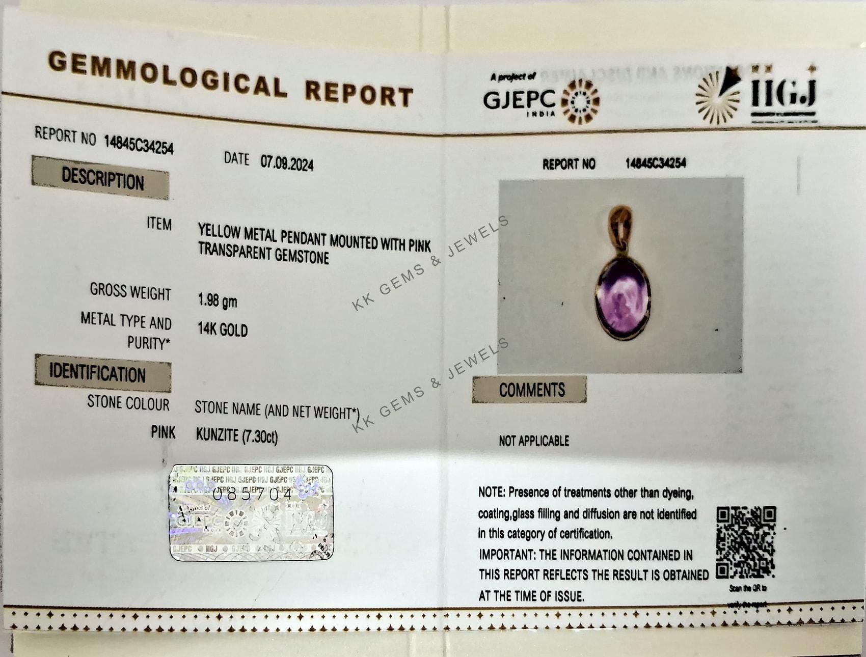 This stunning pendant is set in 14K Solid Yellow Gold with Natural Kunzite with utmost precision. It is an unique gemstone pendant for nearly every occasion and is completely hassle-free jewelry.