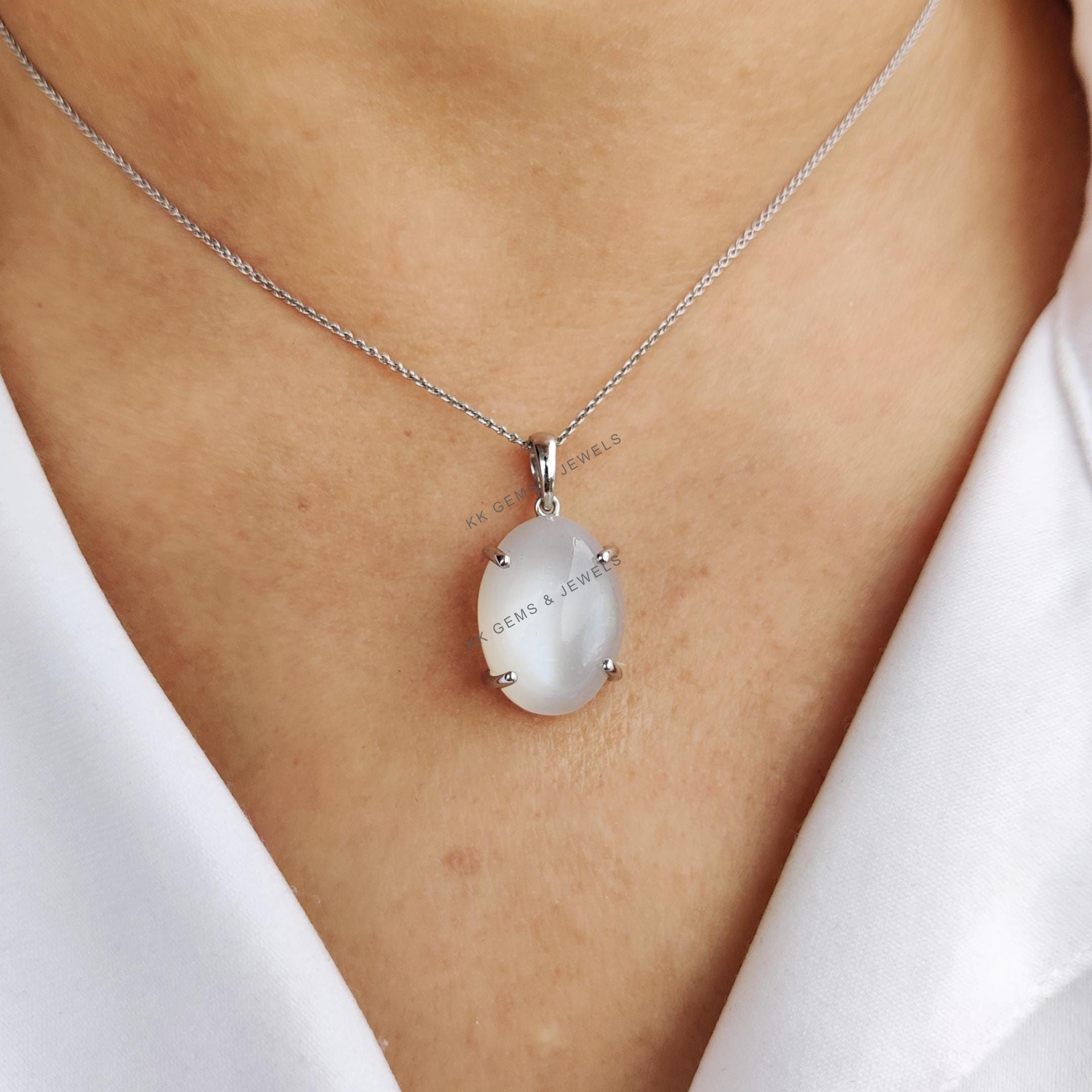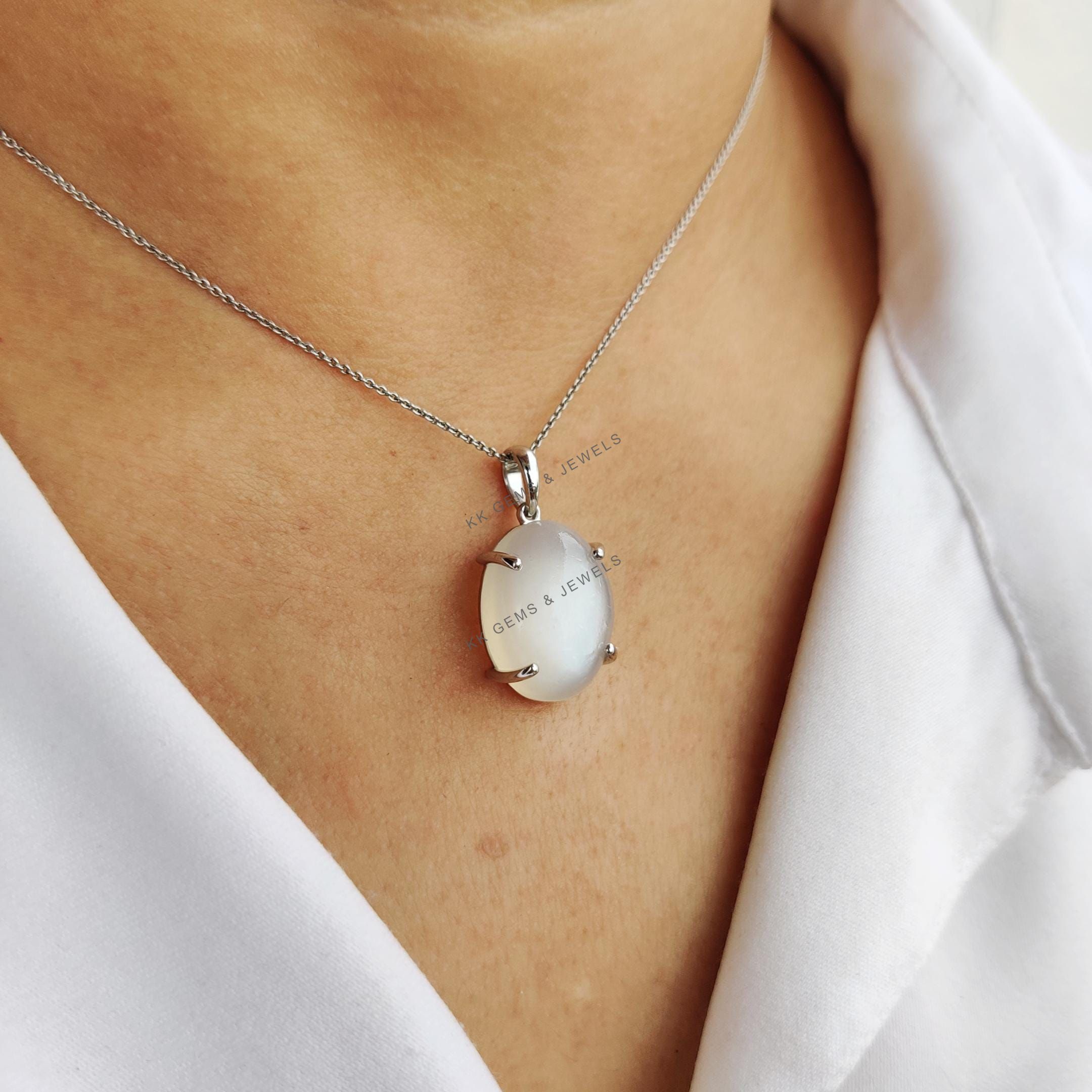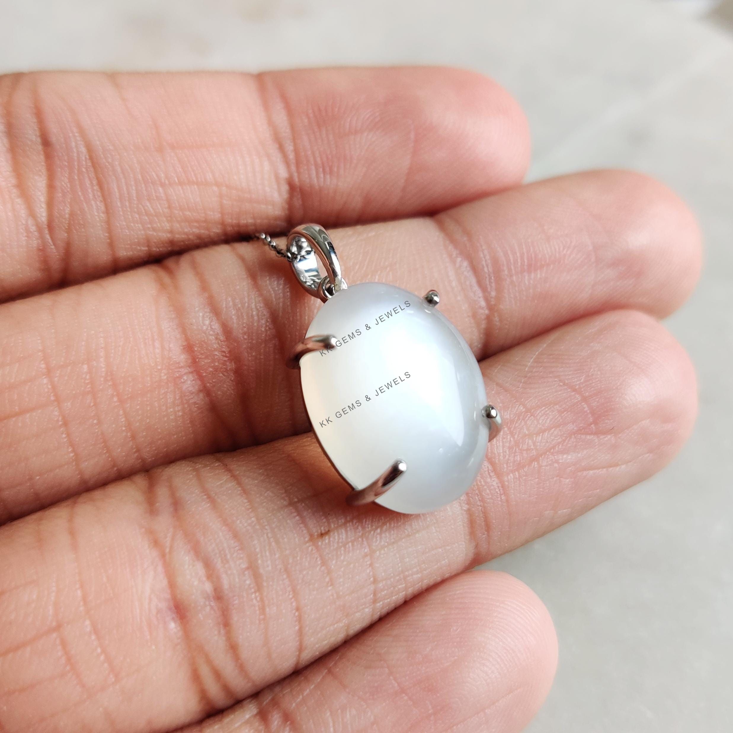 This stunning pendant is set in 14k Solid White Gold with Natural White Moonstone with utmost precision. It is an unique gemstone pendant for nearly every occasion and is completely hassle-free jewelry. ✓ ABOUT GEMSTONE: White moonstone, with its milky…