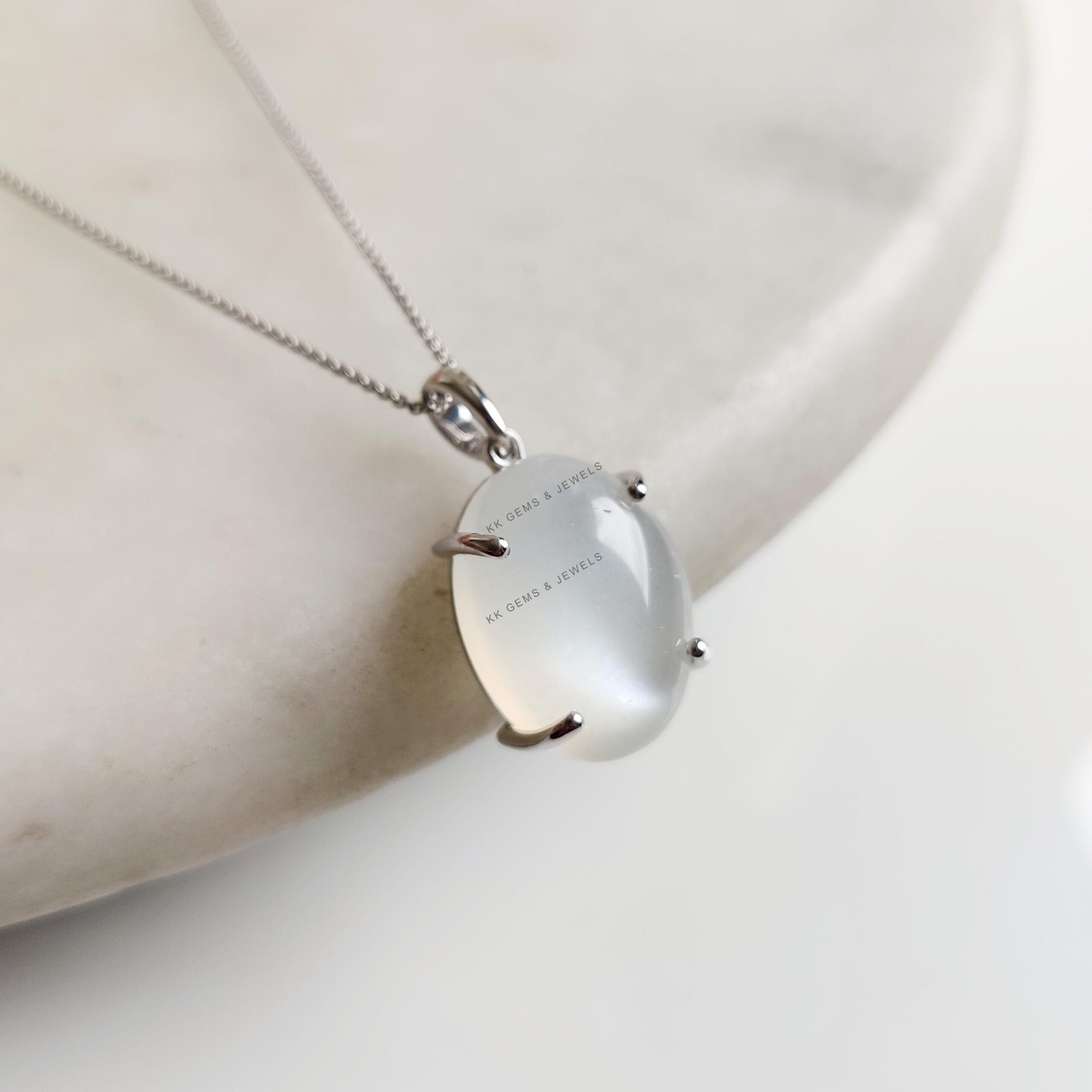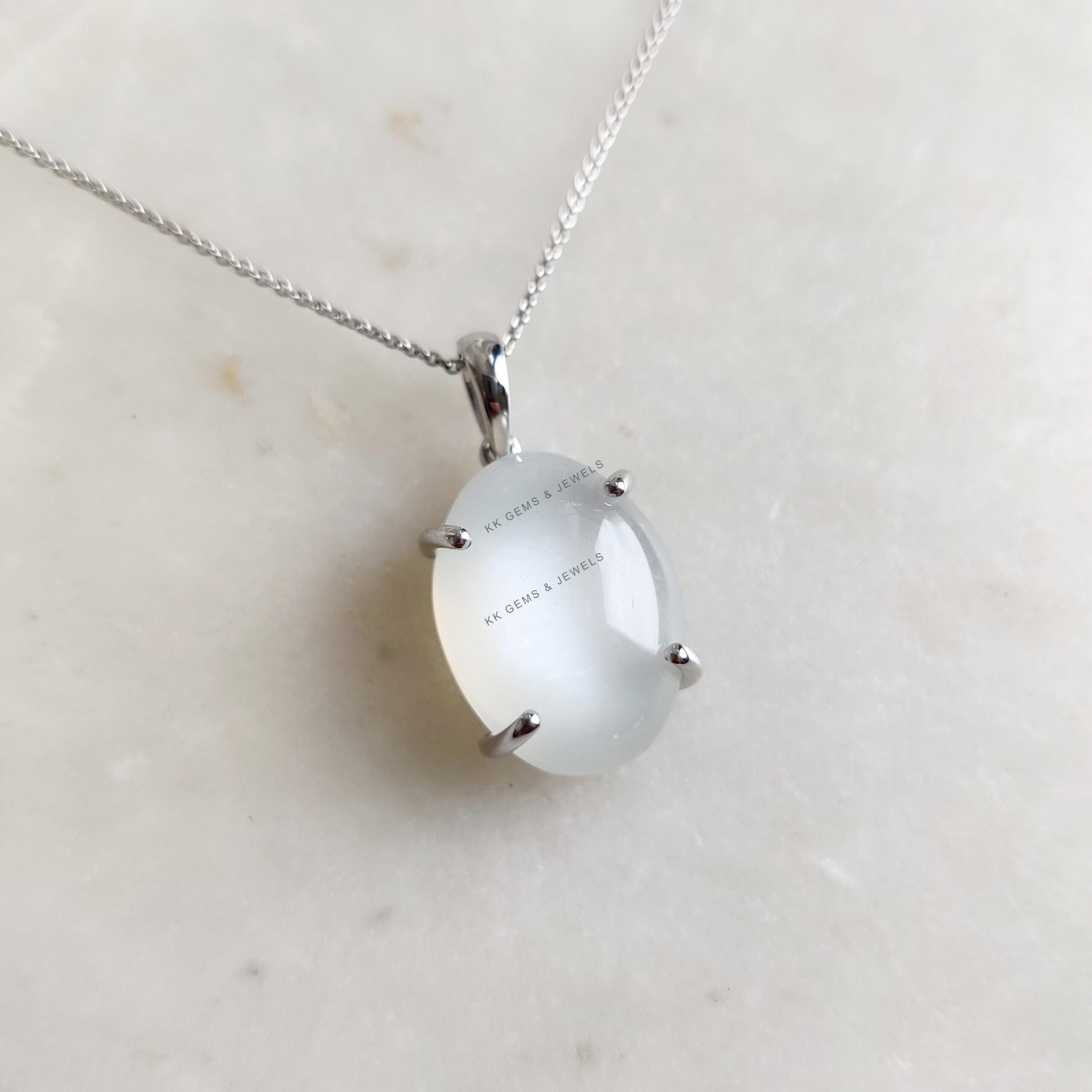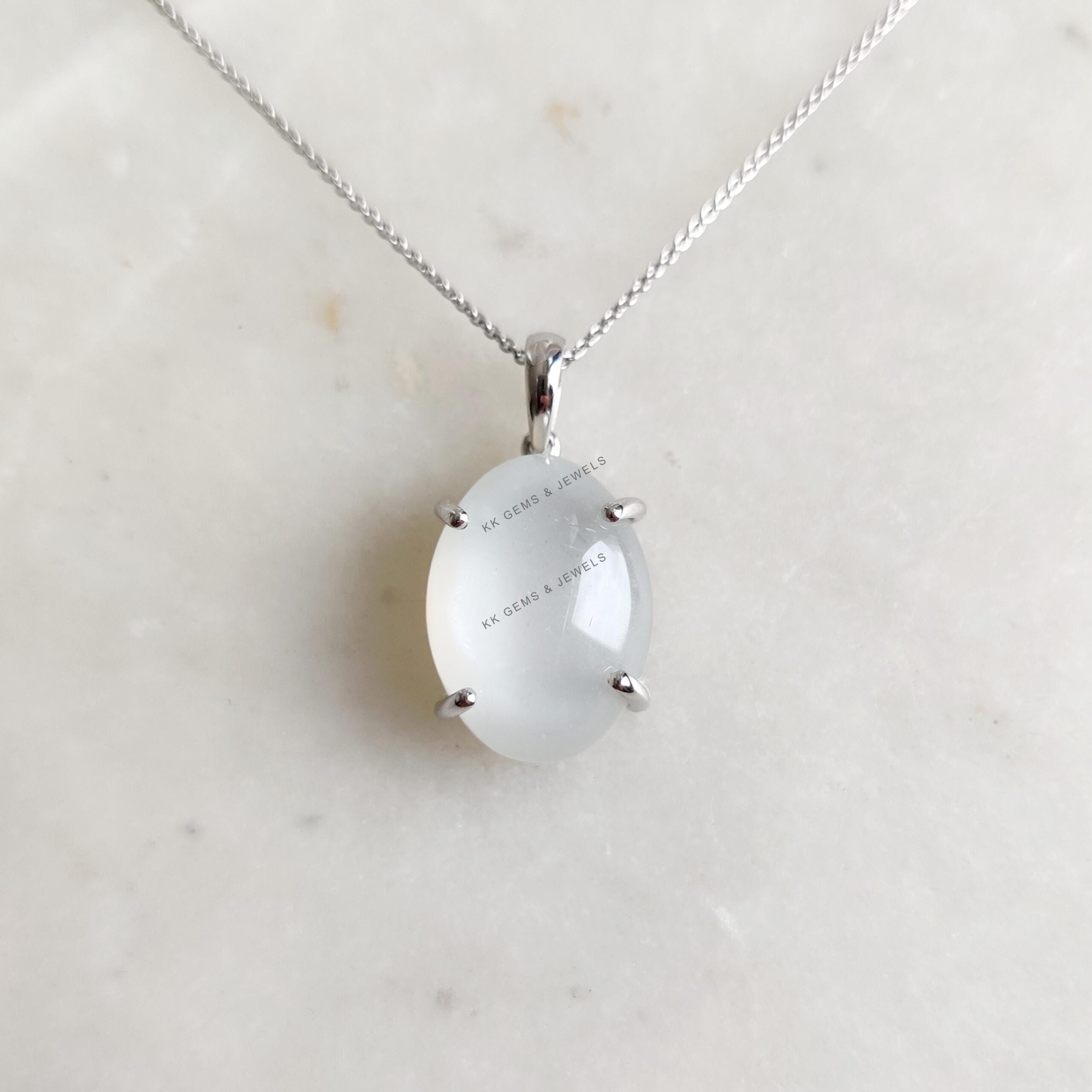 This stunning pendant is set in 14k Solid White Gold with Natural White Moonstone with utmost precision. It is an unique gemstone pendant for nearly every occasion and is completely hassle-free jewelry. ✓ ABOUT GEMSTONE: White moonstone, with its milky…