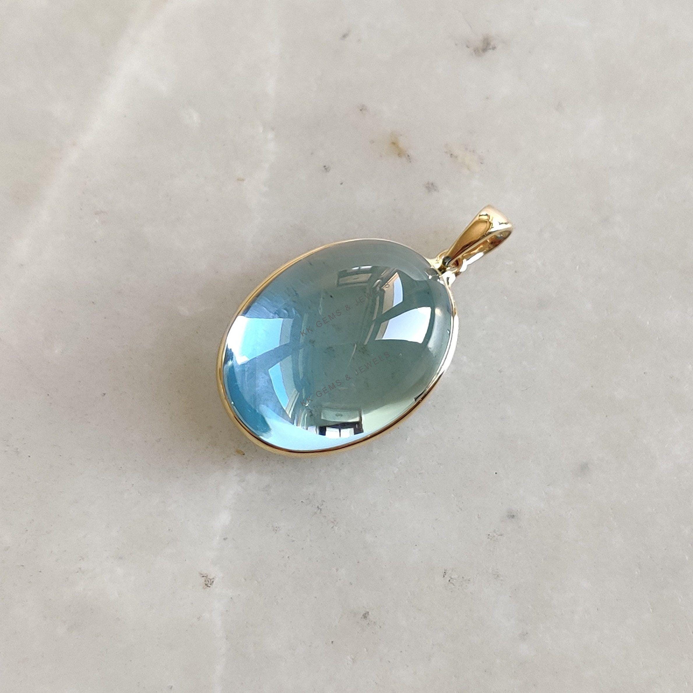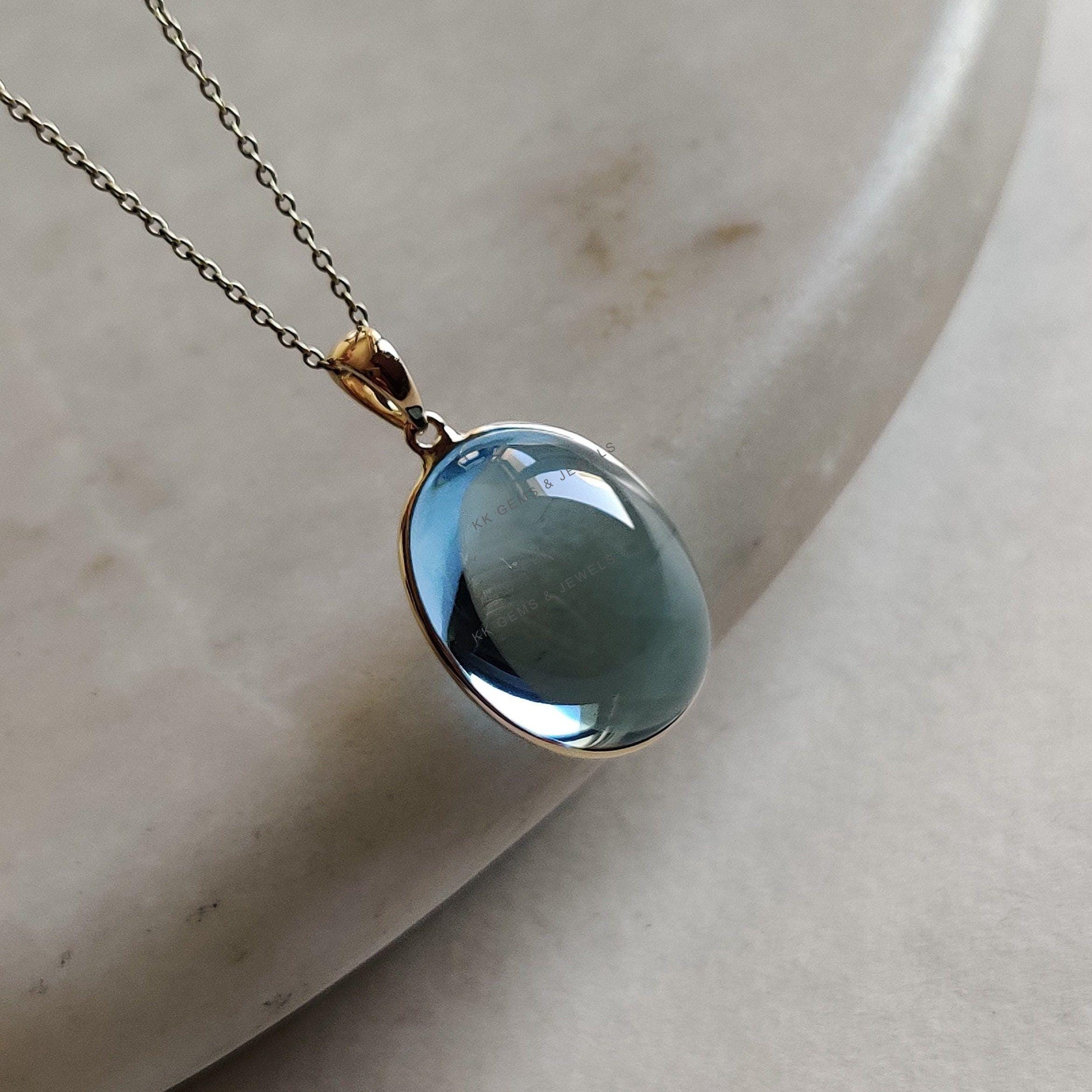 1 review for Oval Natural Sky Blue Topaz Birthstone Pendant Set in 14K Solid Gold