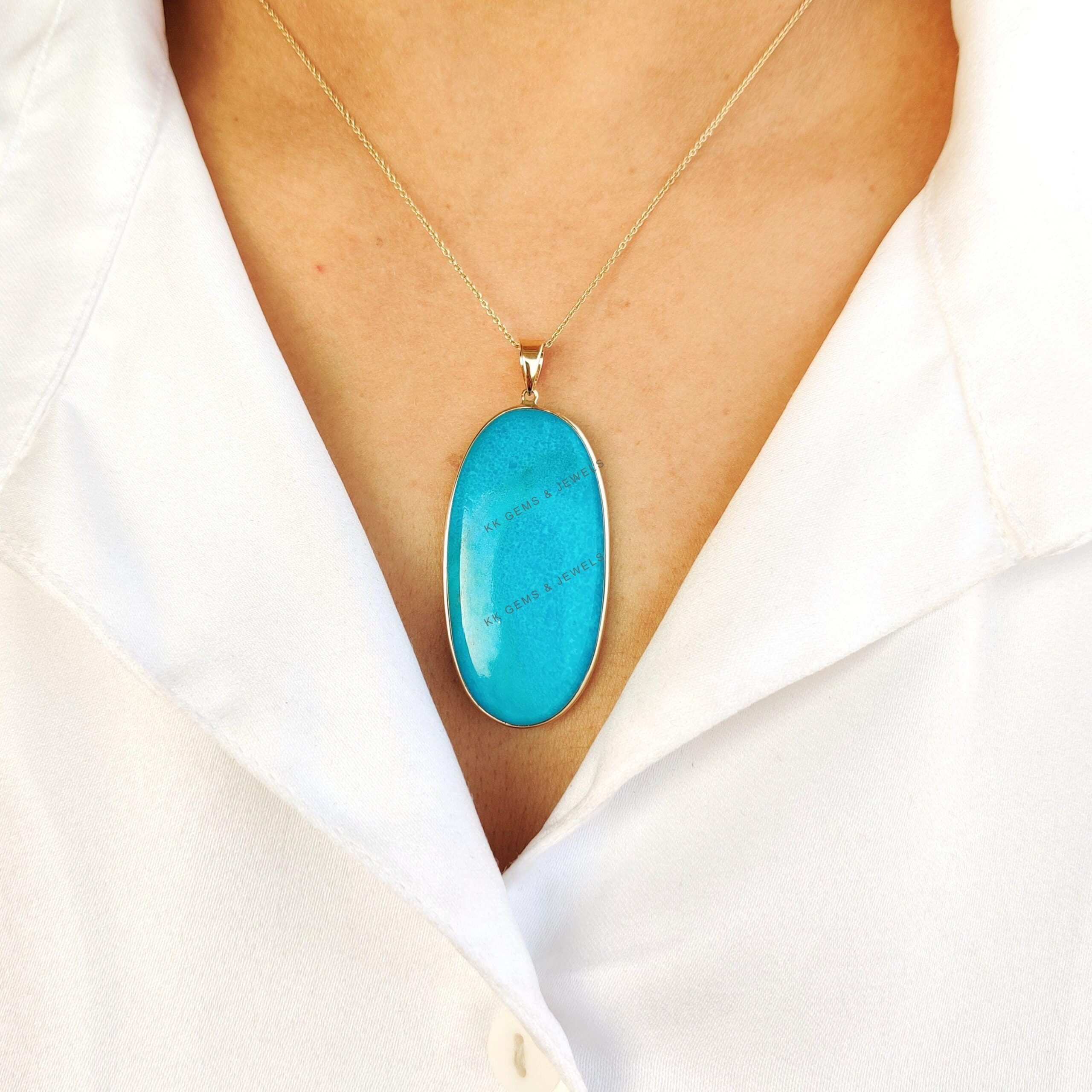 This stunning pendant is set in 14K Solid Yellow Gold with Natural Sleeping Beauty Arizona Turquoise with utmost precision. It is an unique gemstone pendant for nearly every occasion and is completely hassle-free jewelry. ✓ ABOUT GEMSTONE: Turquoise is a…