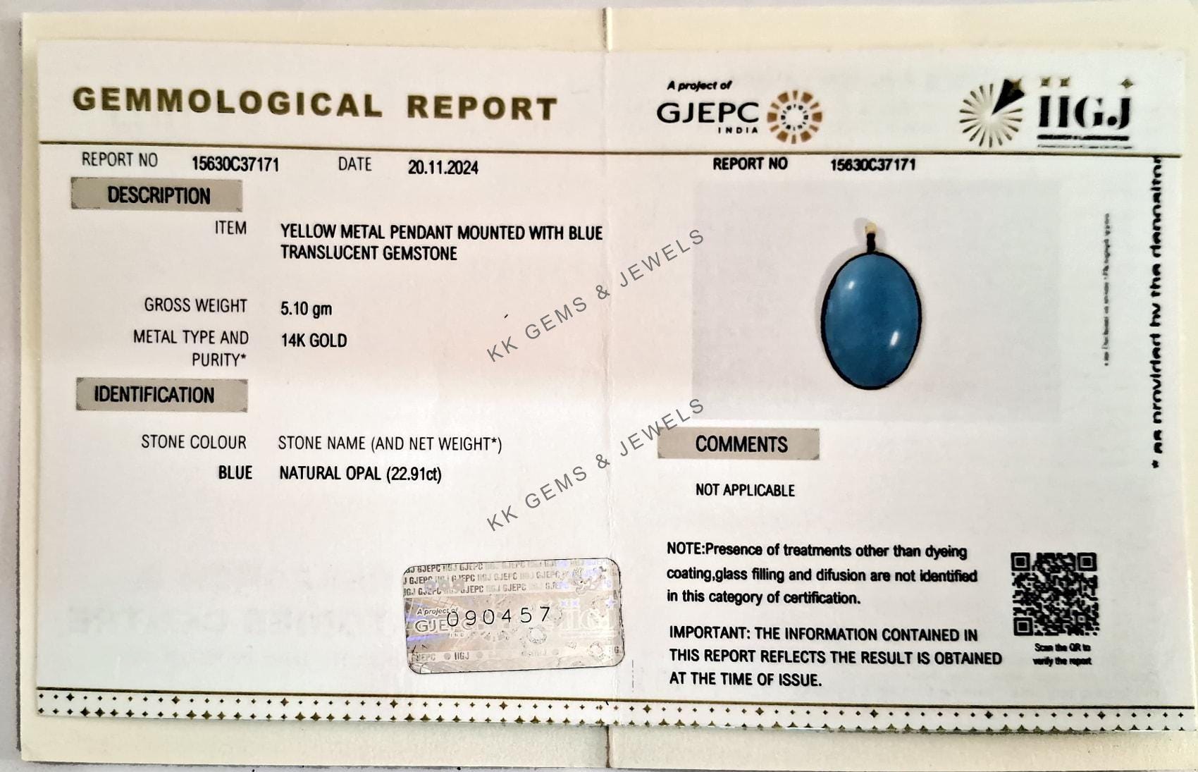This stunning pendant is set in 14K Solid Yellow Gold with Natural Blue Opal with utmost precision. It is an unique gemstone pendant for nearly every occasion and is completely hassle-free jewelry.