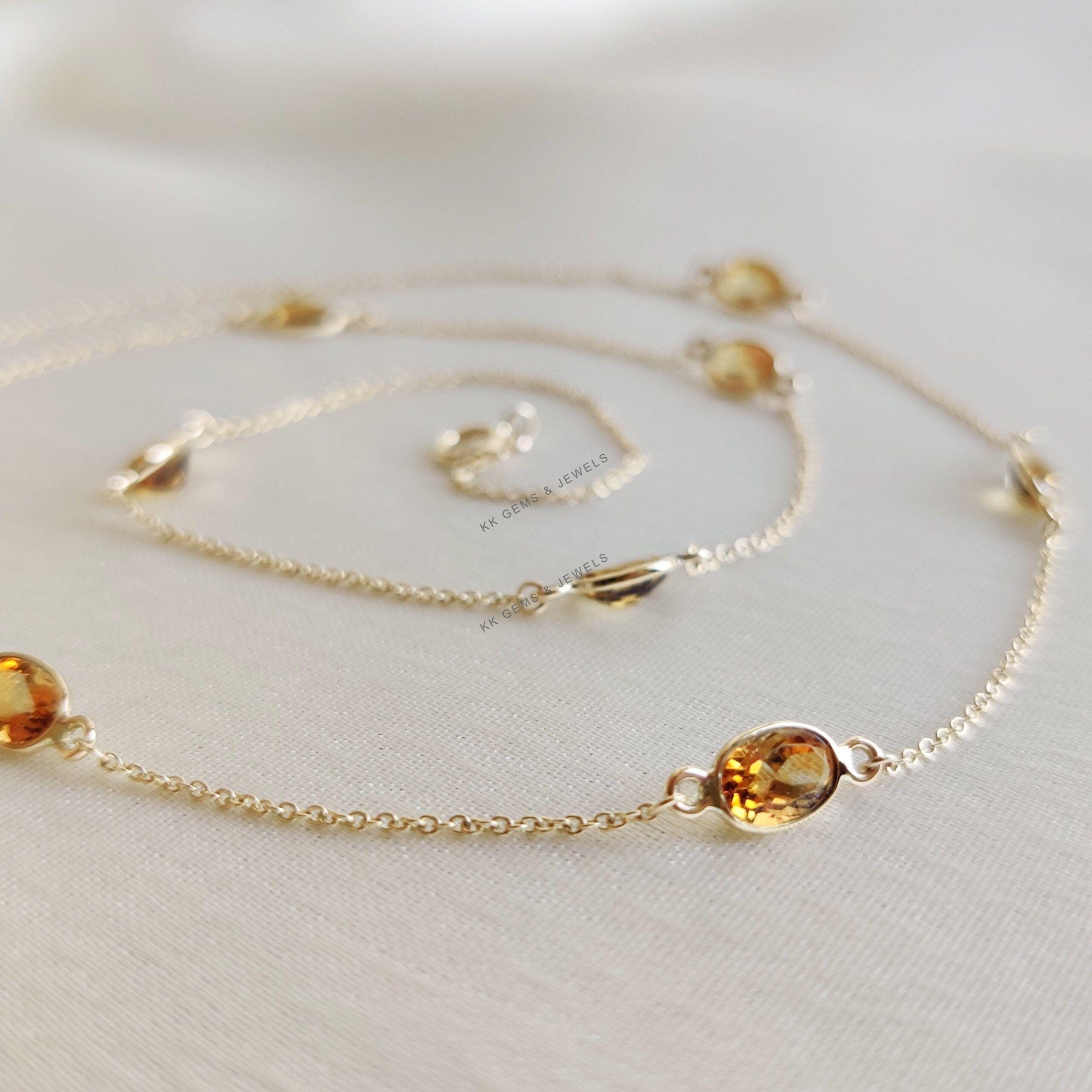 2 reviews for Oval Shape Natural Citrine Necklace set in 14K Gold, November Birthstone Jewelry