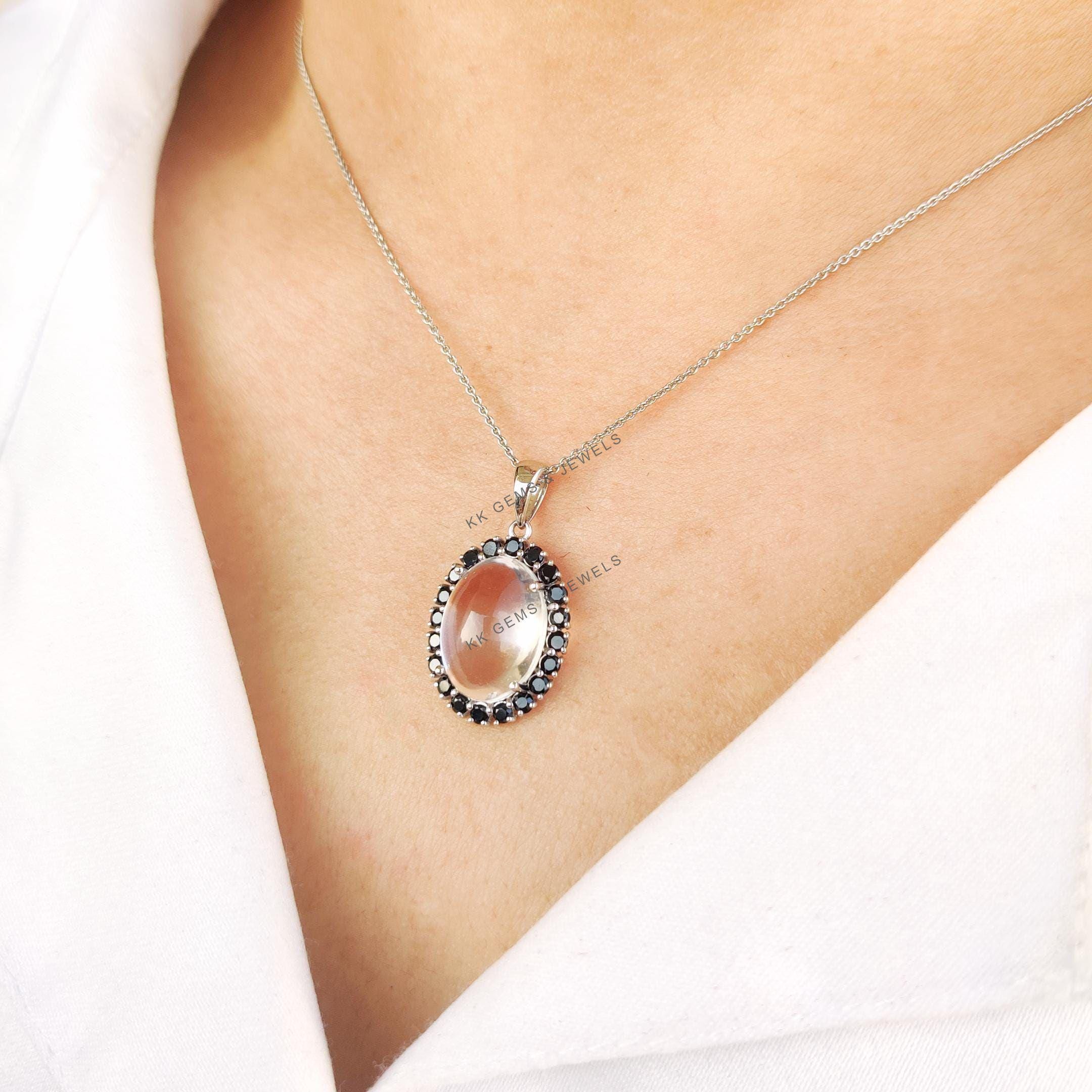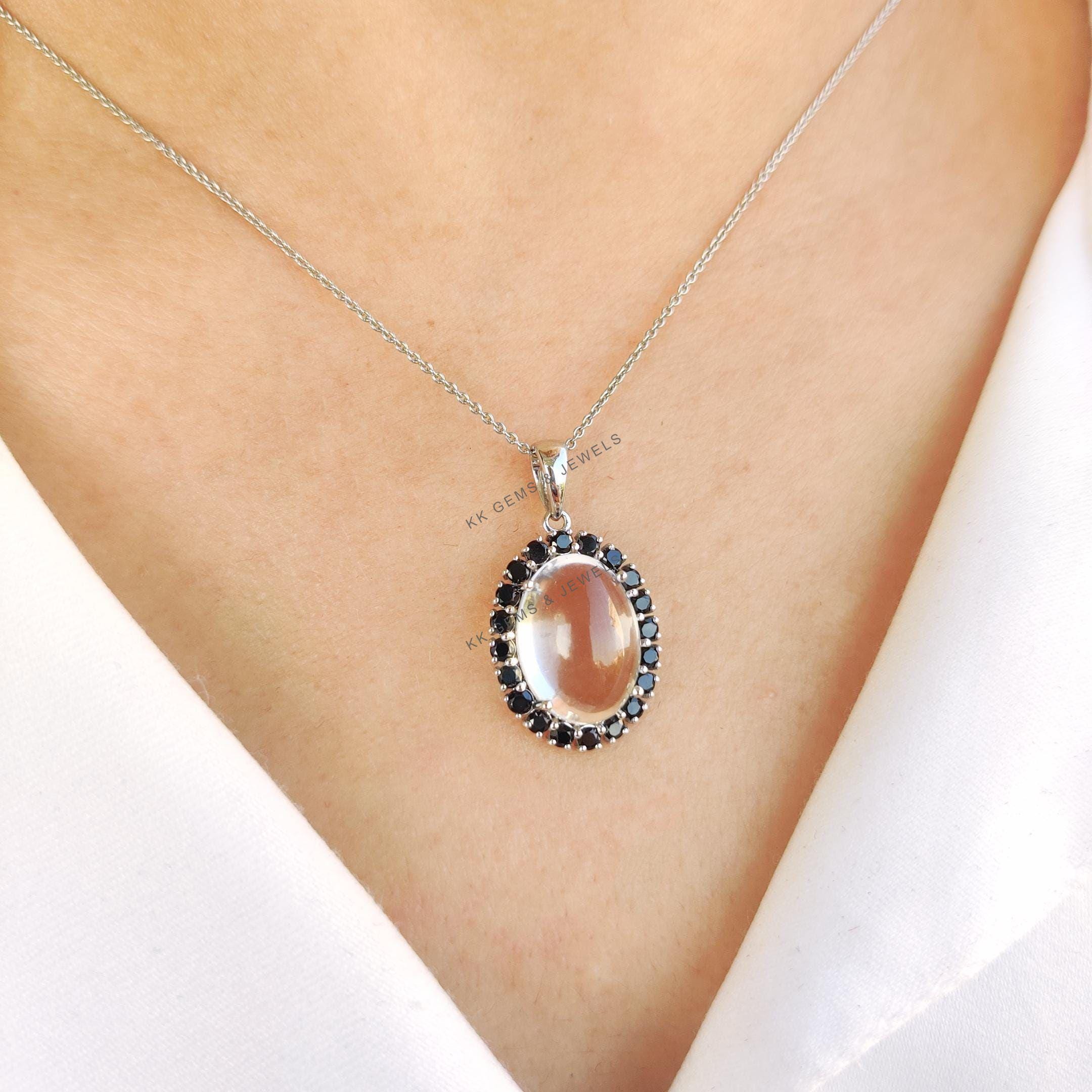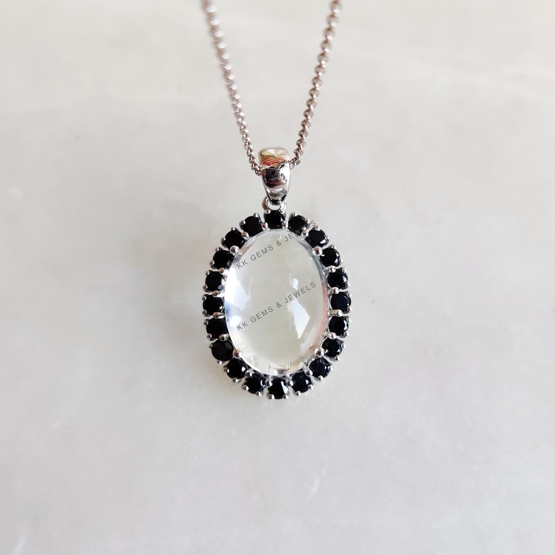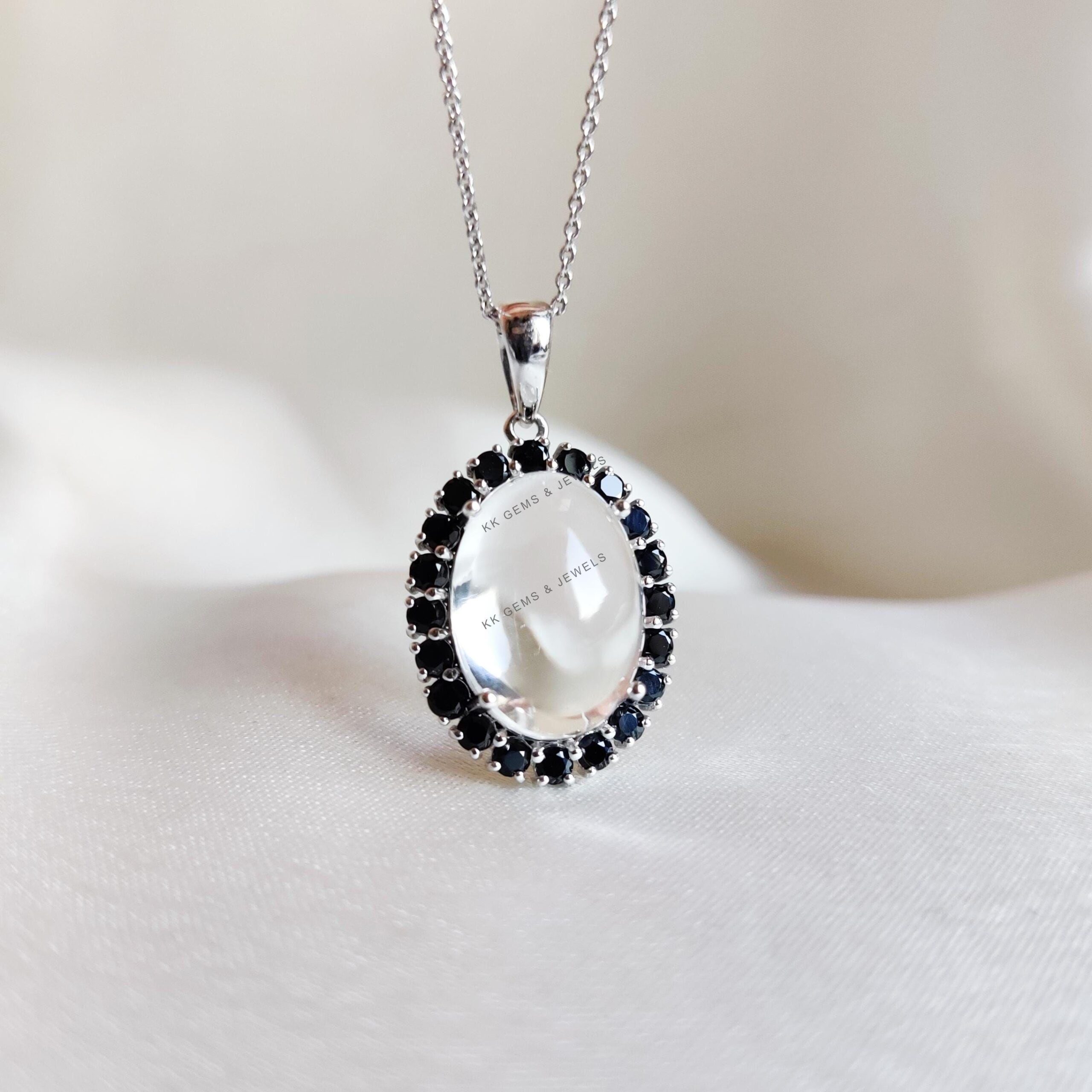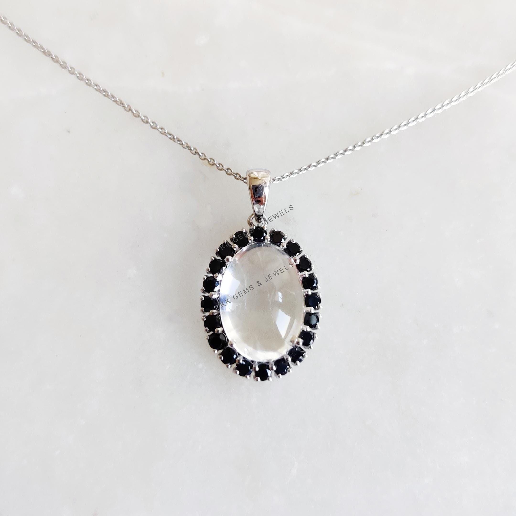 This stunning pendant is set in 14k Solid White Gold with Natural Clear Quartz & Black Spinel with utmost precision. It is an unique gemstone pendant for nearly every occasion and is completely hassle-free jewelry.