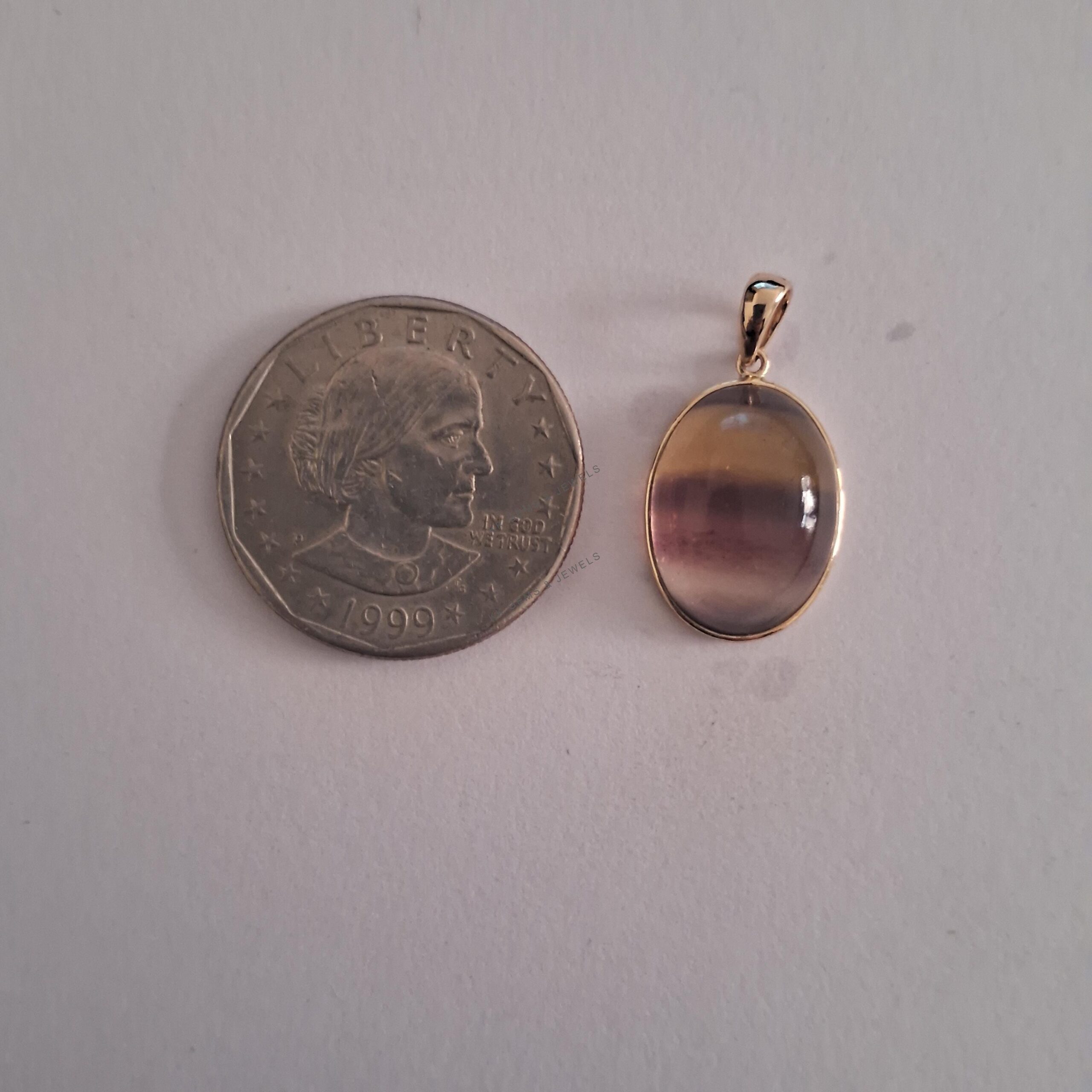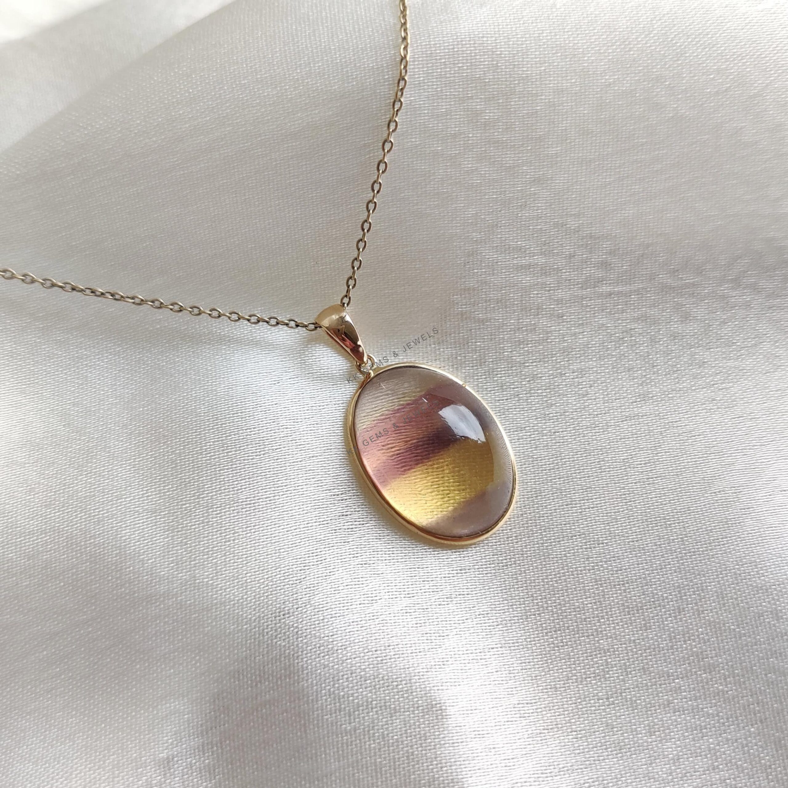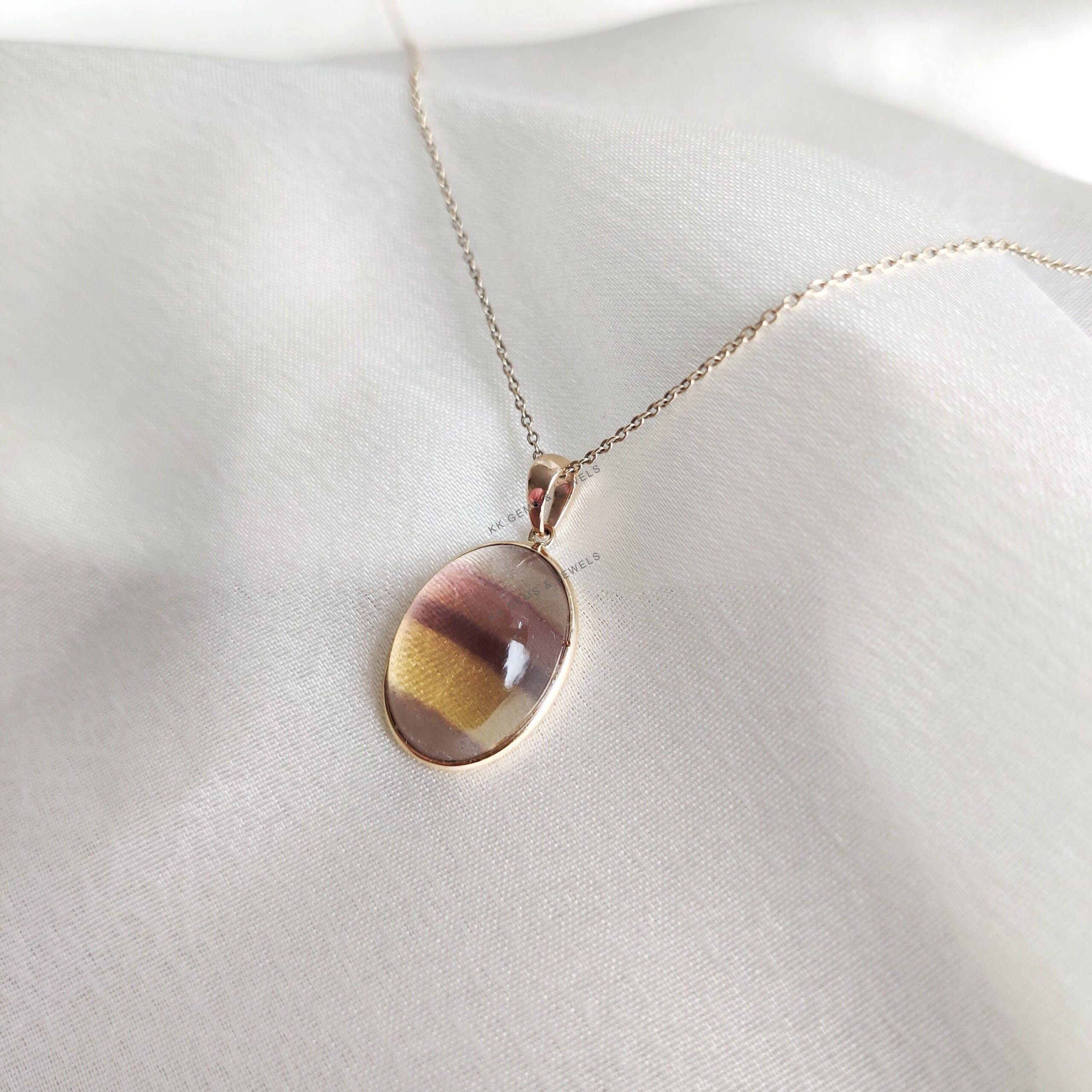 1 review for Oval Shape Natural Fluorite Pendant Set in 14K Solid Gold, March Birthstone Bezel