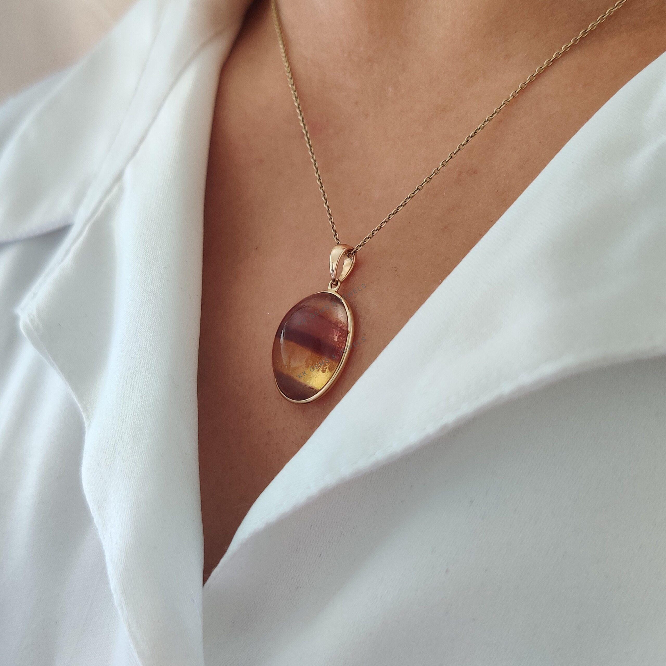 This stunning pendant is set in 14k Solid Yellow Gold with Natural Fluorite with utmost precision. It is an unique gemstone pendant for nearly every occasion and is completely hassle-free jewelry. ✓ ABOUT GEMSTONE: Fluorite is a stunning gemstone, renowned…