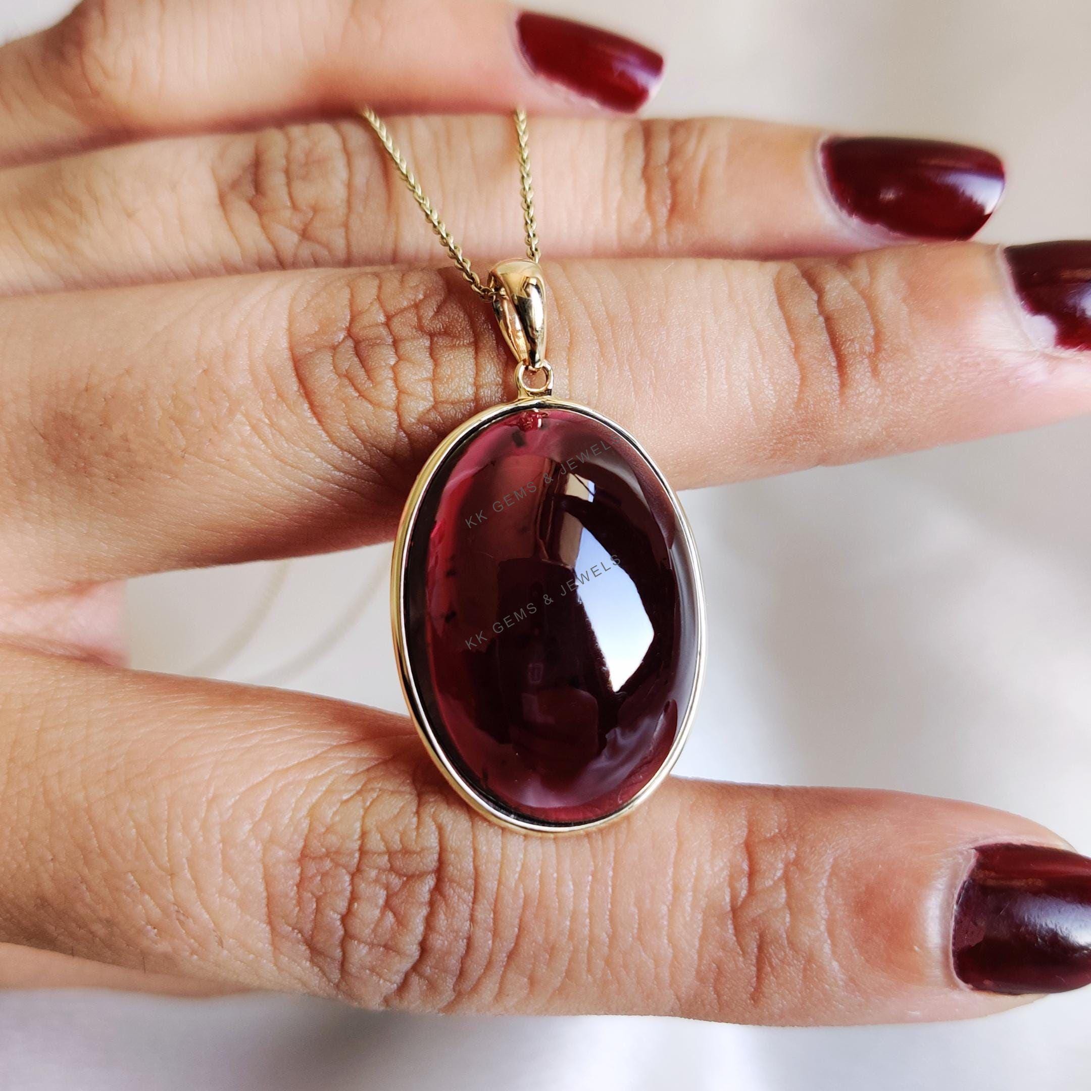 This stunning pendant is set in 14K Solid Yellow Gold with Natural Garnet with utmost precision. It is an unique gemstone pendant for nearly every occasion and is completely hassle-free jewelry.