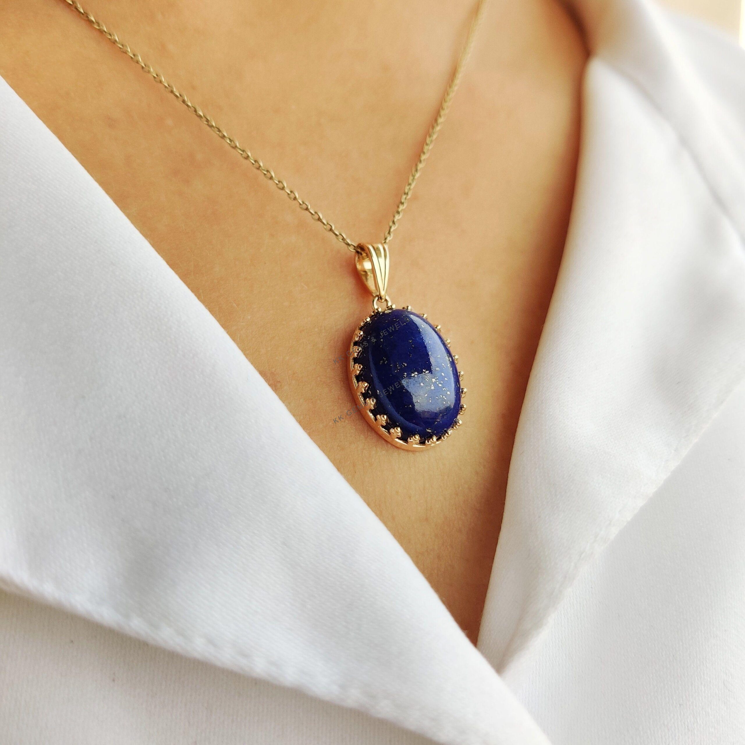 Be the first to review “Oval Shape Natural Lapis Lazuli Birthstone Pendant Set in 14K Solid Gold”