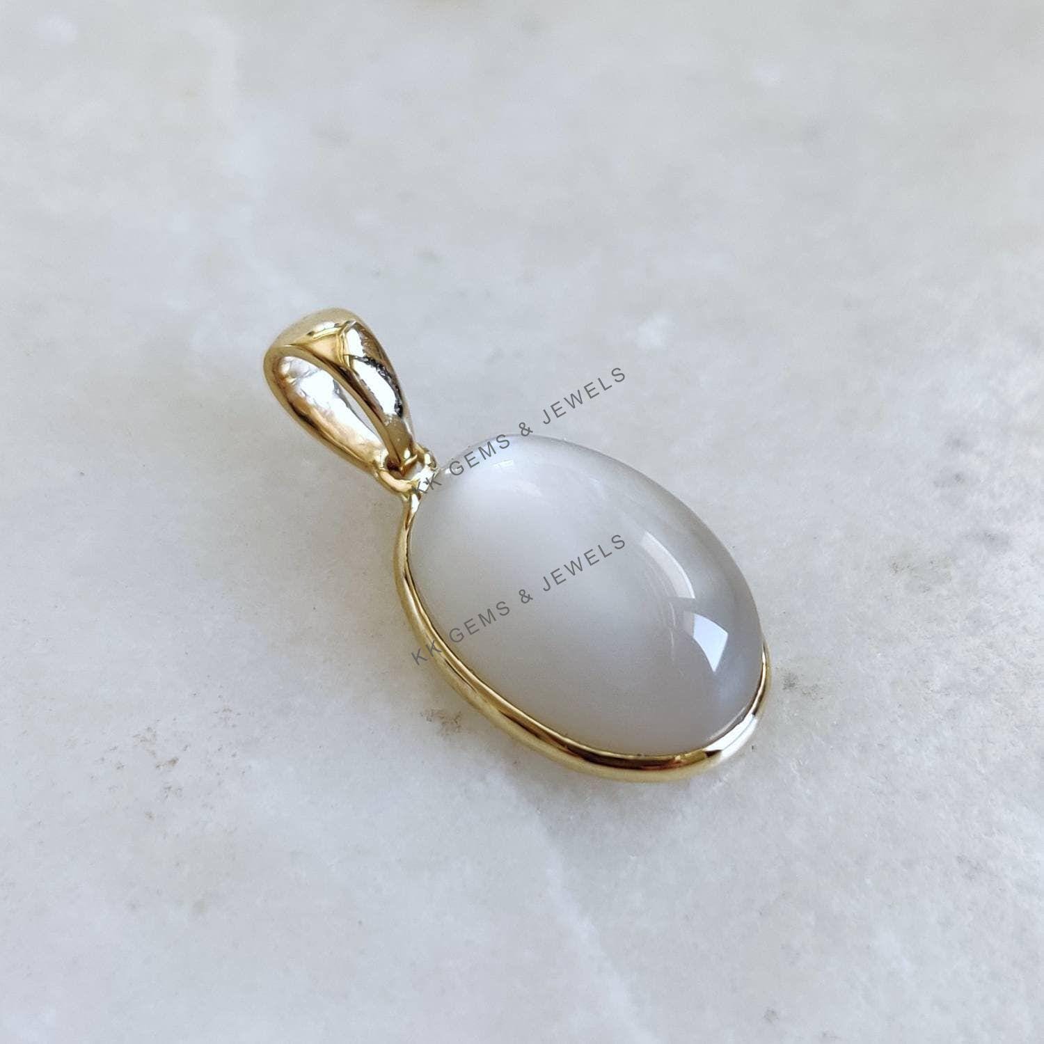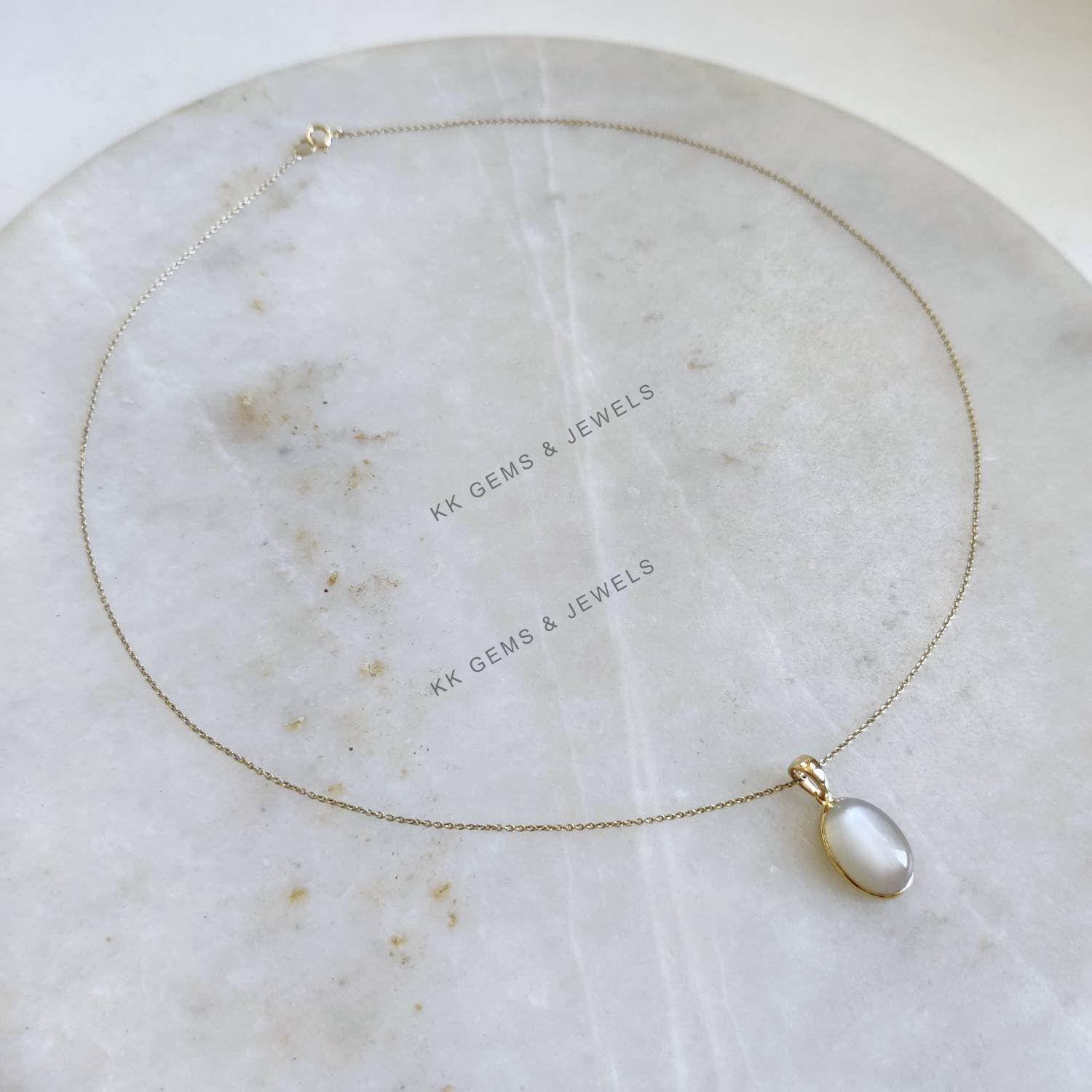 2 reviews for Natural White Moonstone Bezel Pendant Set in 14K Solid Gold, June Birthstone Accessory