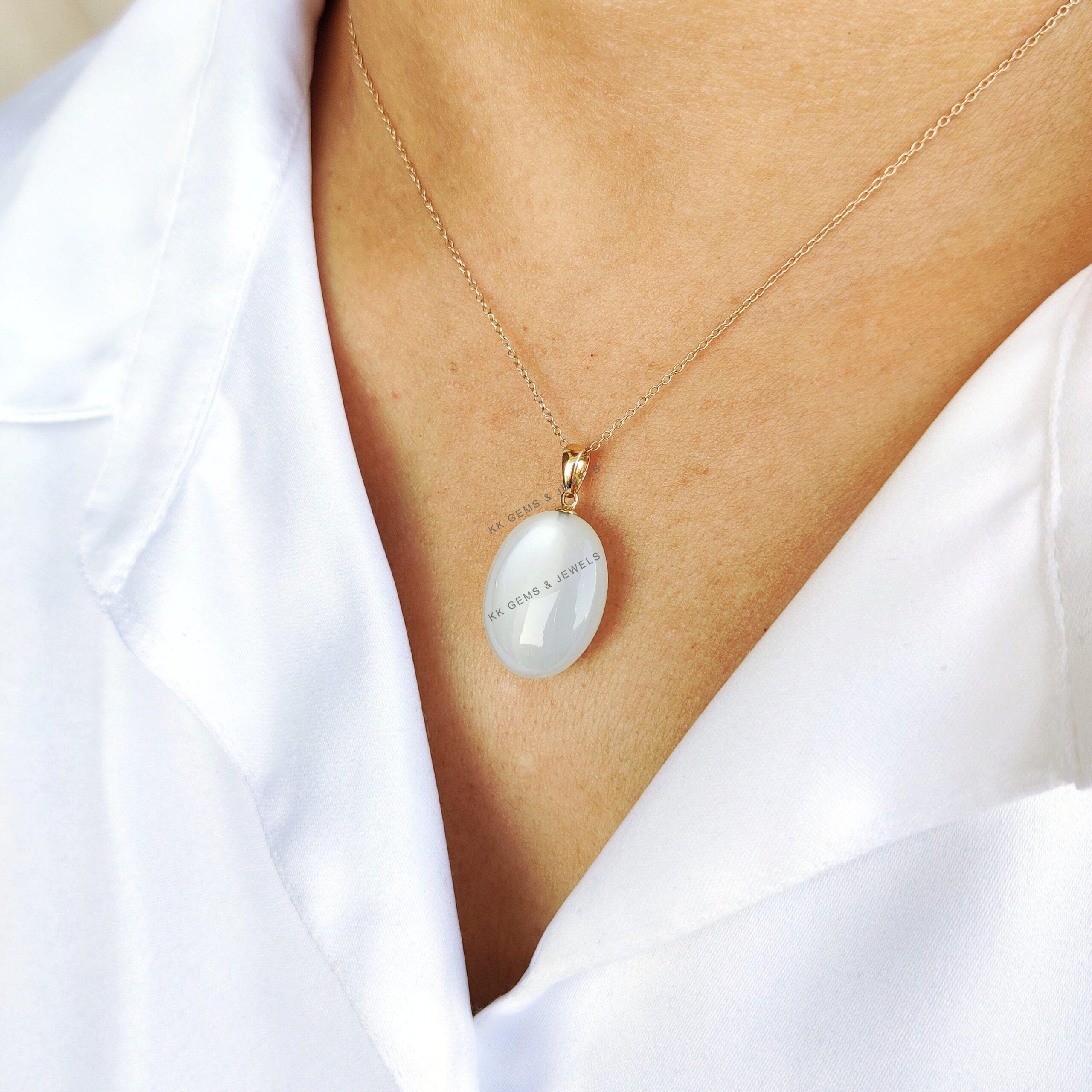 This stunning pendant is set in 14K Solid Yellow Gold with Natural White Moonstone with utmost precision. It is an unique gemstone pendant for nearly every occasion and is completely hassle-free jewelry. ✓ ABOUT GEMSTONE: White moonstone, with its milky…