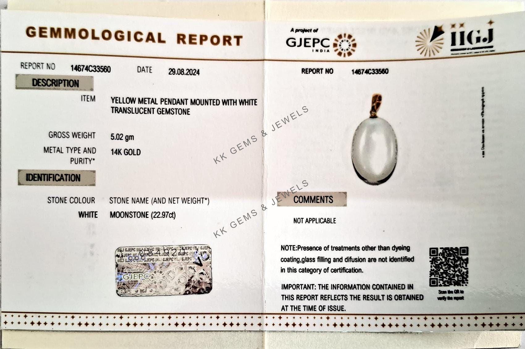 This stunning pendant is set in 14K Solid Yellow Gold with Natural White Moonstone with utmost precision. It is an unique gemstone pendant for nearly every occasion and is completely hassle-free jewelry.