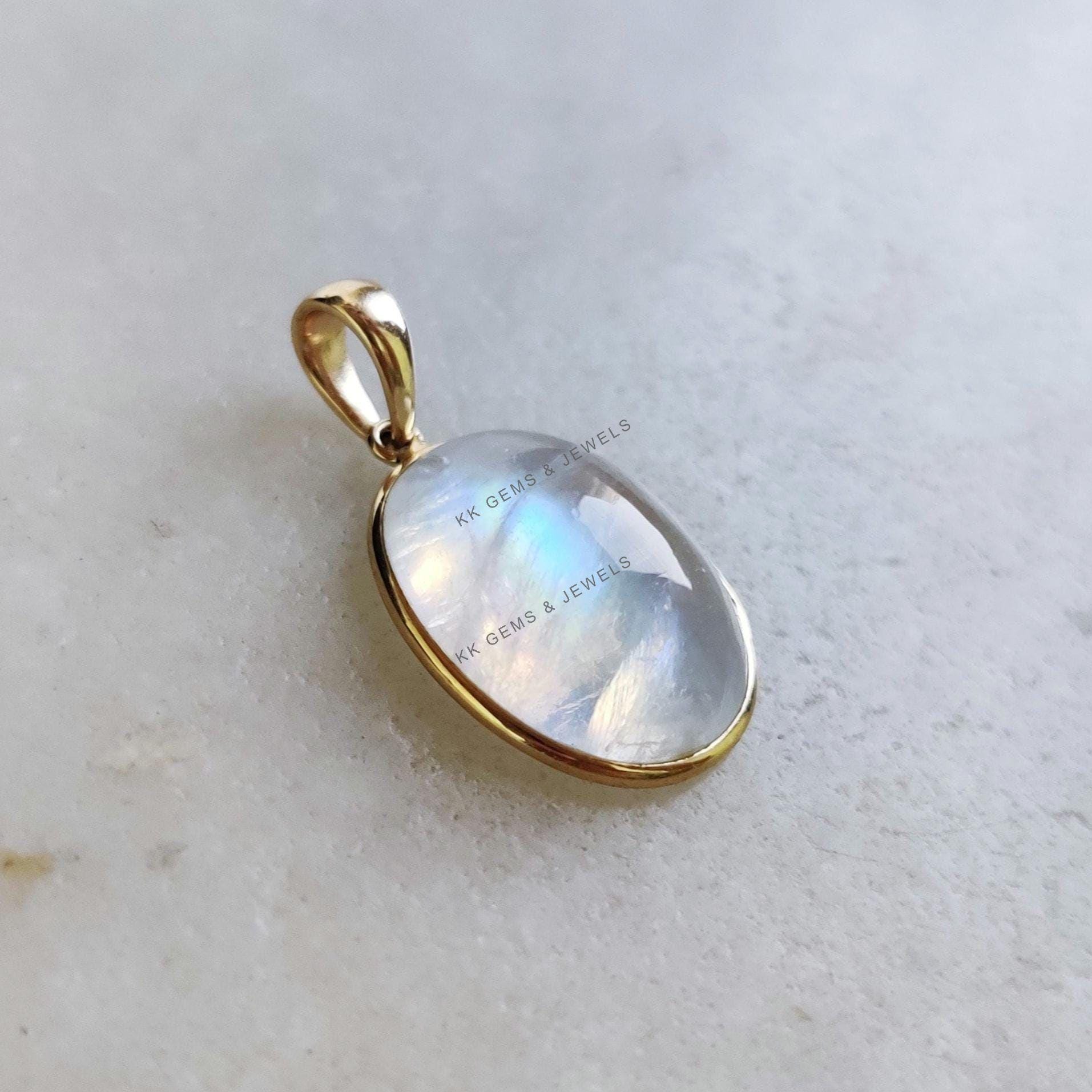 This stunning pendant is set in 14k Solid Yellow Gold with Natural Rainbow Moonstone with utmost precision. It is an unique gemstone pendant for nearly every occasion and is completely hassle-free jewelry.