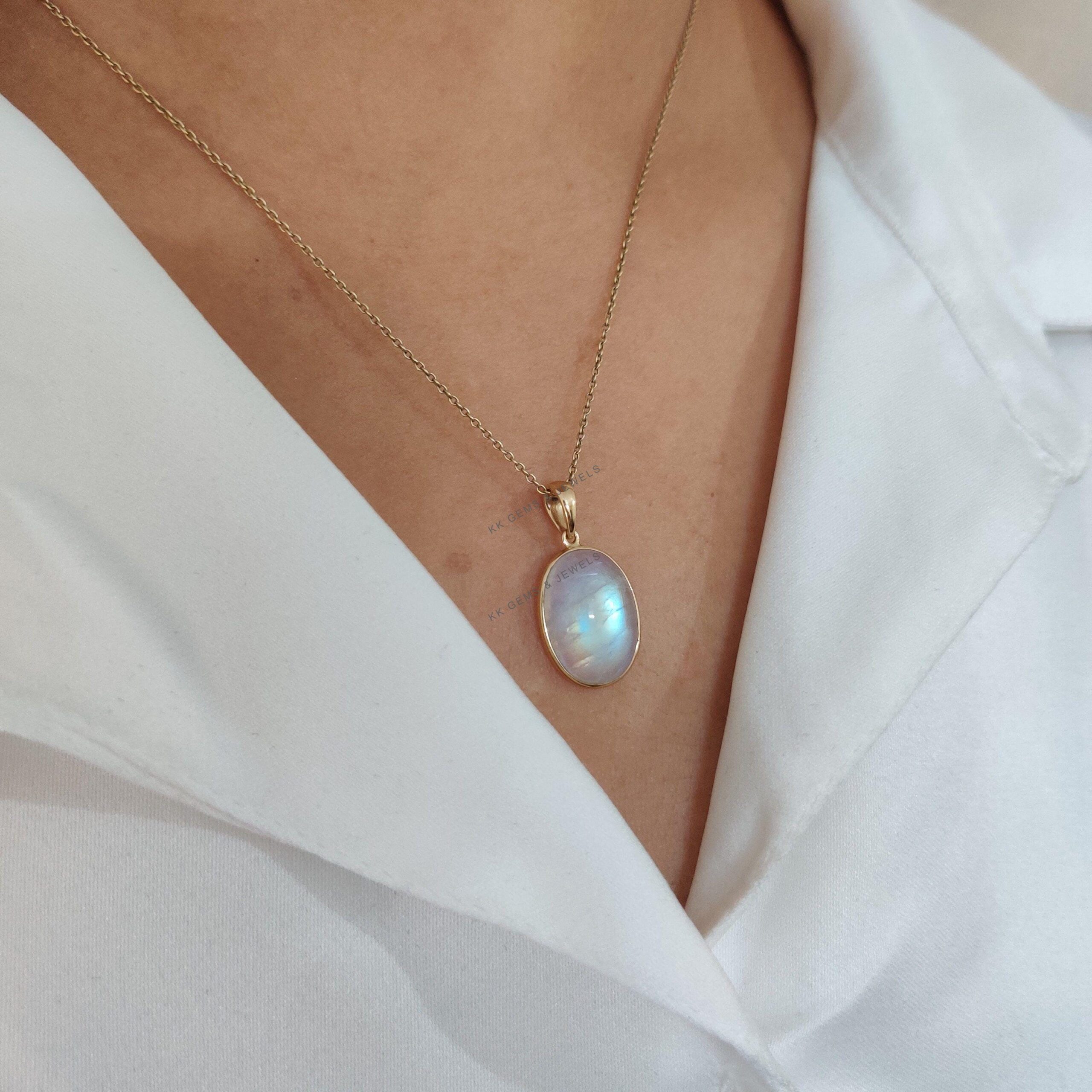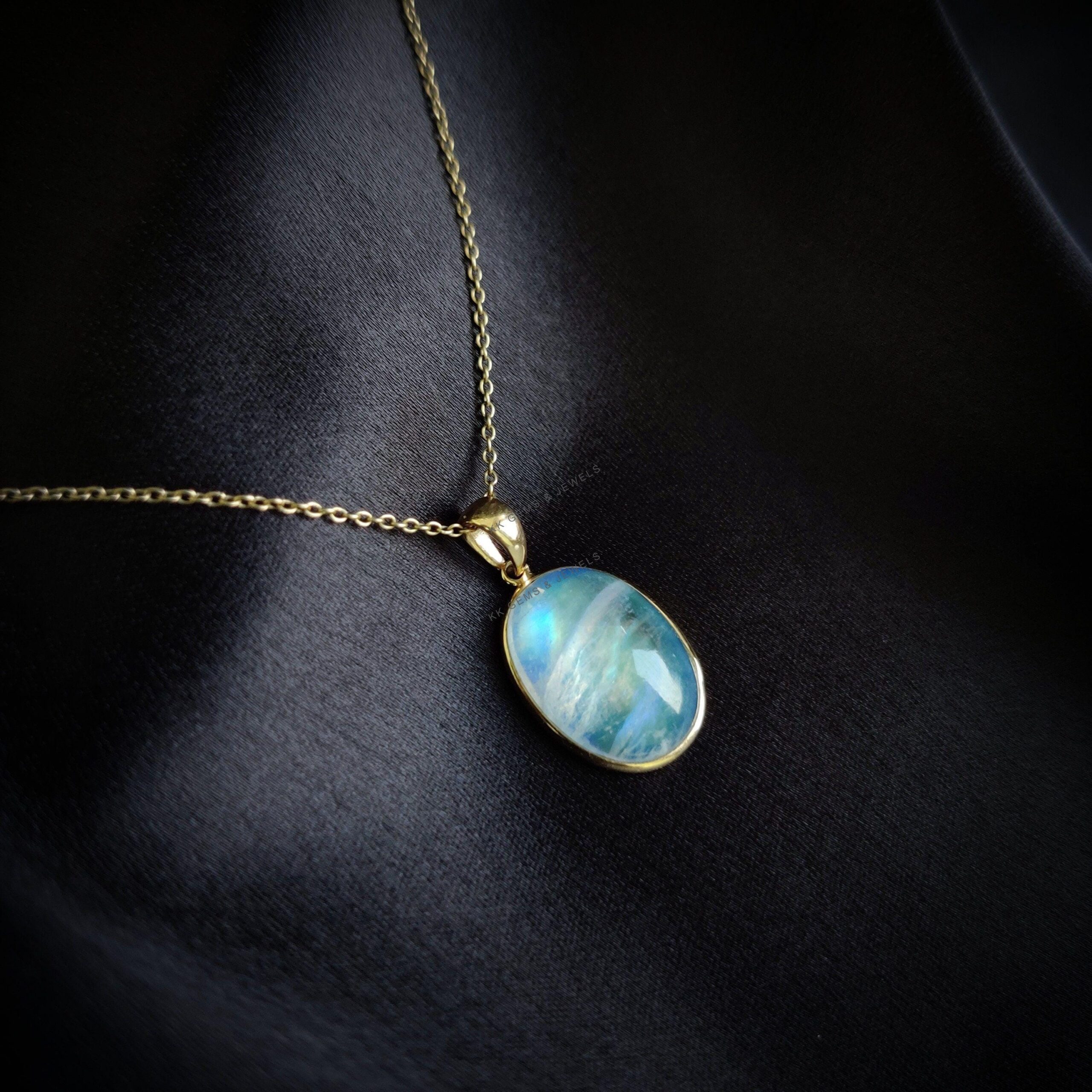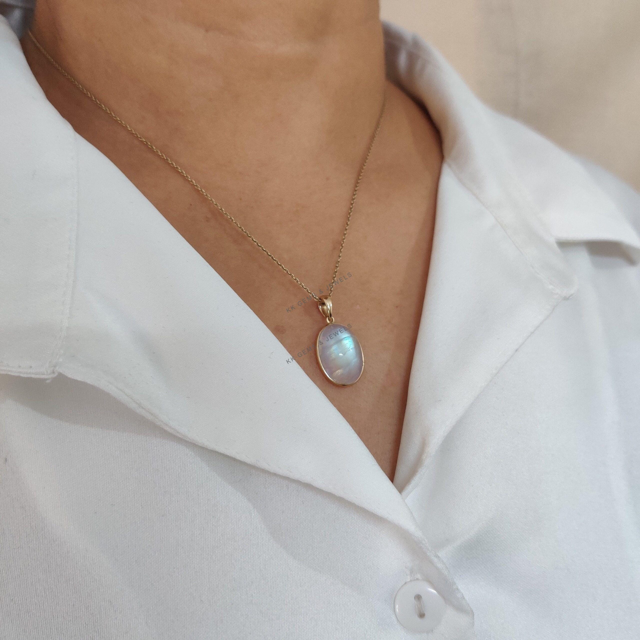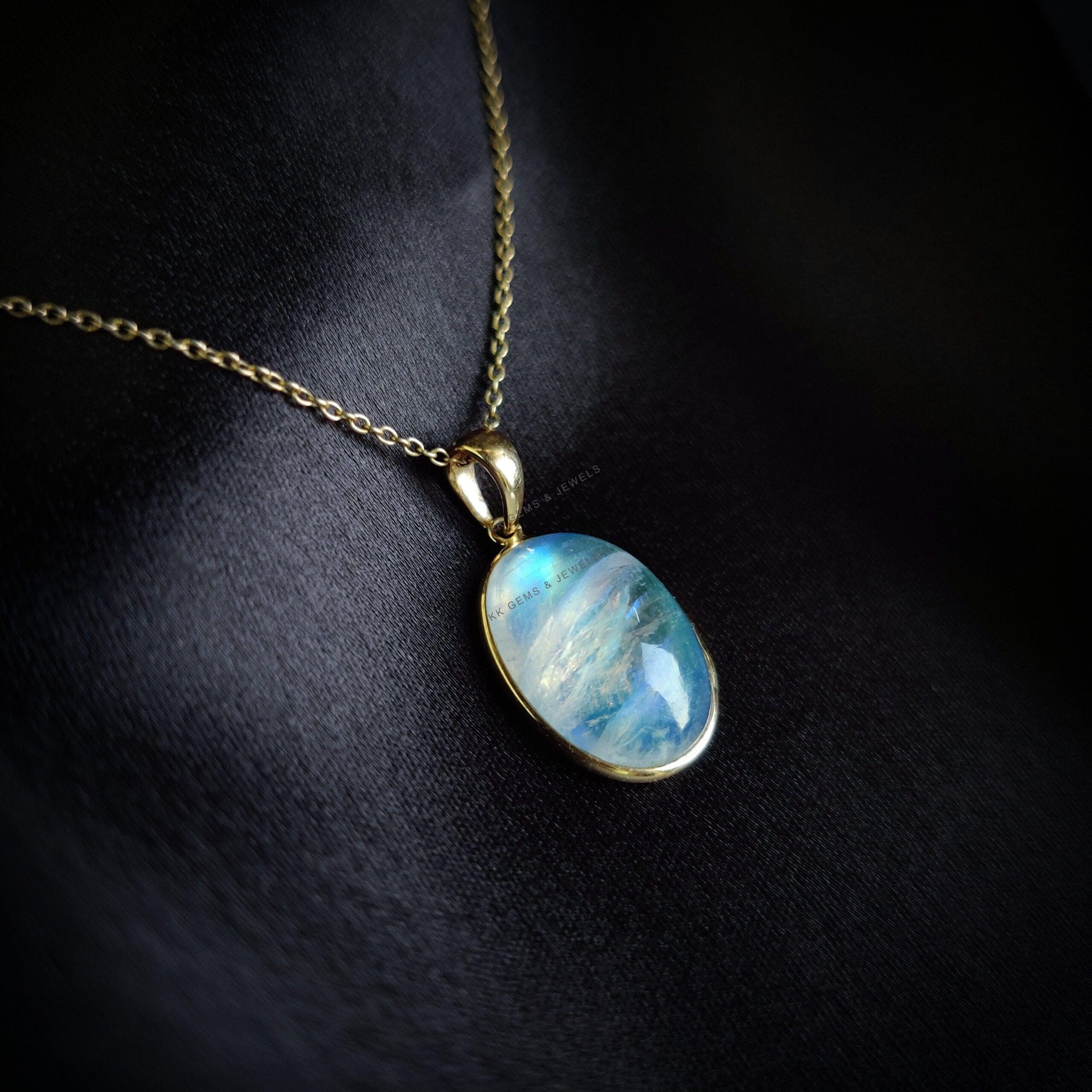 This stunning pendant is set in 14k Solid Yellow Gold with Natural Rainbow Moonstone with utmost precision. It is an unique gemstone pendant for nearly every occasion and is completely hassle-free jewelry. ✓ ABOUT GEMSTONE: Rainbow Moonstone is believed to…