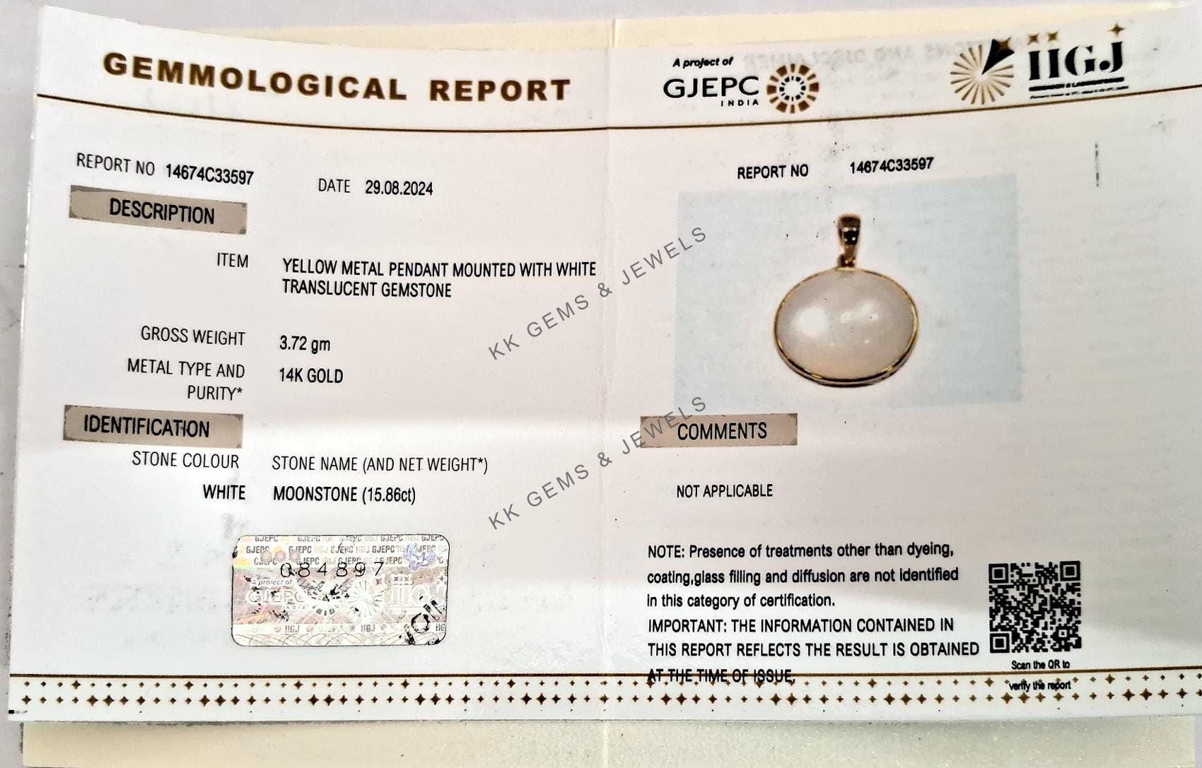 This stunning pendant is set in 14k Solid Yellow Gold with Natural White Moonstone with utmost precision. It is an unique gemstone pendant for nearly every occasion and is completely hassle-free jewelry.
