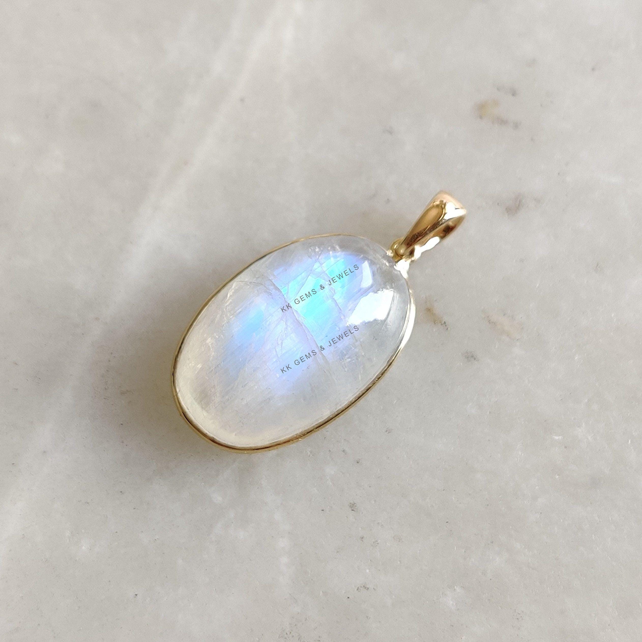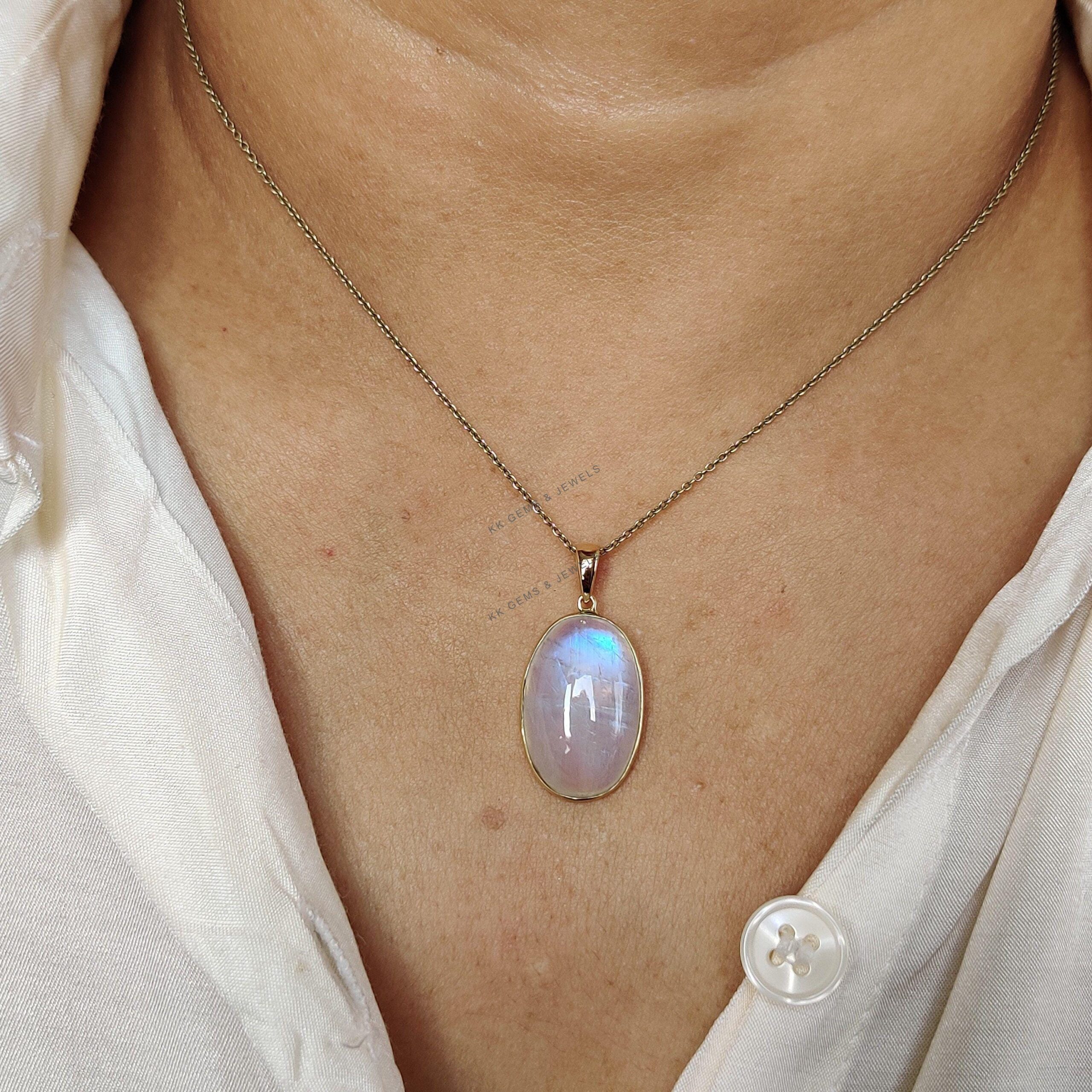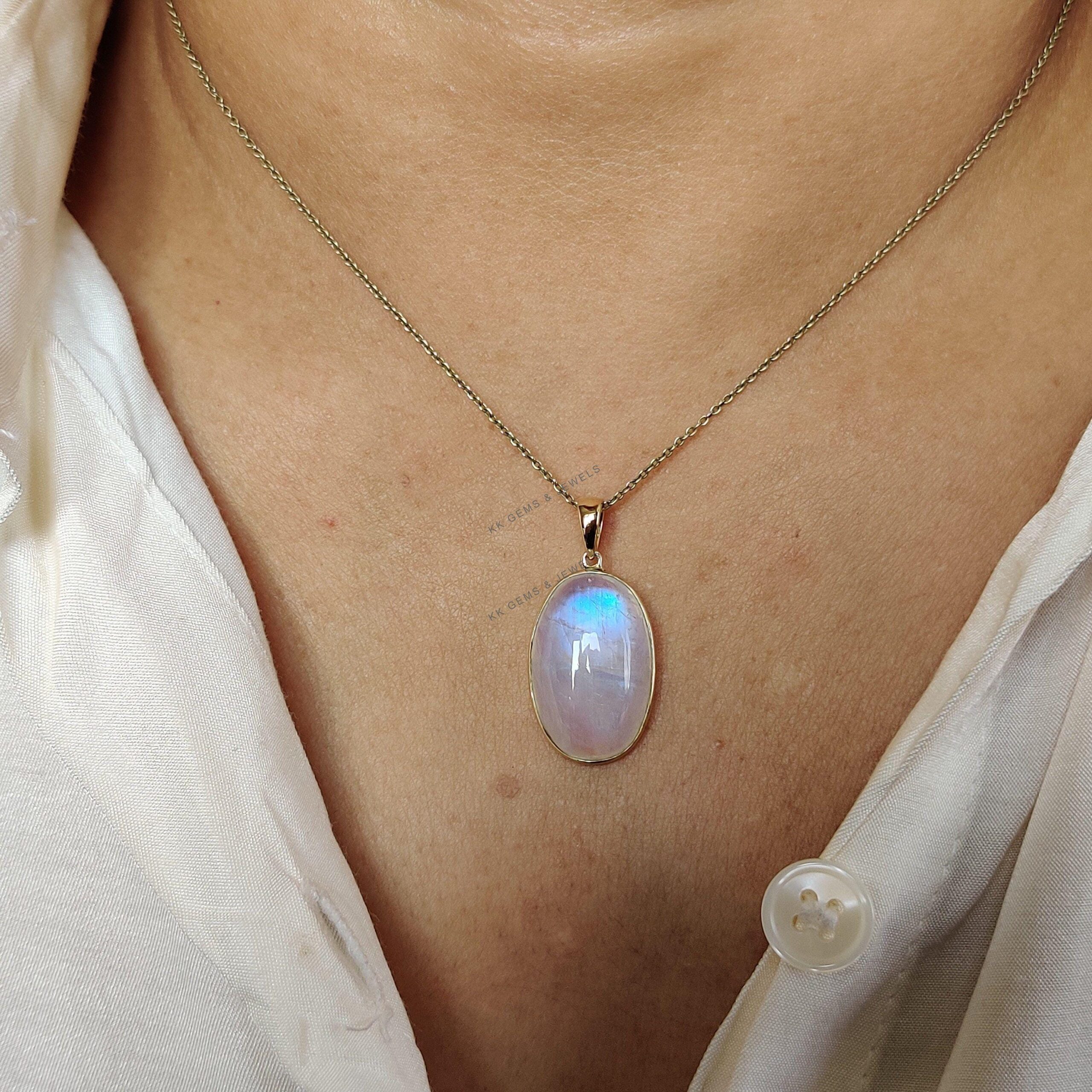 This stunning pendant is set in 14k Solid Yellow Gold with Natural Rainbow Moonstone with utmost precision. It is an unique gemstone pendant for nearly every occasion and is completely hassle-free jewelry. ✓ ABOUT GEMSTONE: Rainbow Moonstone is believed to…