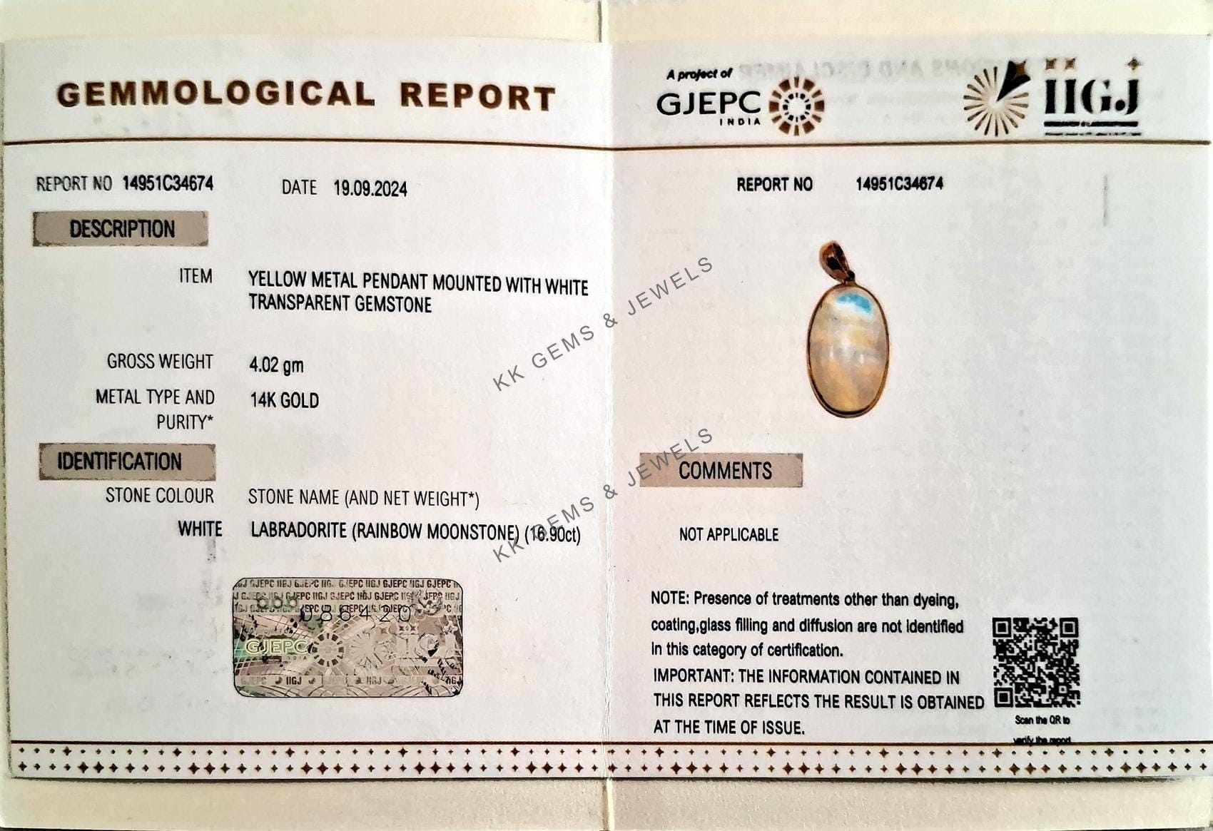 This stunning pendant is set in 14k Solid Yellow Gold with Natural Rainbow Moonstone with utmost precision. It is an unique gemstone pendant for nearly every occasion and is completely hassle-free jewelry.