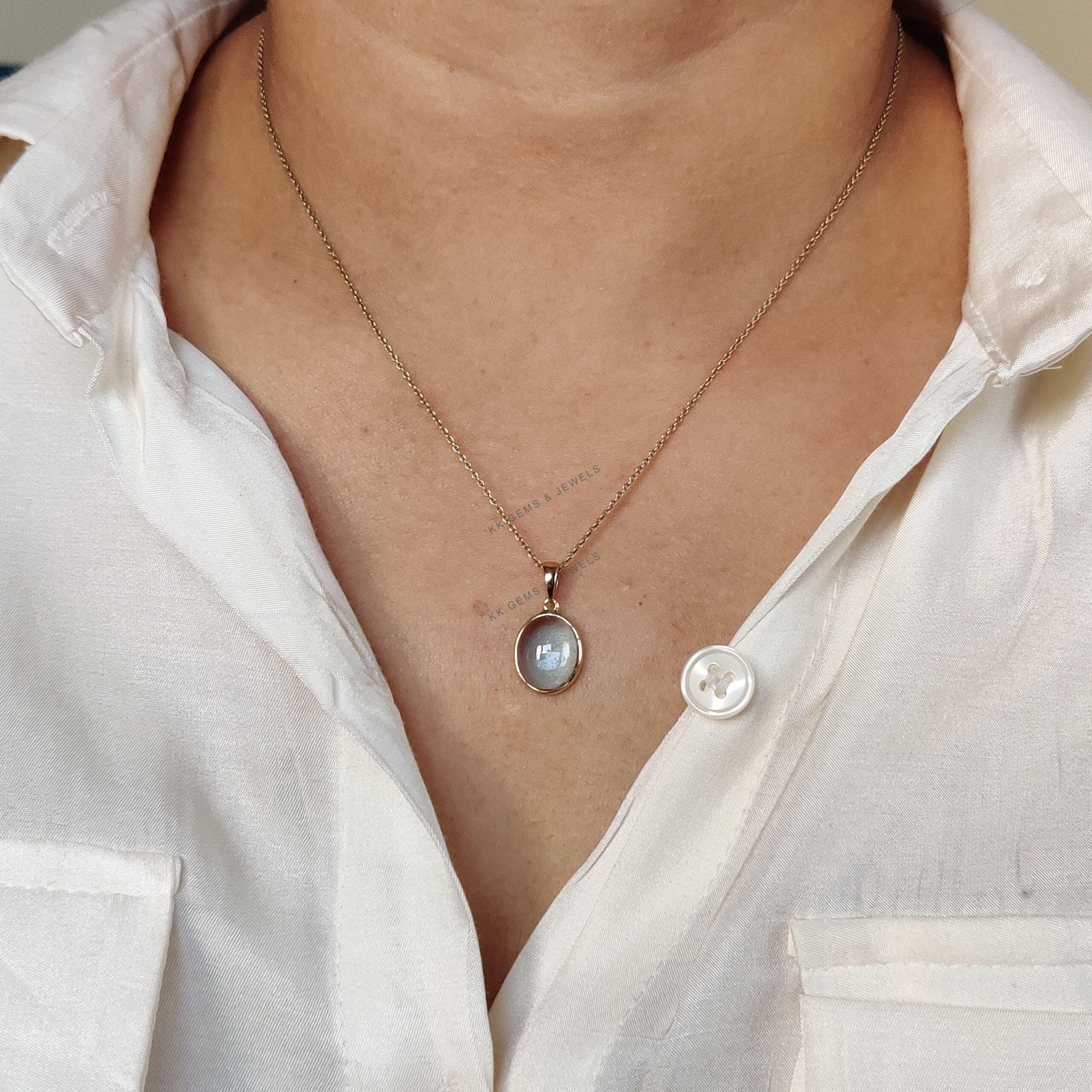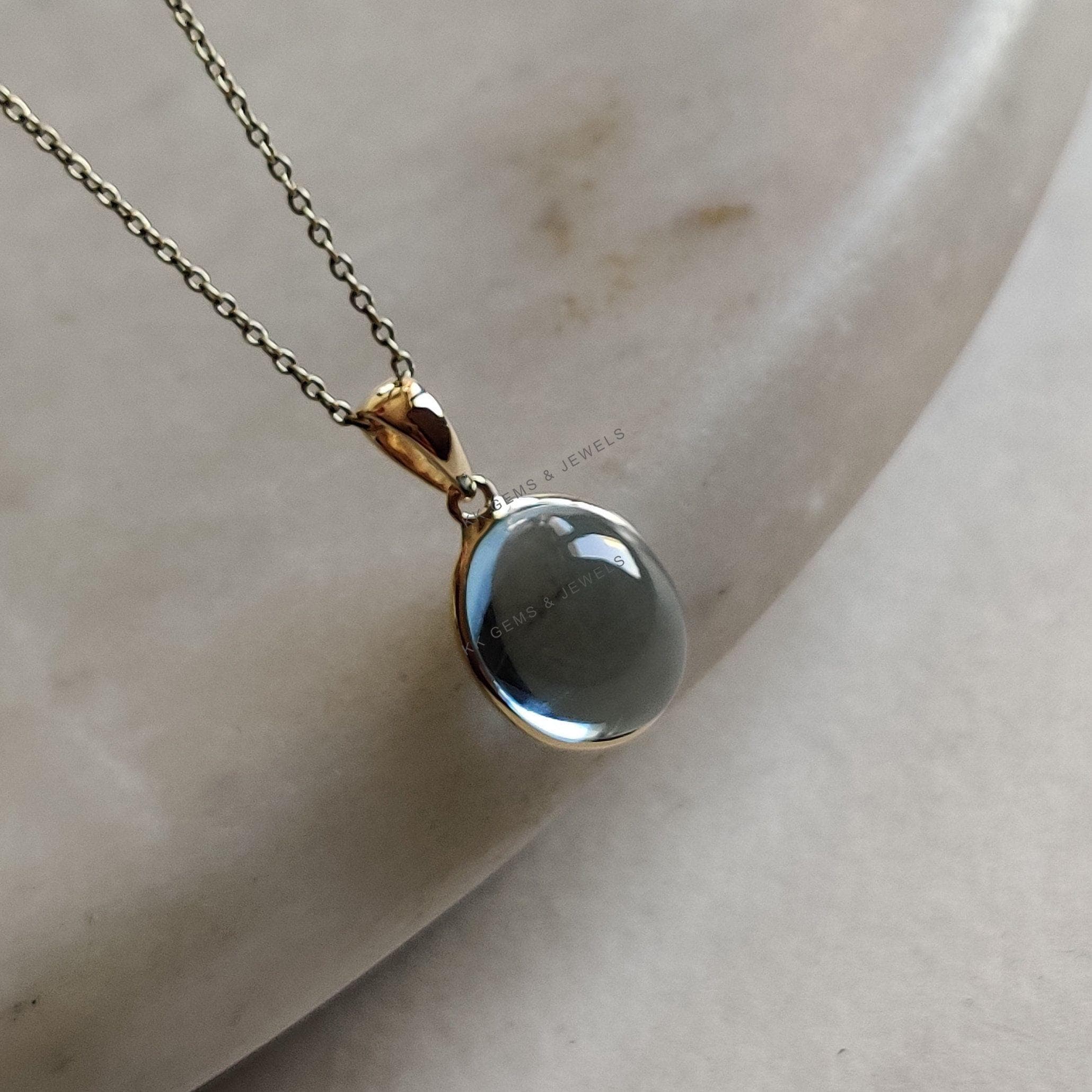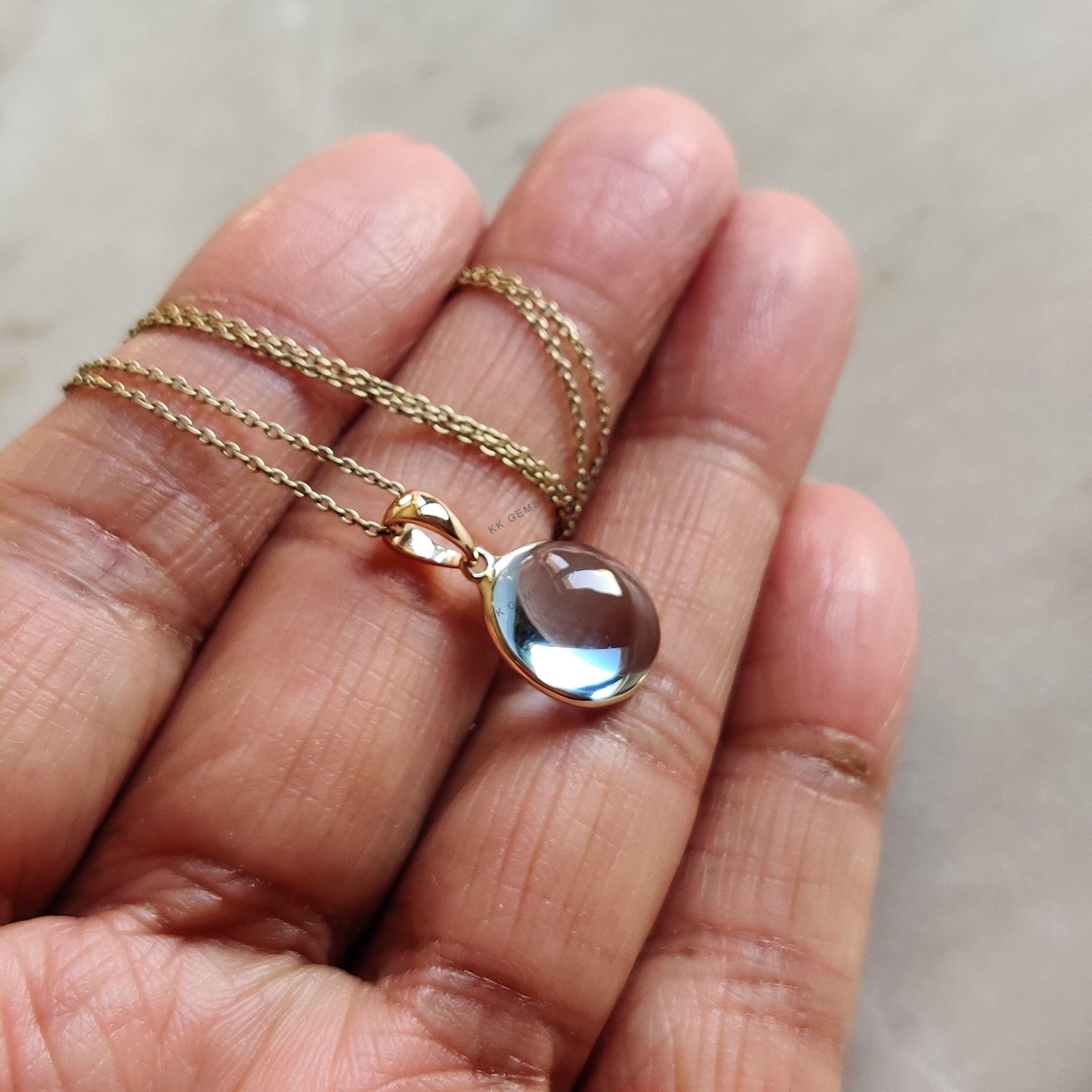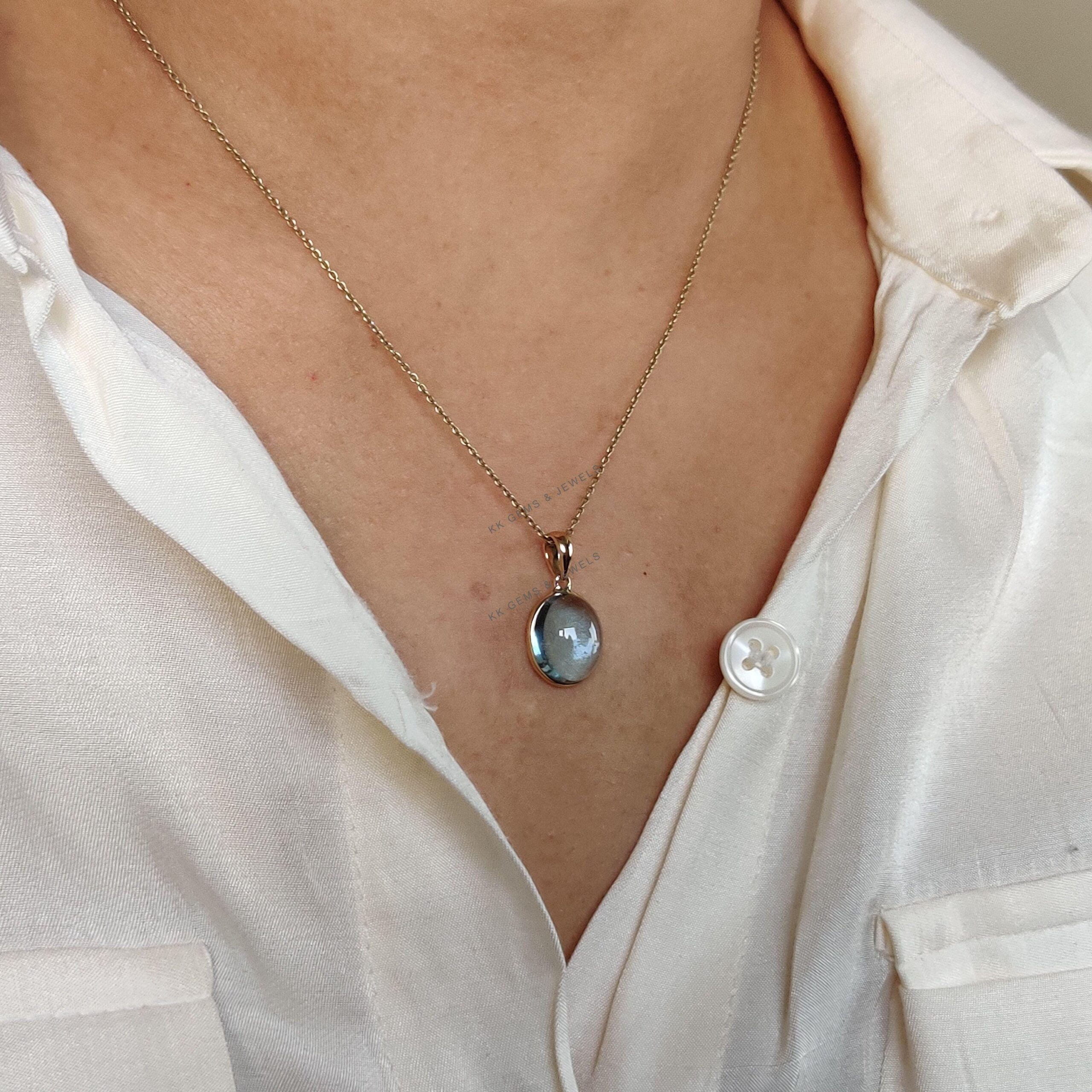 2 reviews for Oval Shape Natural Sky Blue Topaz Pendant, Bezel Set in 14K Solid Gold