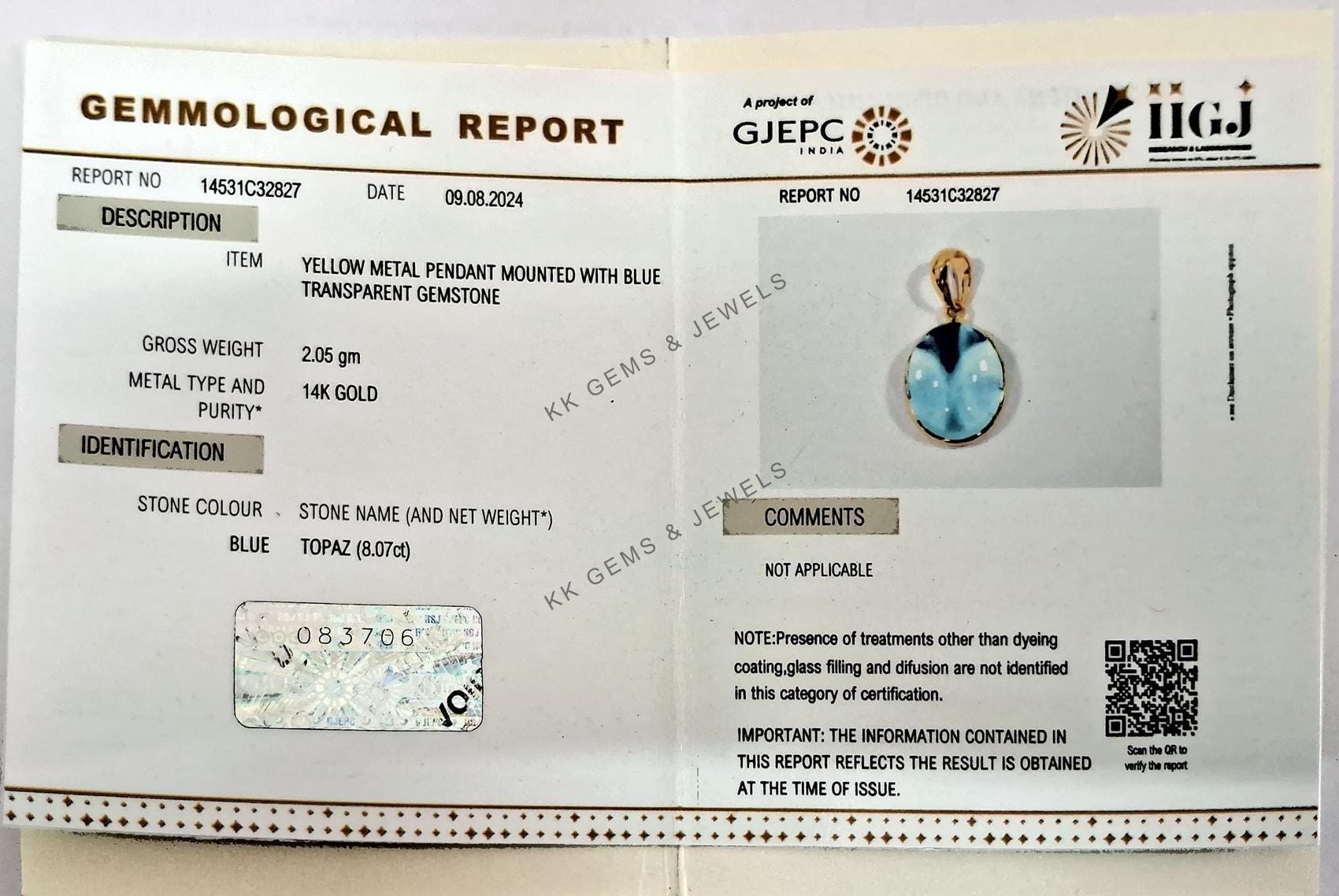 This stunning pendant is set in 14k Solid Yellow Gold with Natural Sky Blue Topaz with utmost precision. It is an unique gemstone pendant for nearly every occasion and is completely hassle-free jewelry.